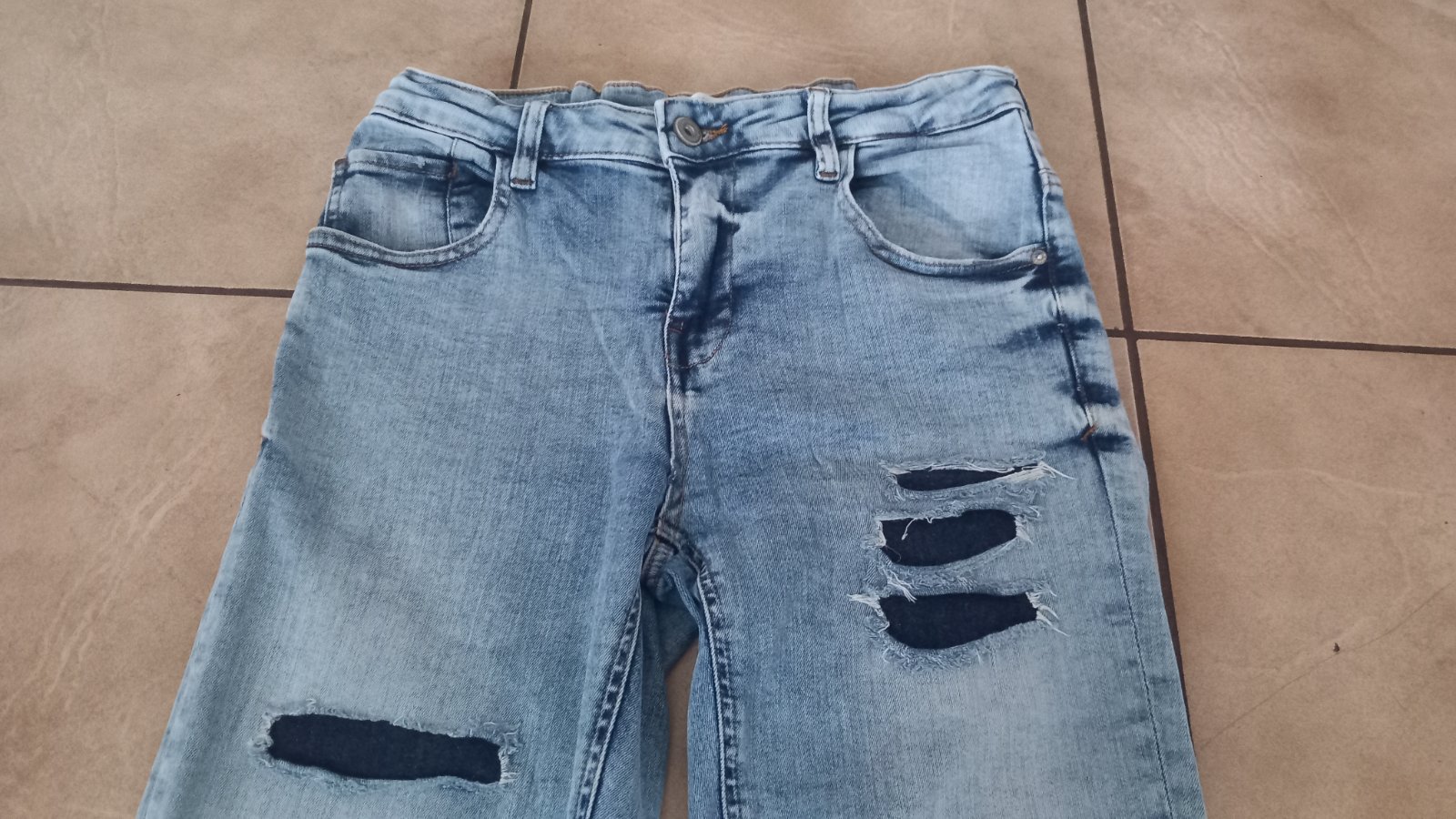Predám parkrát oblečené rifle. Príjemná riflovina, v páse nastaviteľná guma, funkčné vrecká.