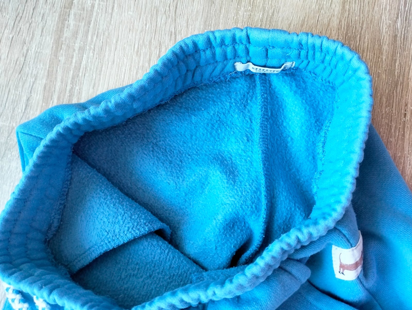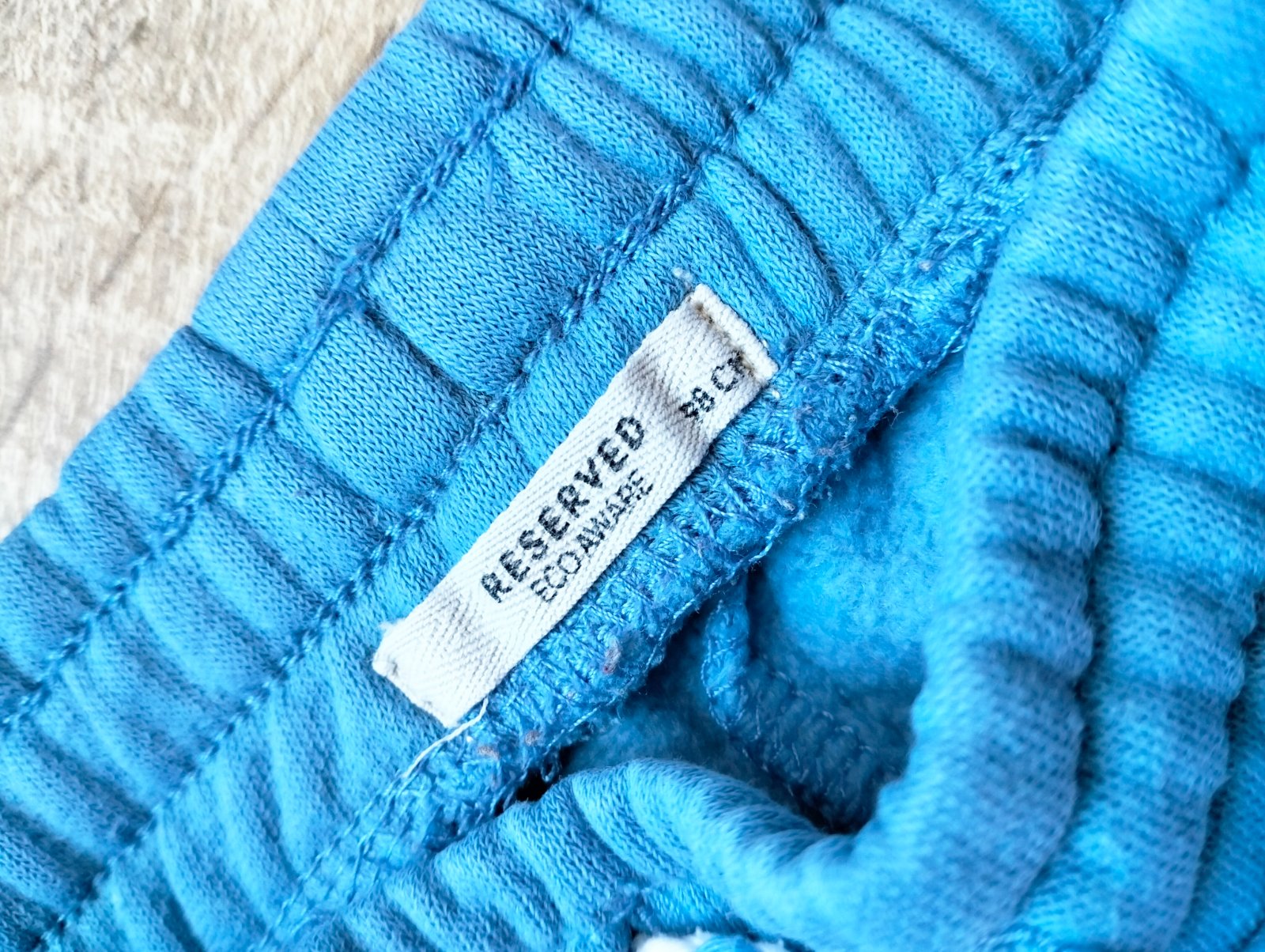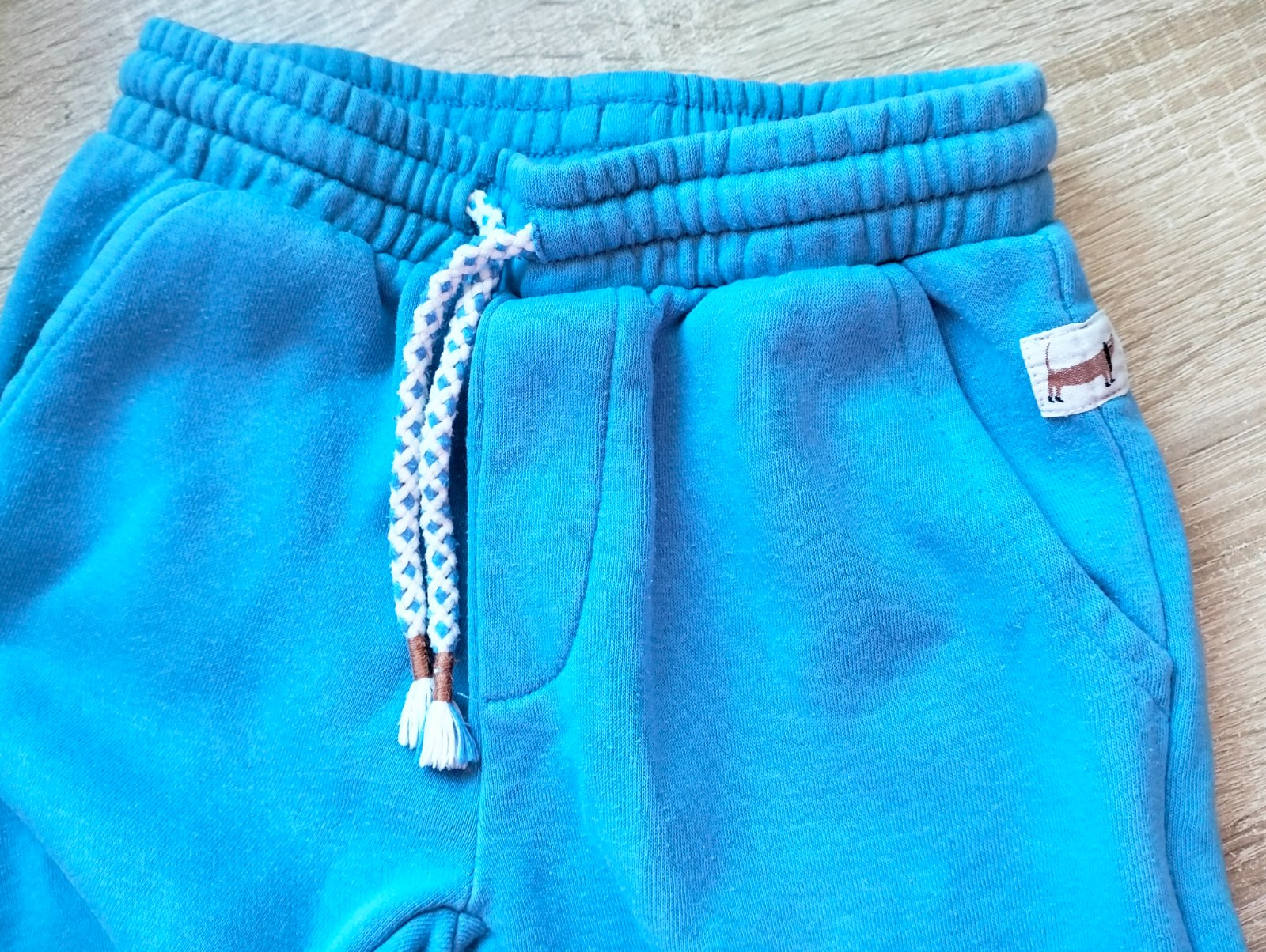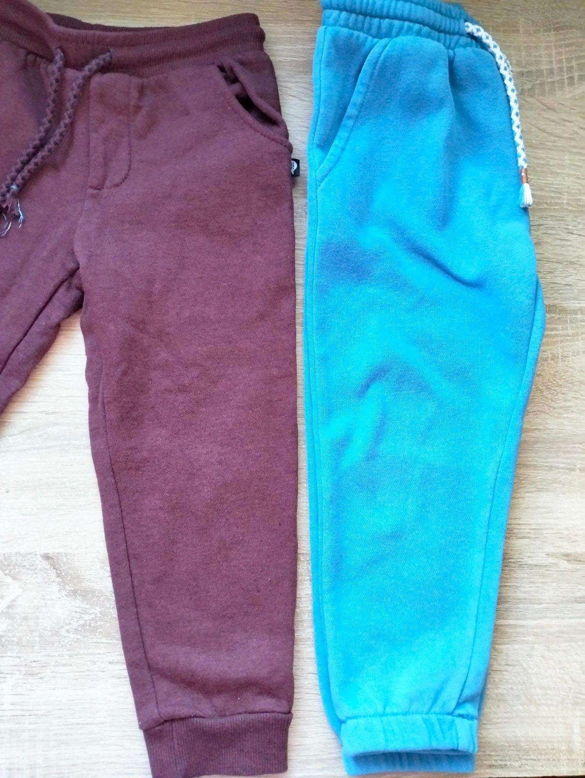 2 x tepláky. Tmavobordové majú pisanú veľkosť110,ale sú rovnaké ako svetlomodré, čiže veľkosť 98. Spolu za 2,€..