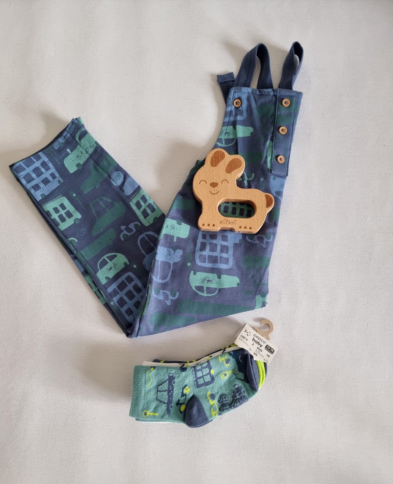 Nove nohavice s visackou,vhodne aj ako darcek. Ponozky ku nim gratis.