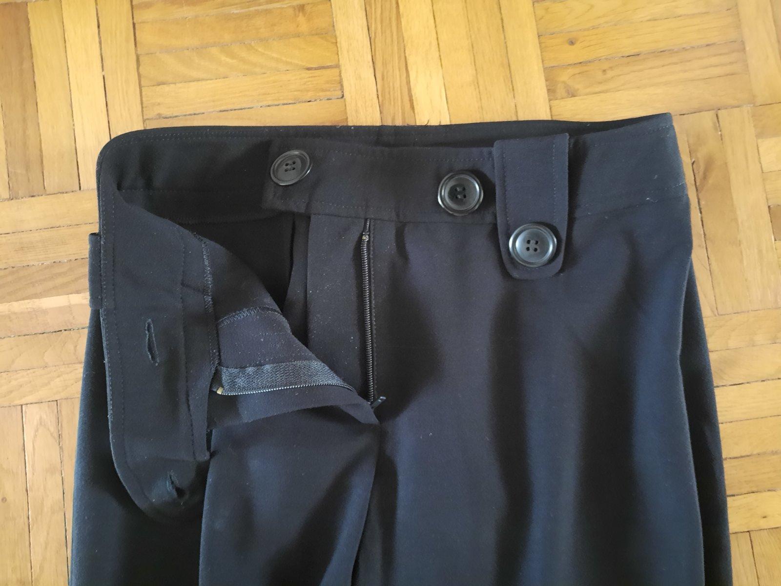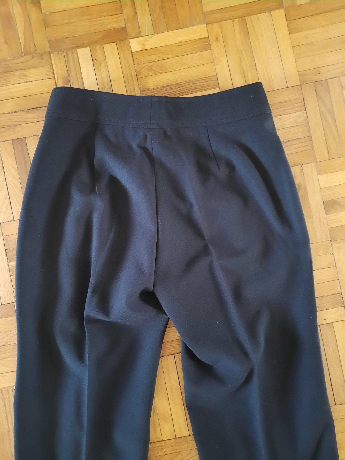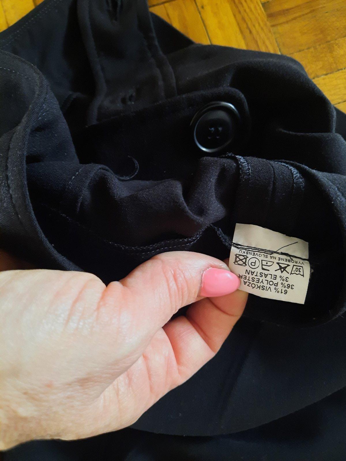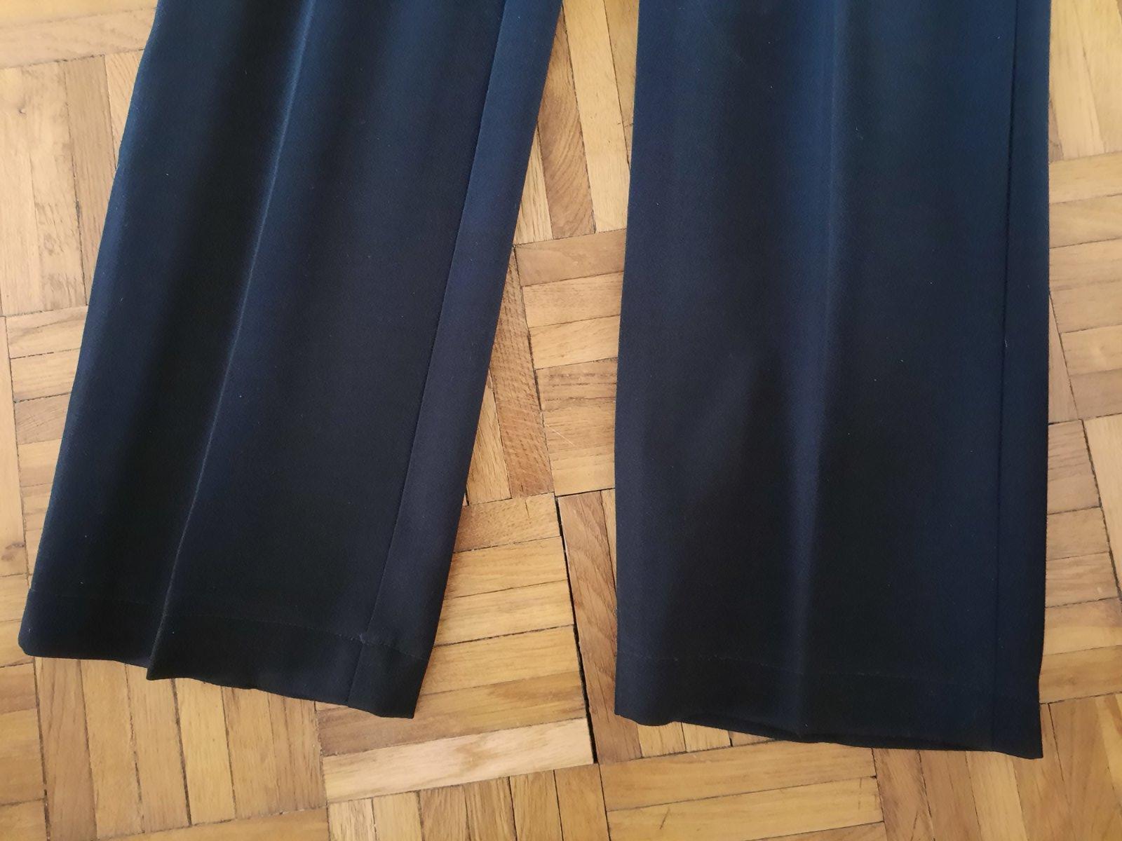 Krásne elegantné čierne nohavice s nažehlenými pukmi. Výborný stav. Zaujímavo riešené pri zapínaní.