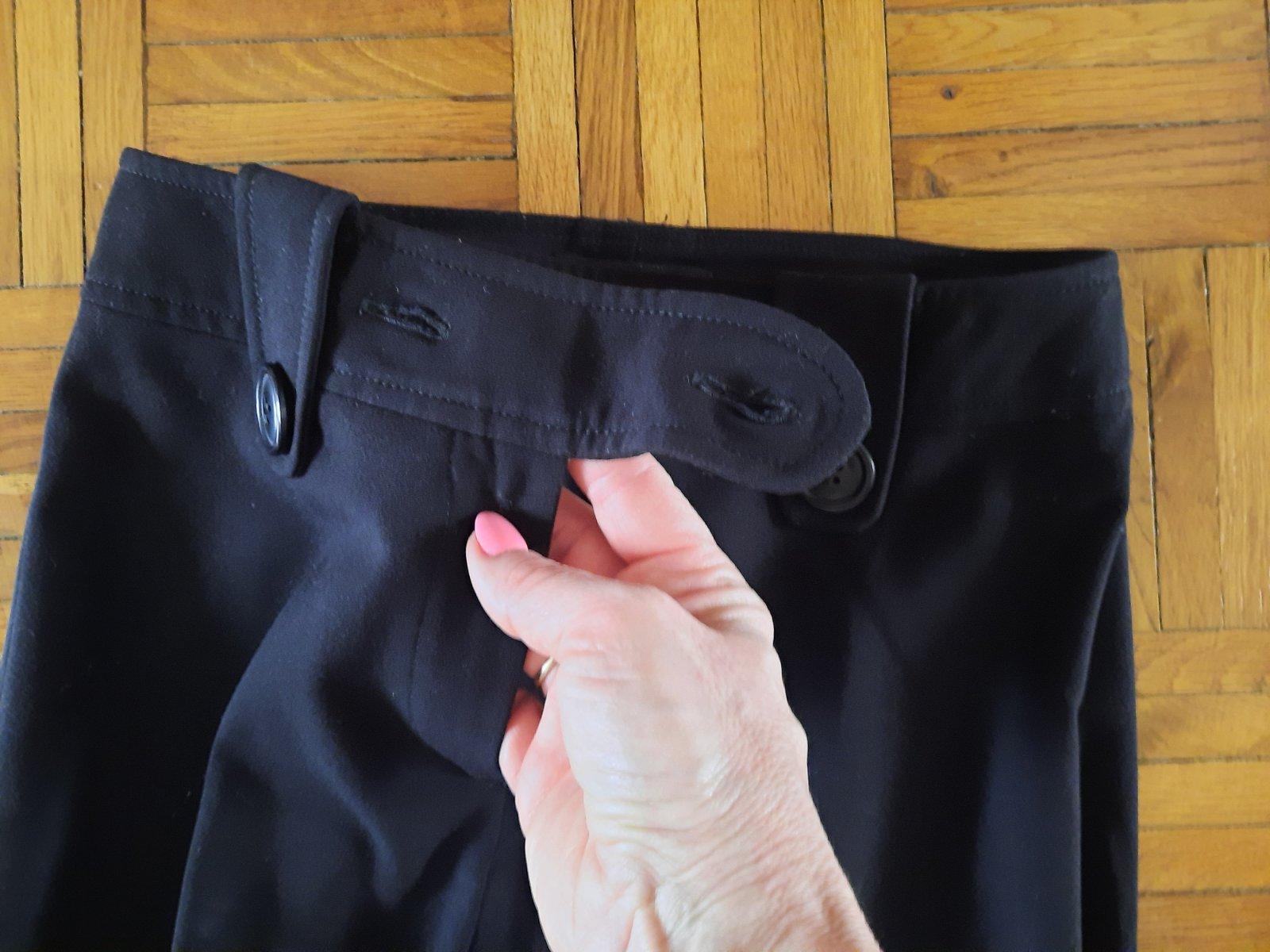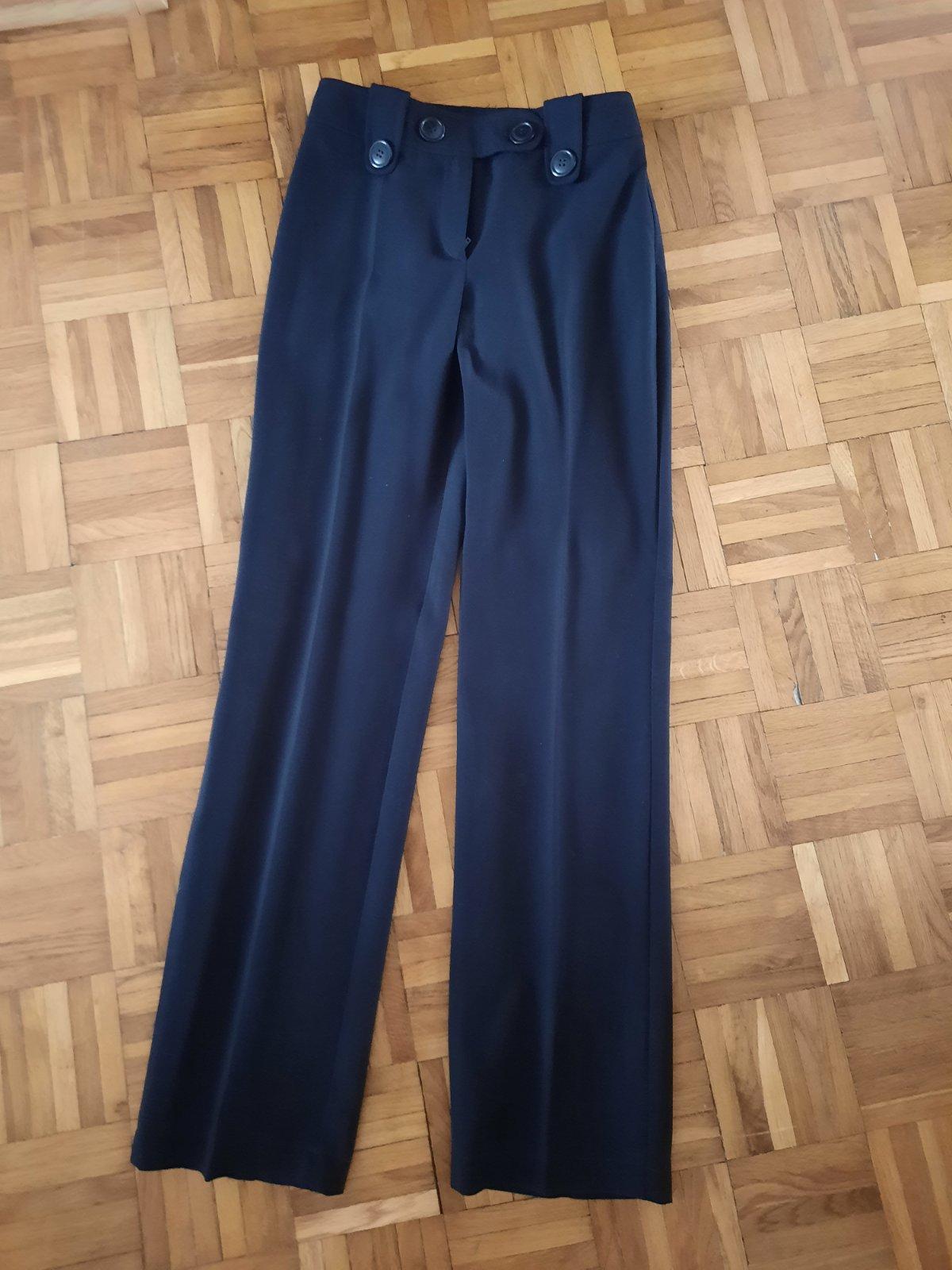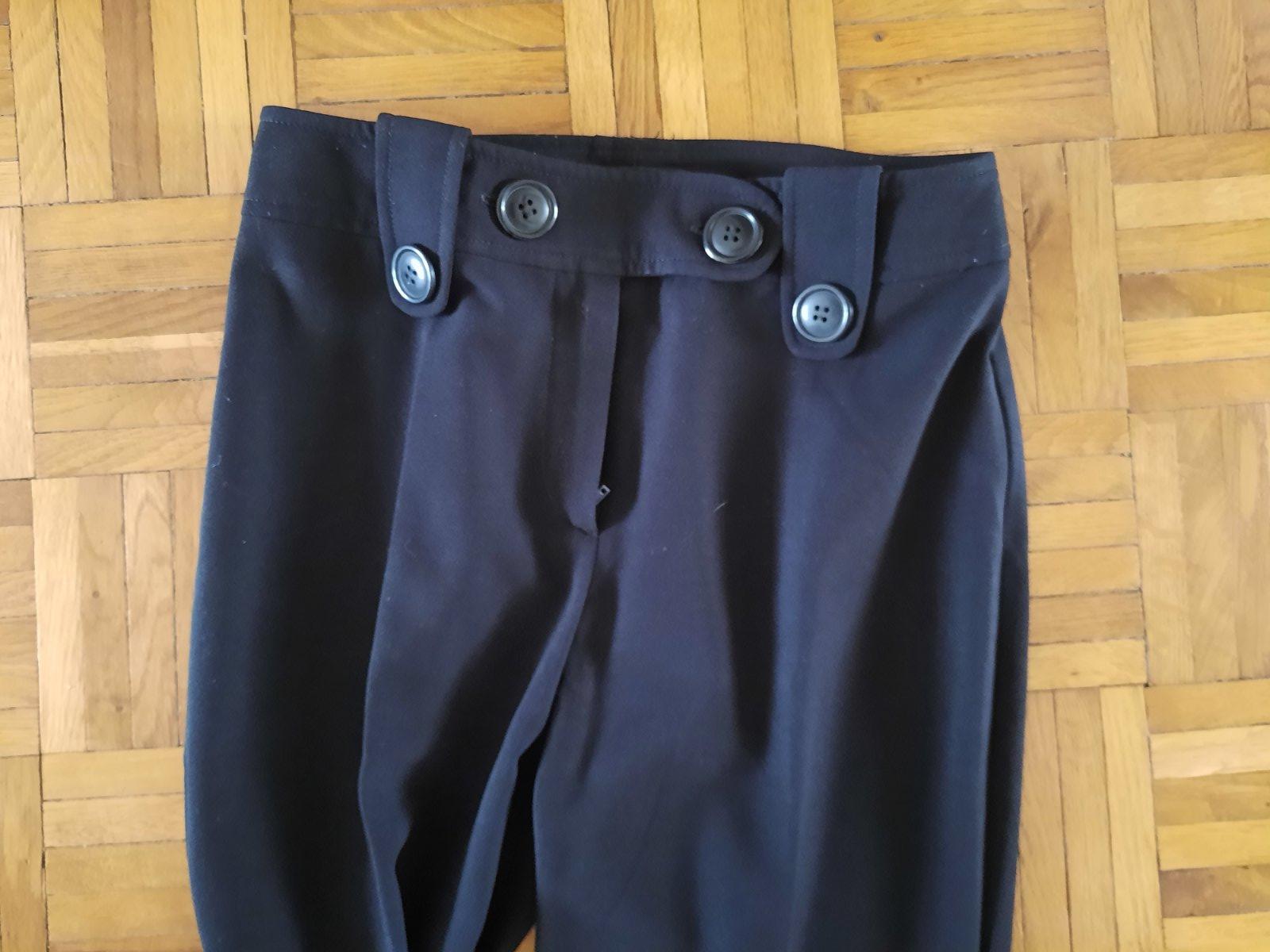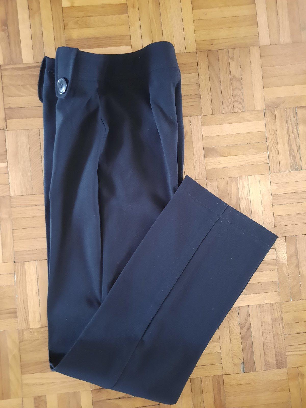 Krásne elegantné čierne nohavice s nažehlenými pukmi. Výborný stav. Zaujímavo riešené pri zapínaní.