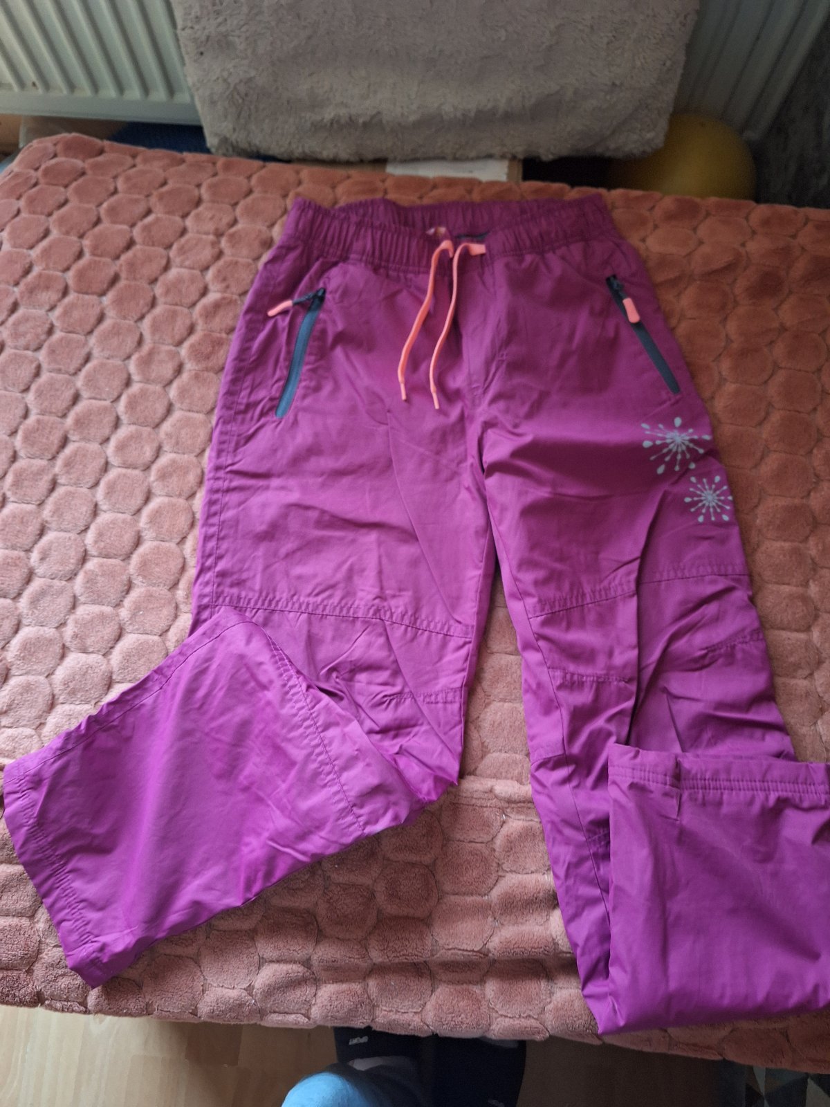 Predám dievčenské športové nohavice, sú podšité mäkkou flísovou podšívkou, pás je do gumy, plus šnúrka. zachovalé bez poškodenia, vrchný materiál je mäkký šuštiakový , sú pohodlné a príjemné na nosenie. veľ. 140/146, dĺžka od rozkroku 61cm, dĺžka od pása dole 88cm., cena 10,-€ s poštovným