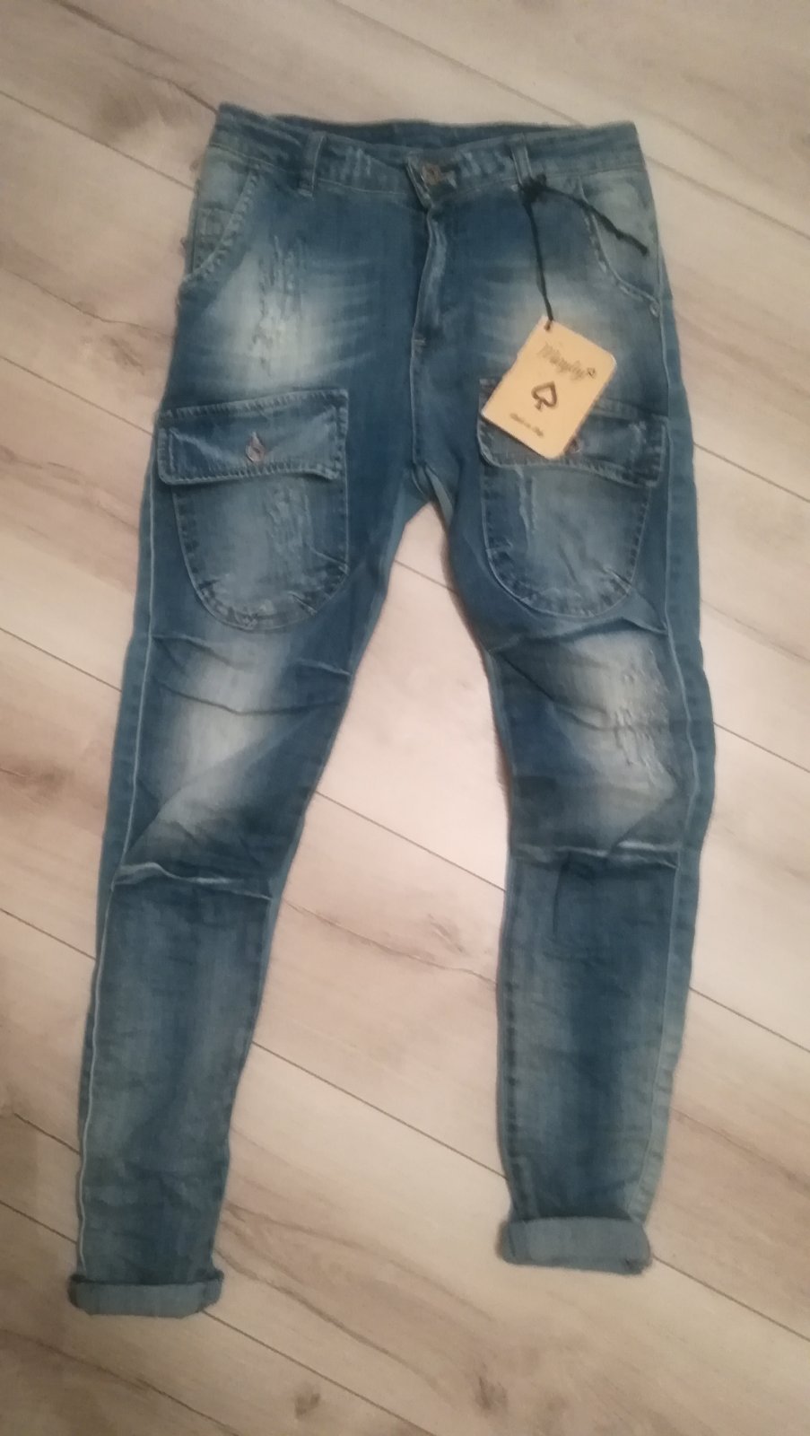 Kvalitné rifle talianskej značky. Sú super štýlové, príjemná kvalitná riflovina... Krásne sedia. Mne žiaľ malé. Posúvam pre vás :)