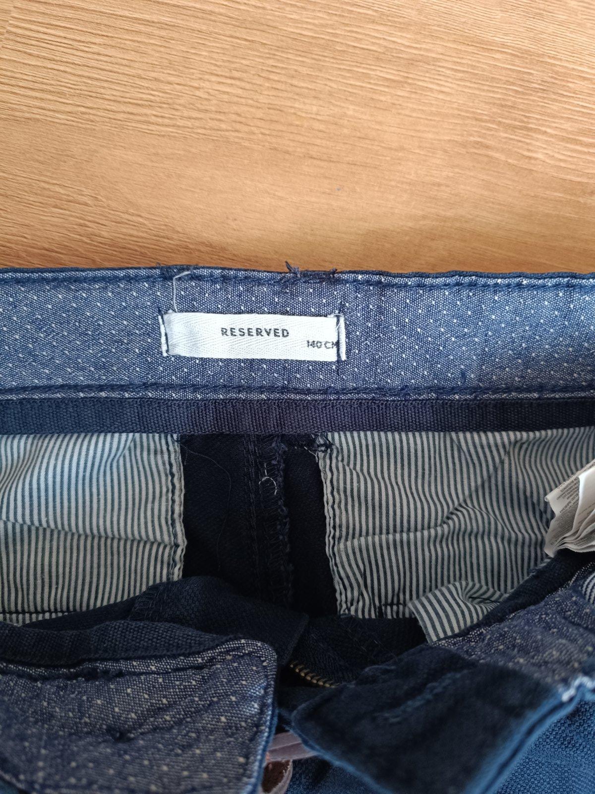 Ponukam raz oblecene neposkodene chlapcenske nohavice s opaskom, znacka Reserved, velkost 140.