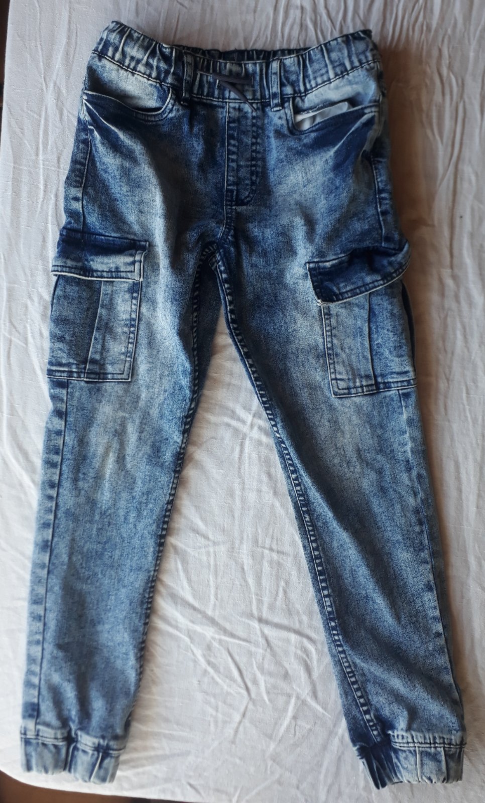nosené, super stav, moderné nakoľko diery boli veľmi veľké, sú podlepené nažehlovačkou