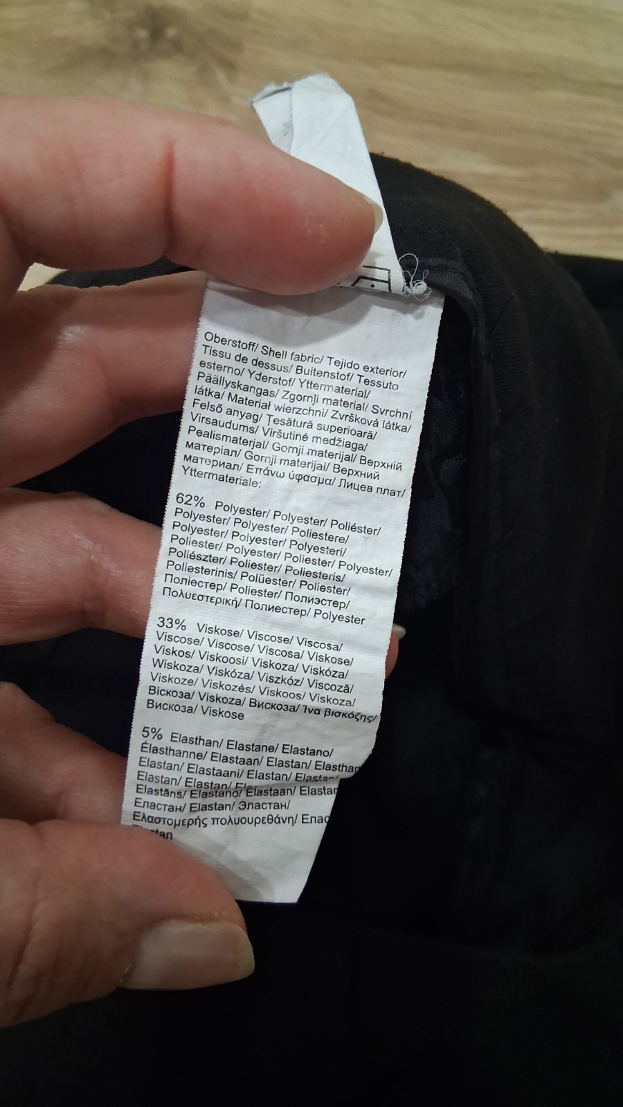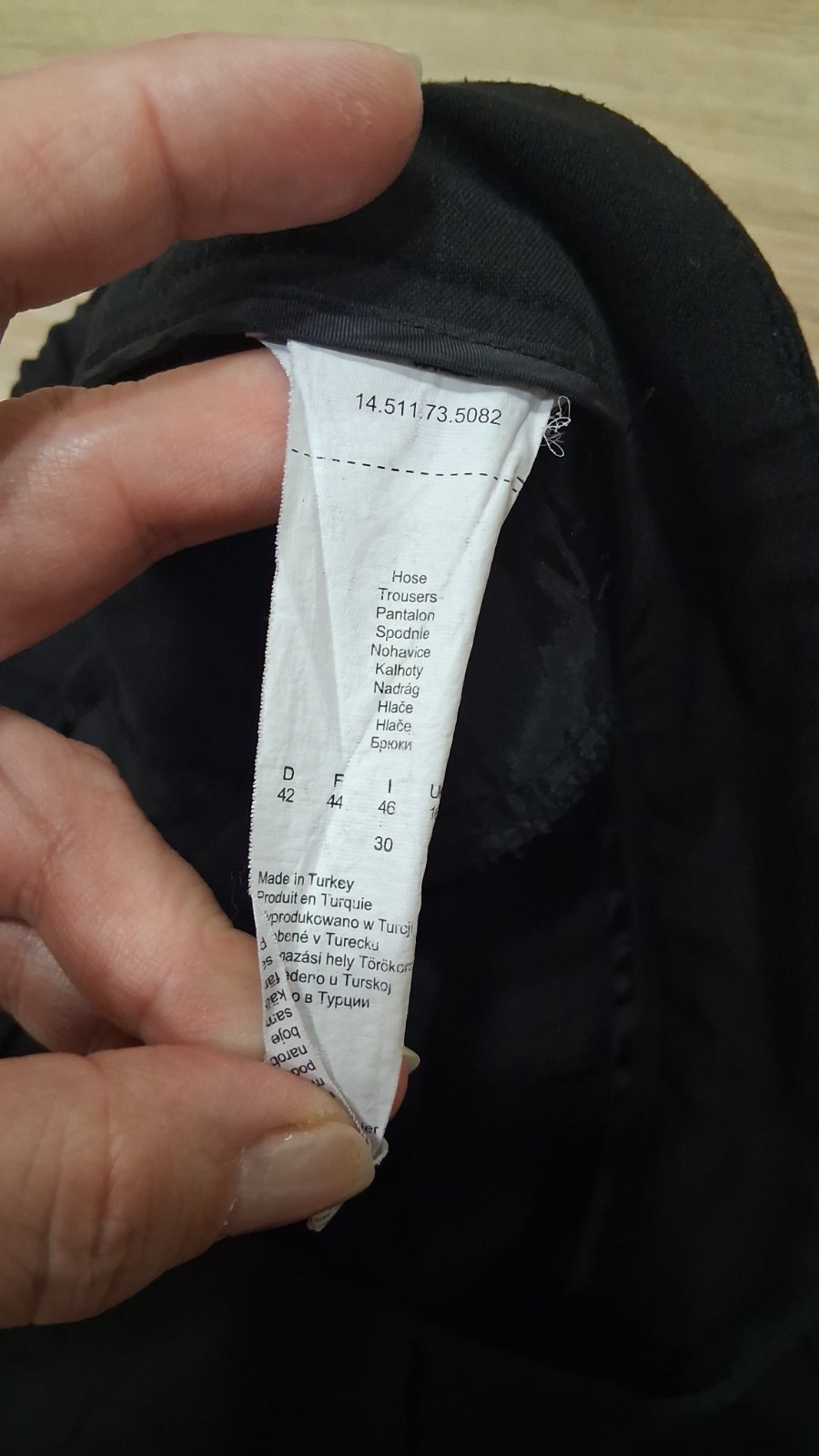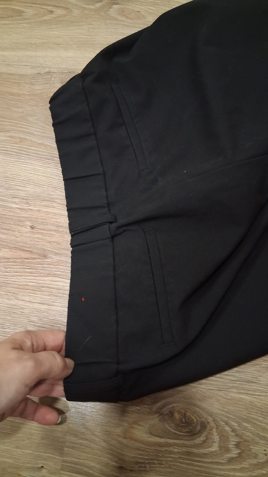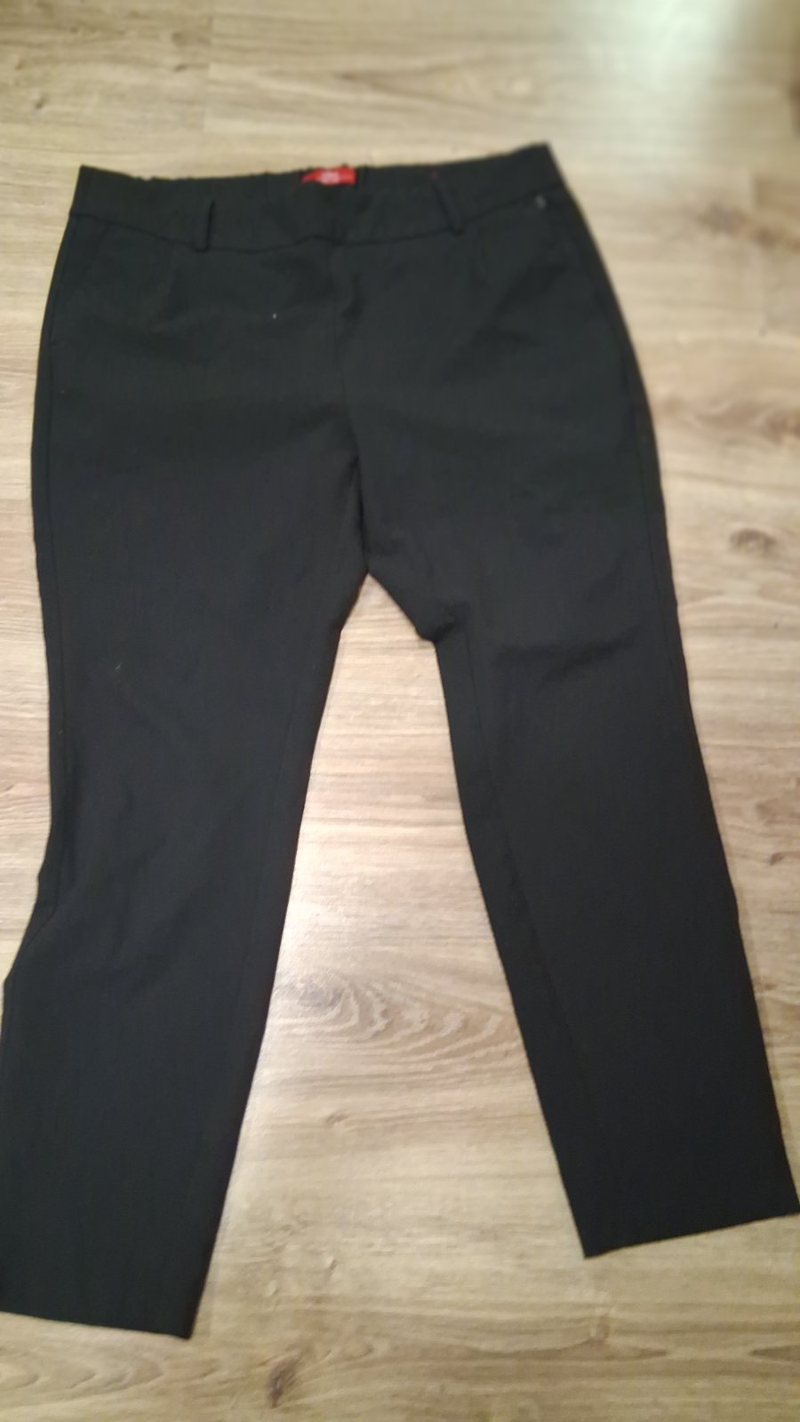Predám čierne nohavice s jemným vzorom pásikov v dobrom stave, len na pravej strane pod pásom, sú 2 x jemné zatrhnutia, to sa dá zauzliť nitka. Materiál : 100 % polyester. Nekrčia sa.