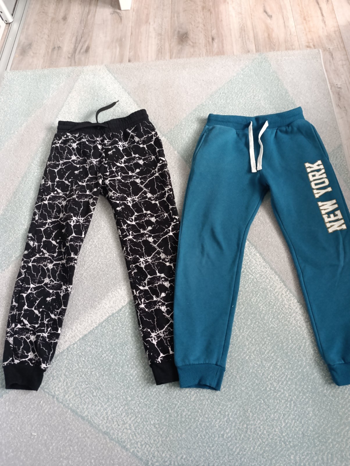 Dvoje tepláky 140/146 bez poškodení cena 6 euro za oboje.