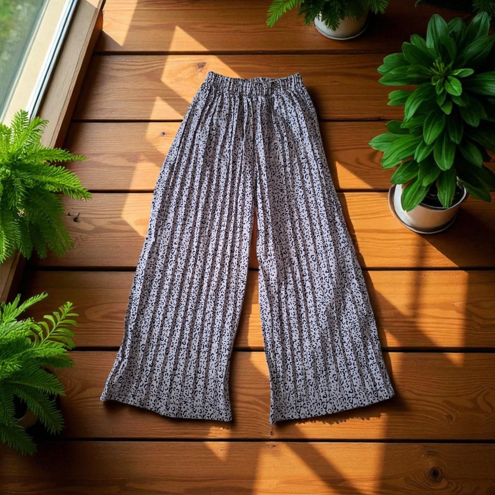 dievčenské plisované široké nohavice s leo vzorom