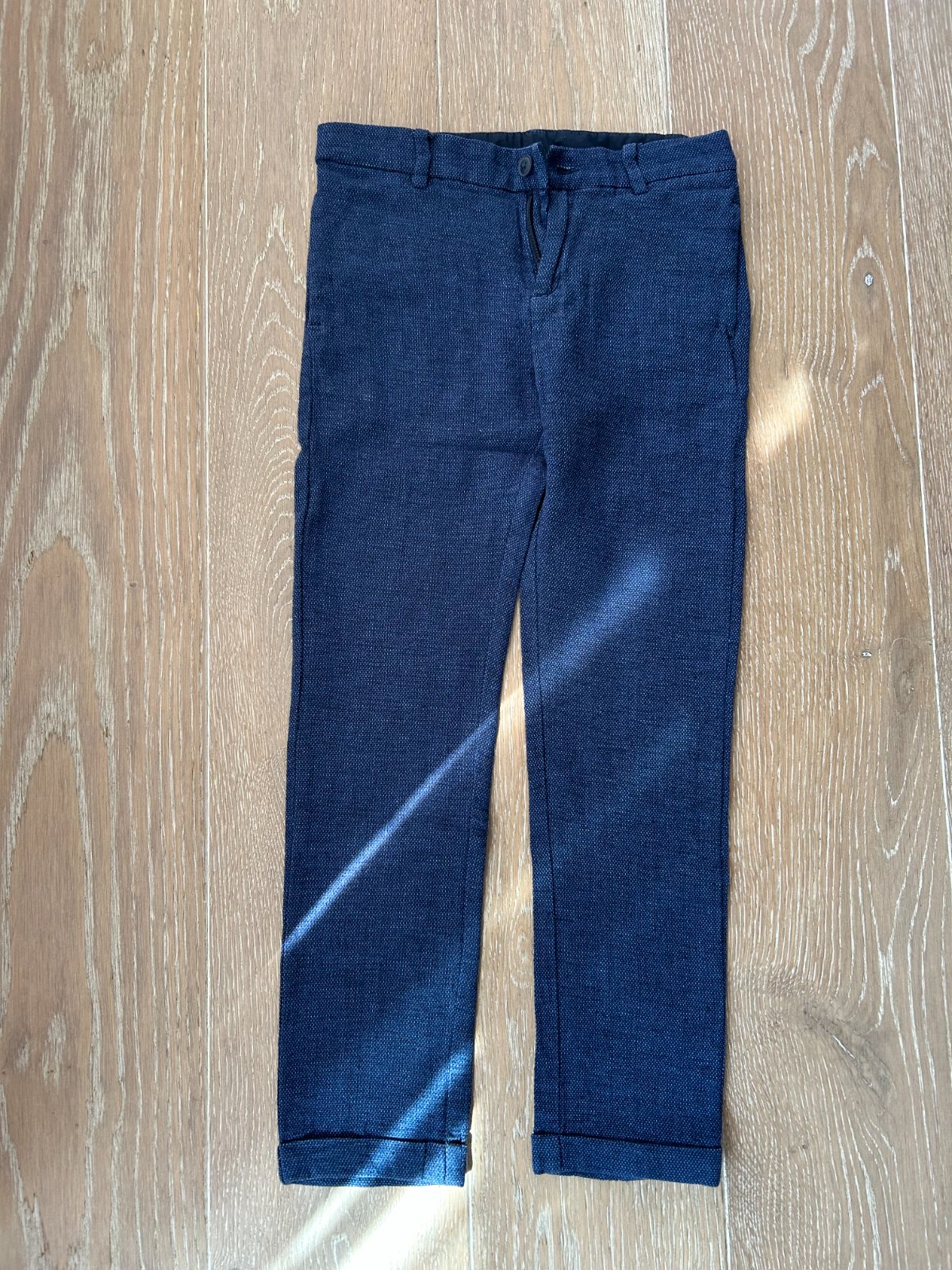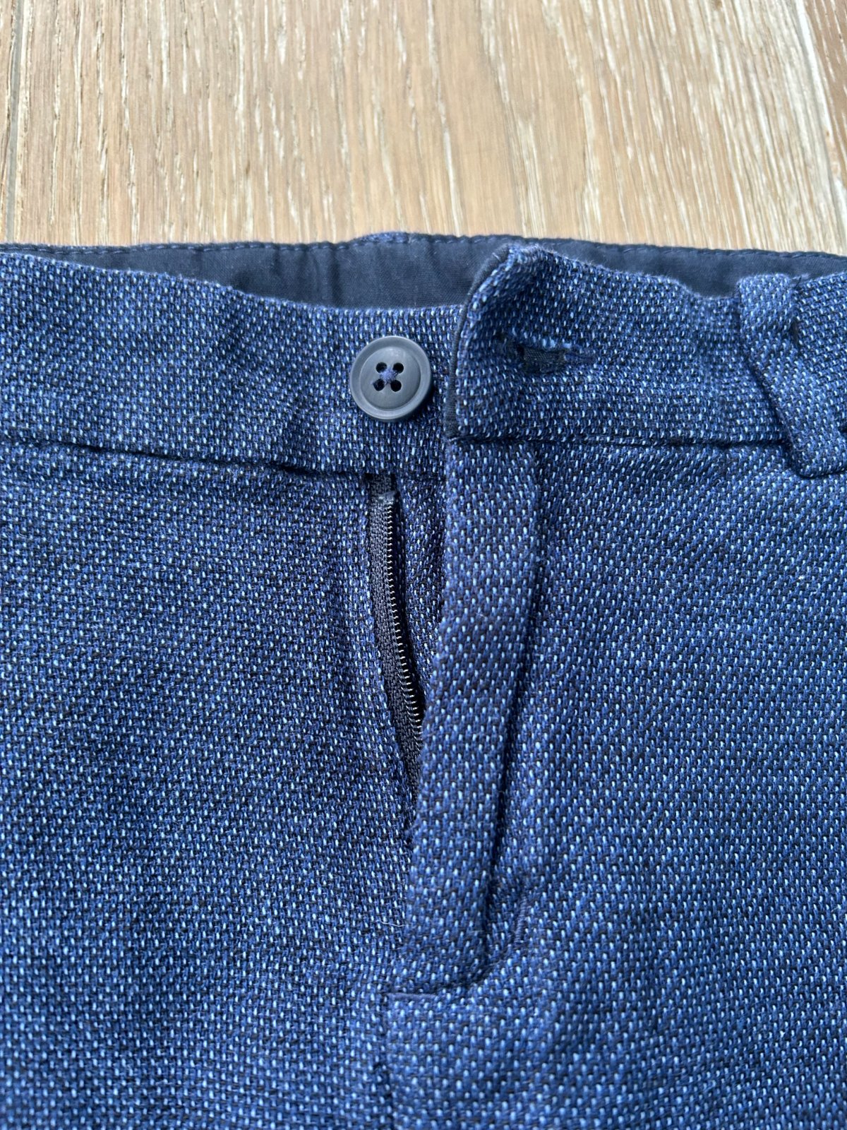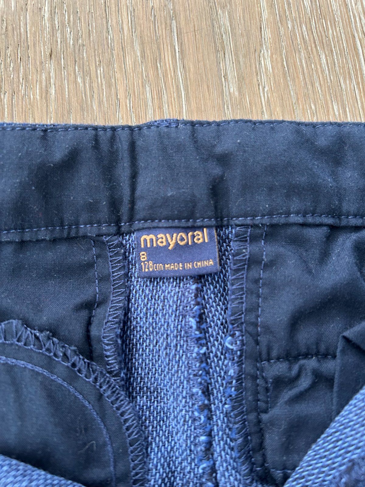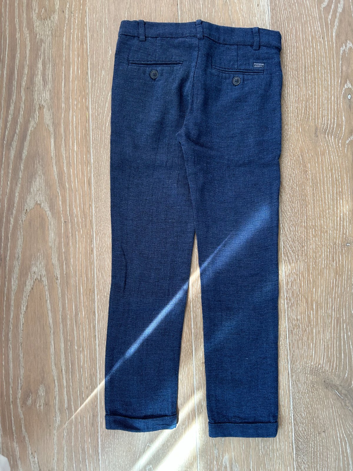 Spoločenské nohavice zn. Mayoral bez akéhokoľvek poškodenia, nastavitený pás, zapínanie na gombík a zips, dve bočné a dve zadné vrecká.