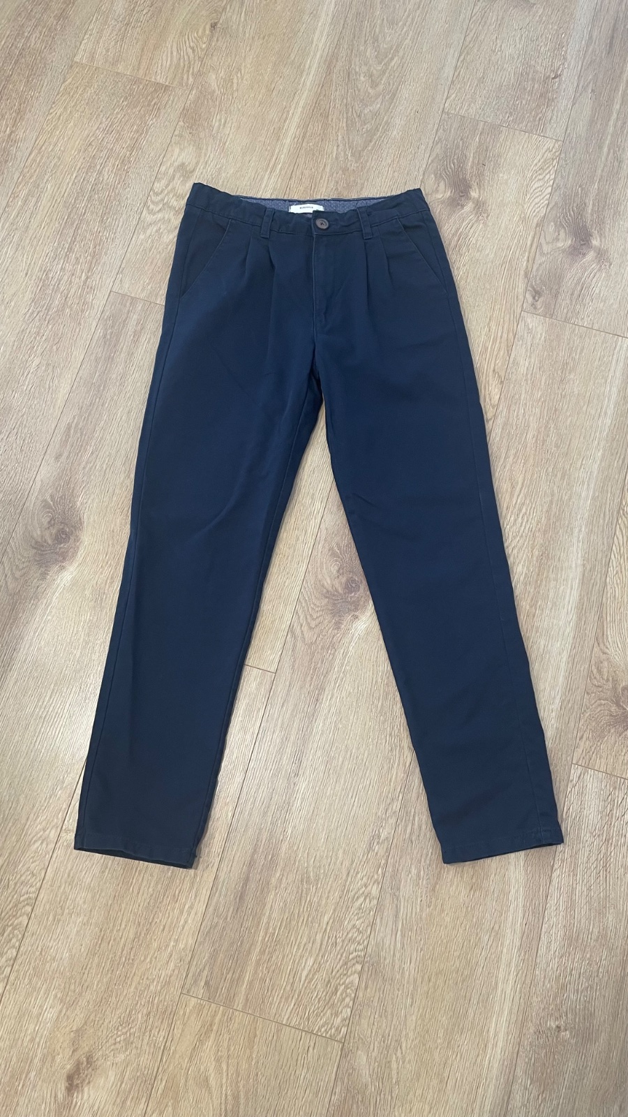 Krásne nohavice v tmavomodrej farbe s hnedým opaskom veľ.158, 1 x oblečené, super stav