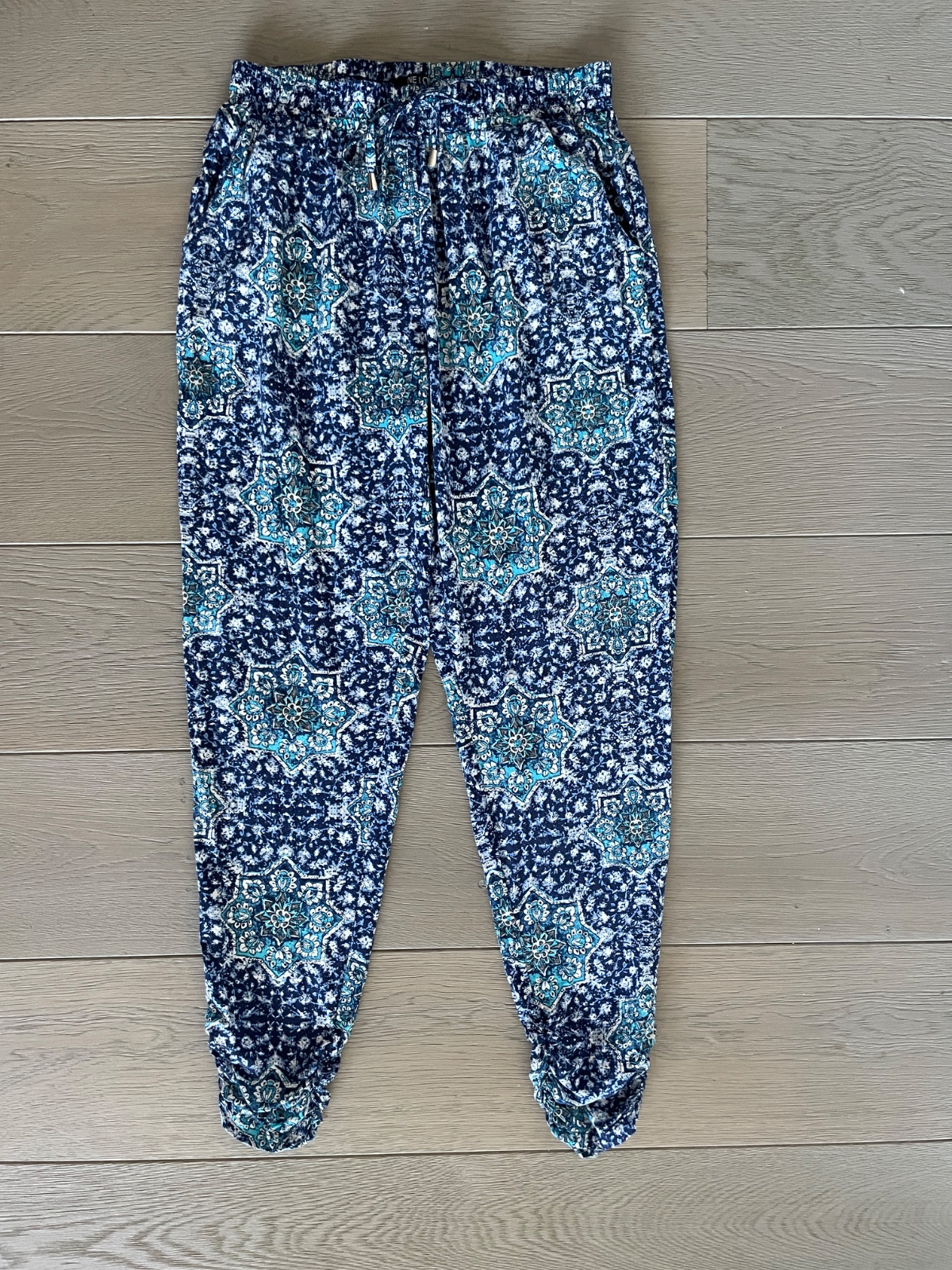 ponukam aj vzorovane nohavice, v páse je guma aj šnurka-možnosť regulácie, velmi pekny stav - 8euro