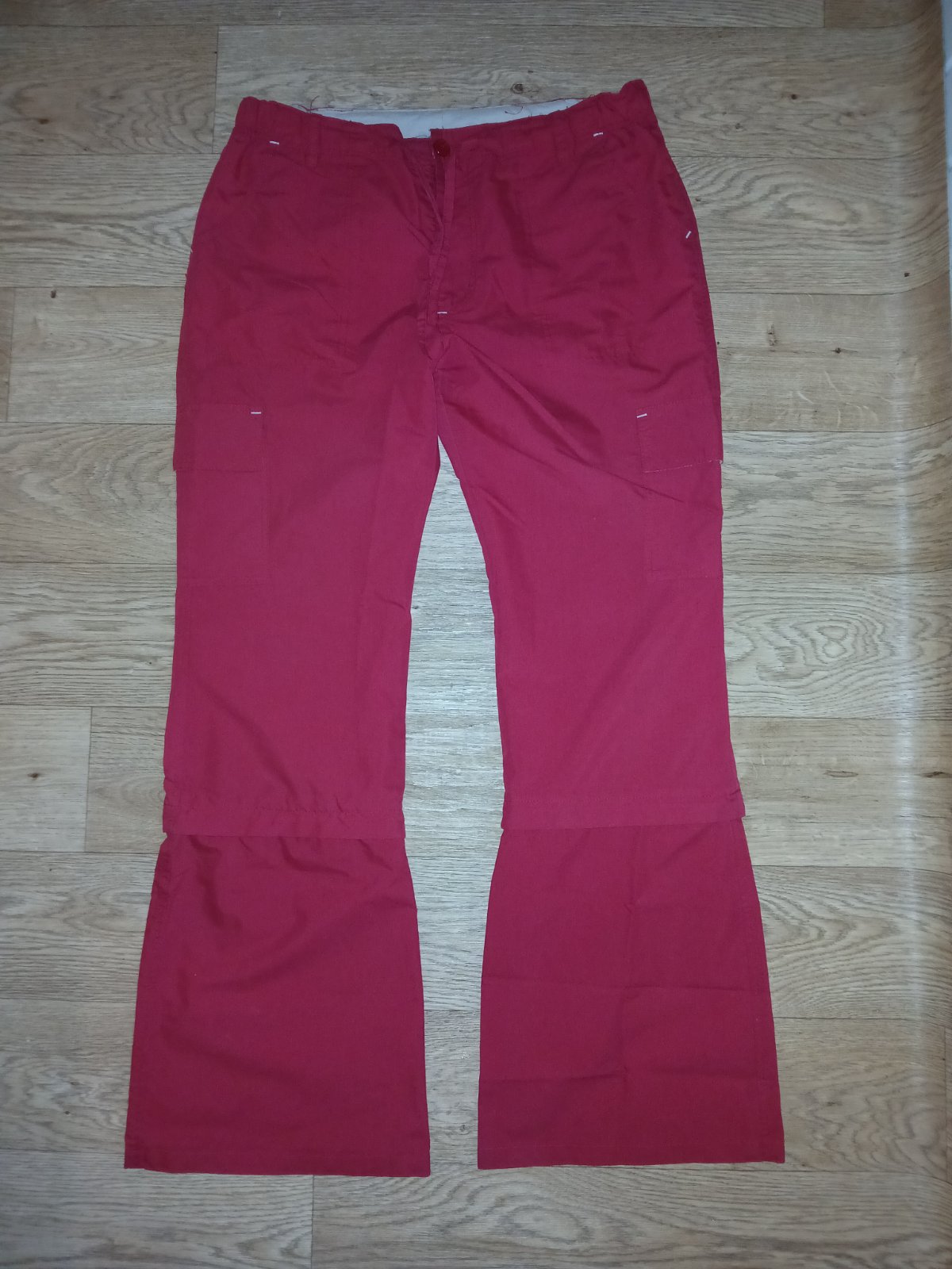 Par krat oblecene, bez poskodeni, pas 43-46, dlzka 108, od rozkroku 78. Pri kolene sa odzipsovat spodok a dlzka od pasu je 73. Materiel nie je velmi elasticky ale zato velmi prijemny na telo. 95% bavlna.