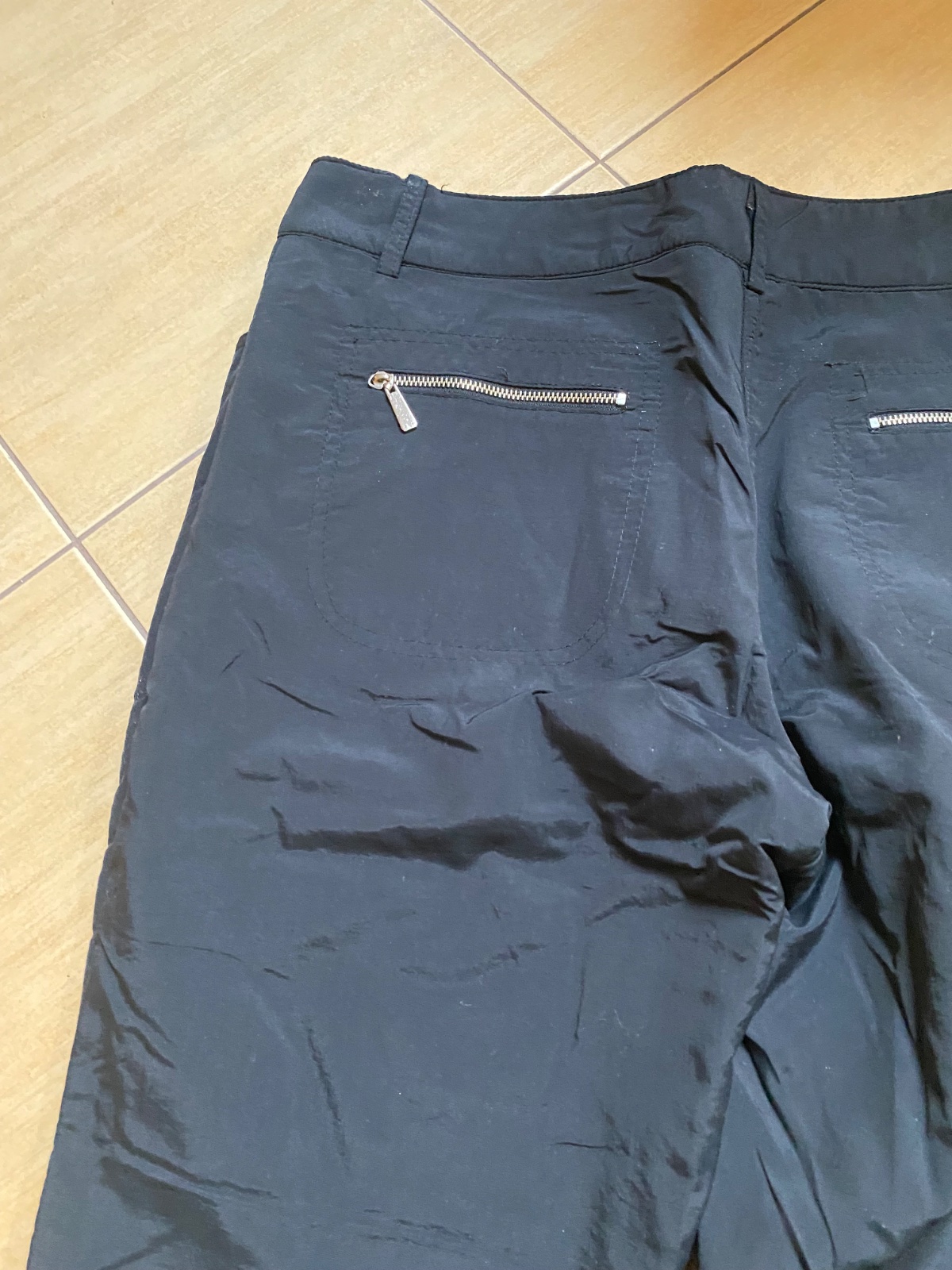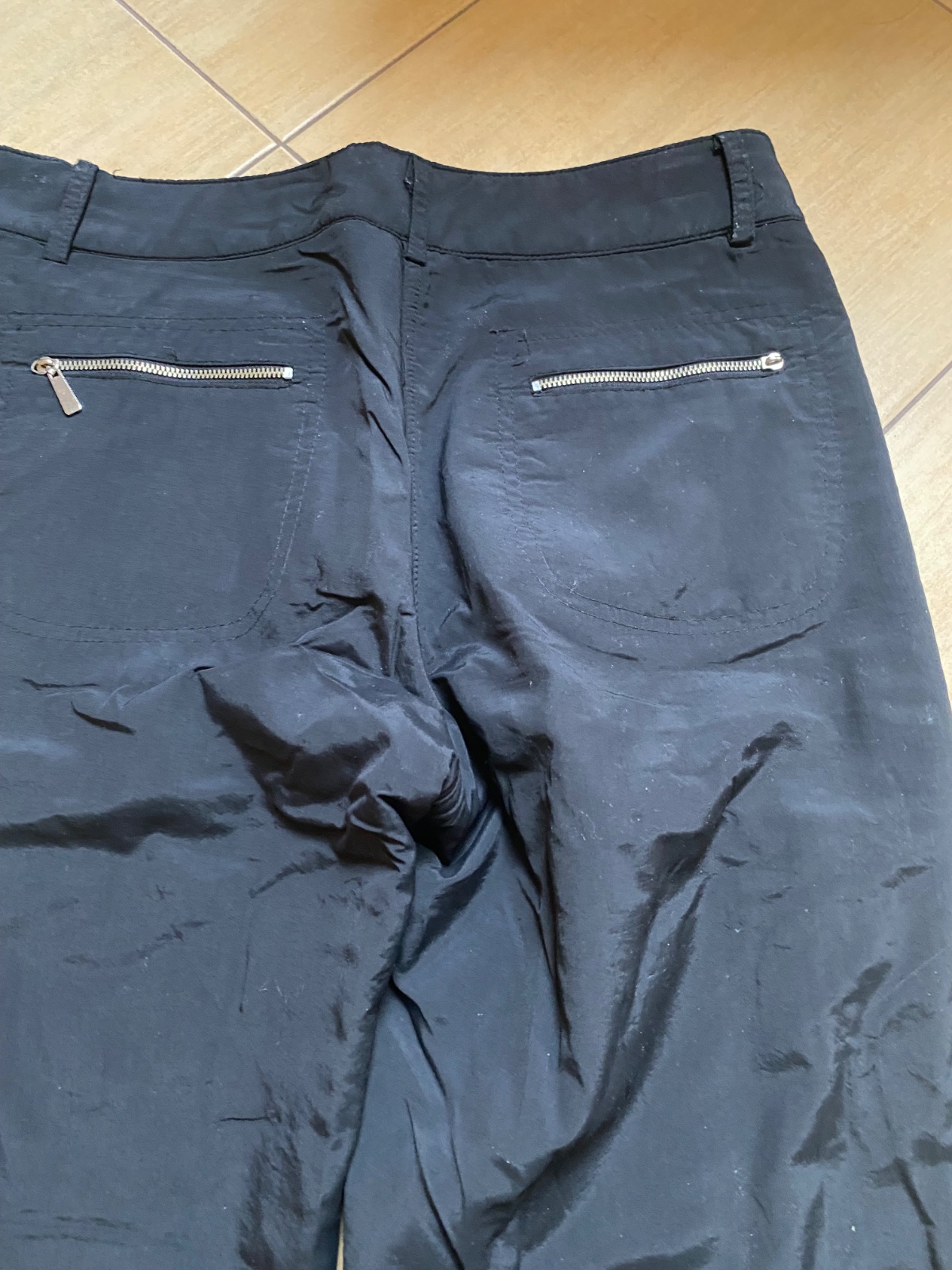 Športové tenke nohavice bedrove, veľkosť L, treba ich ožehlit a vyzerajú krajšie ako takto skrčene 🙂 Kupované nove, oblečené mozno dva krat, mne vadi ze su bedrové.