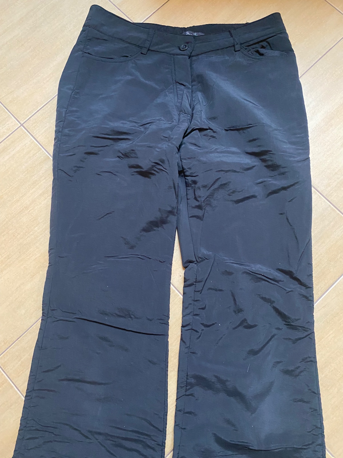 Vhodne na zimne športy, zvnútra teplý flis, zvonka sustak, nízky pas, pas 81cm, bocna dlzka 107č, zvonovy strih