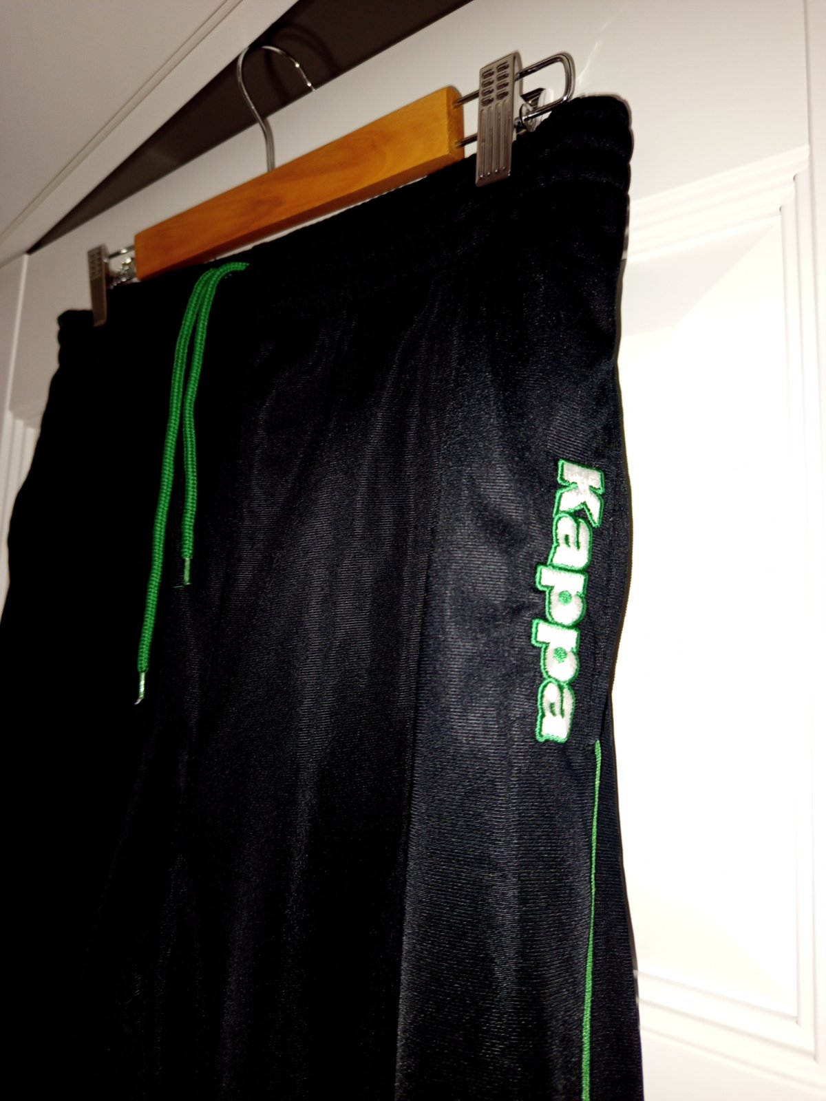 Predám pánske tepláky zn. Kappa, veľkosť "L". Svetlošedá farba. Tepláky boli málo používané, nepoškodené. V páse je guma a šnúrka, po bokoch 2 vačky so zipsom. Šírka pásu bez natiahnutia 41cm. Von...