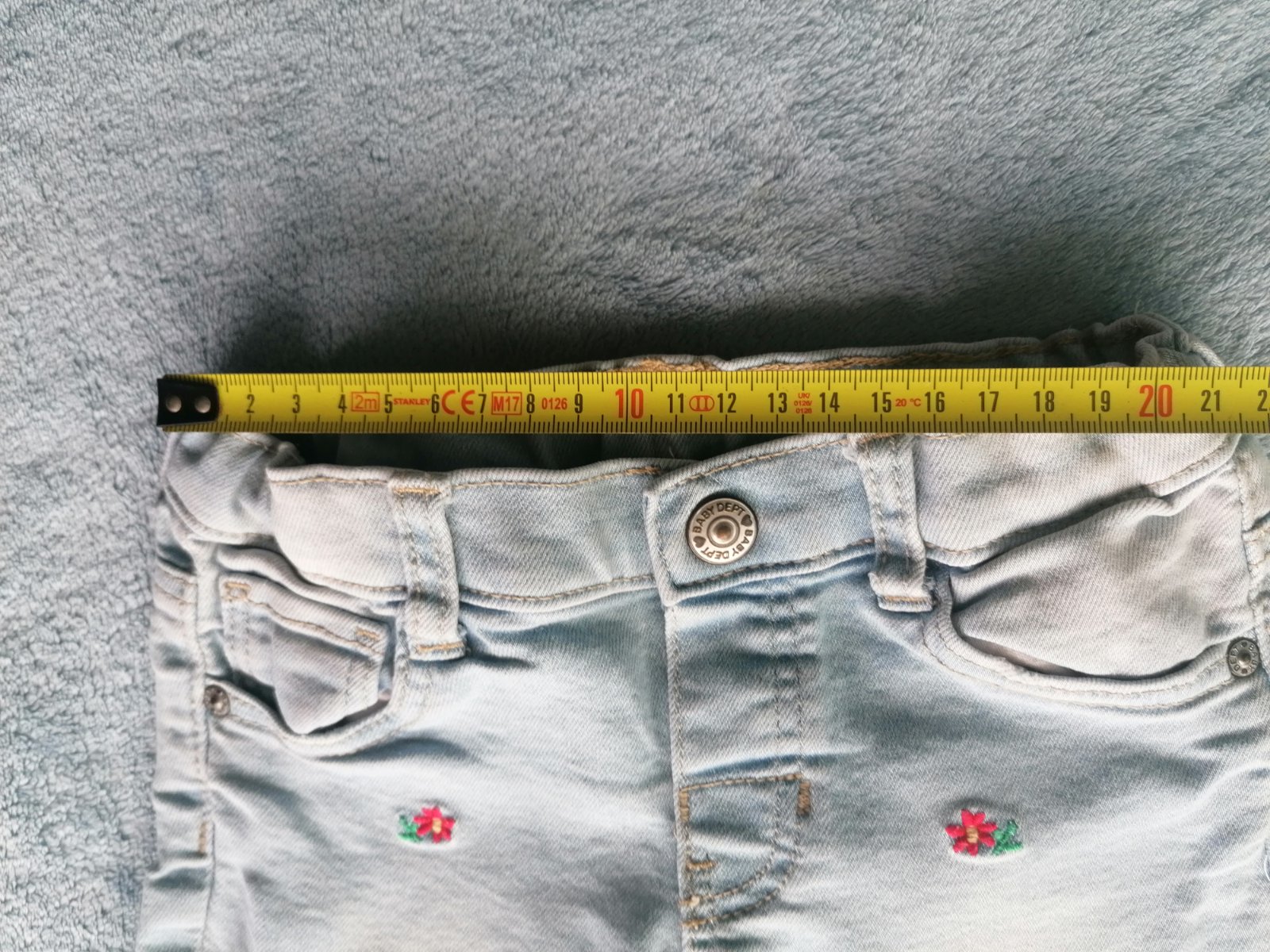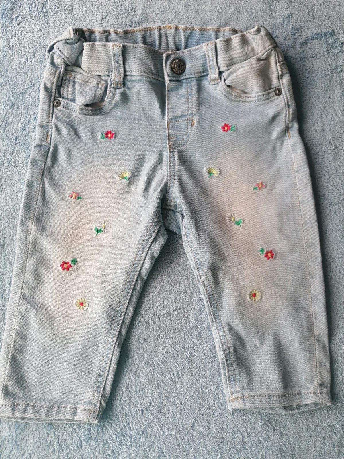 Predám rifle podšité bavlnenou látkou s peknou vyšívkou, kupované na jeseň v 100% stave - celková dĺžka 39 cm, vnútorná 20,5 cm, pás 2x 20 cm - veľkosť uvedená 6-9 mesiacov - ponosíte dlhšie - na p...