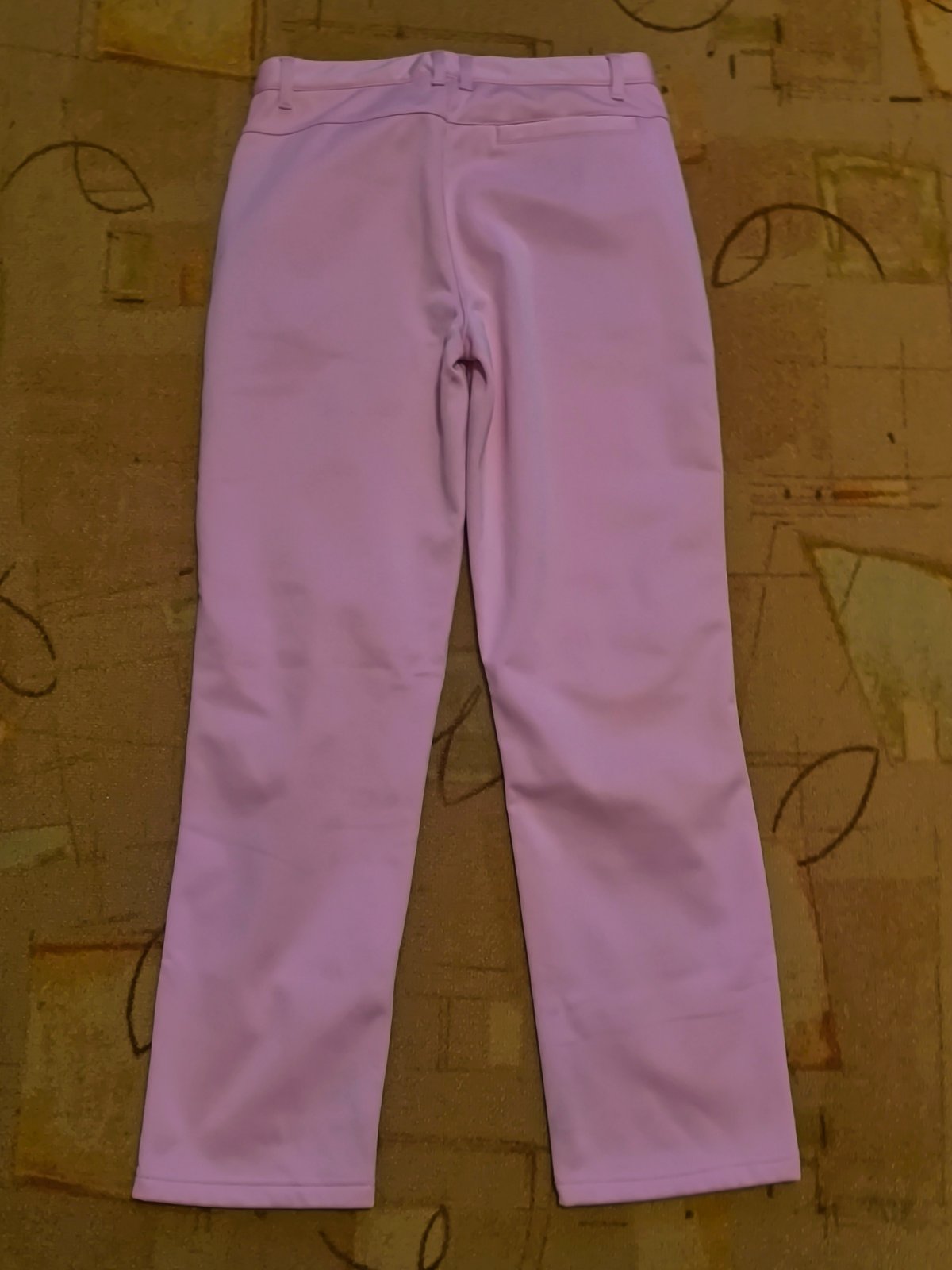 Ružové softšelové nohavice... Vpredu sú dve vrecká na zips, vzadu je jedno vrecko... V páse je gumička na regulovanie šírky...