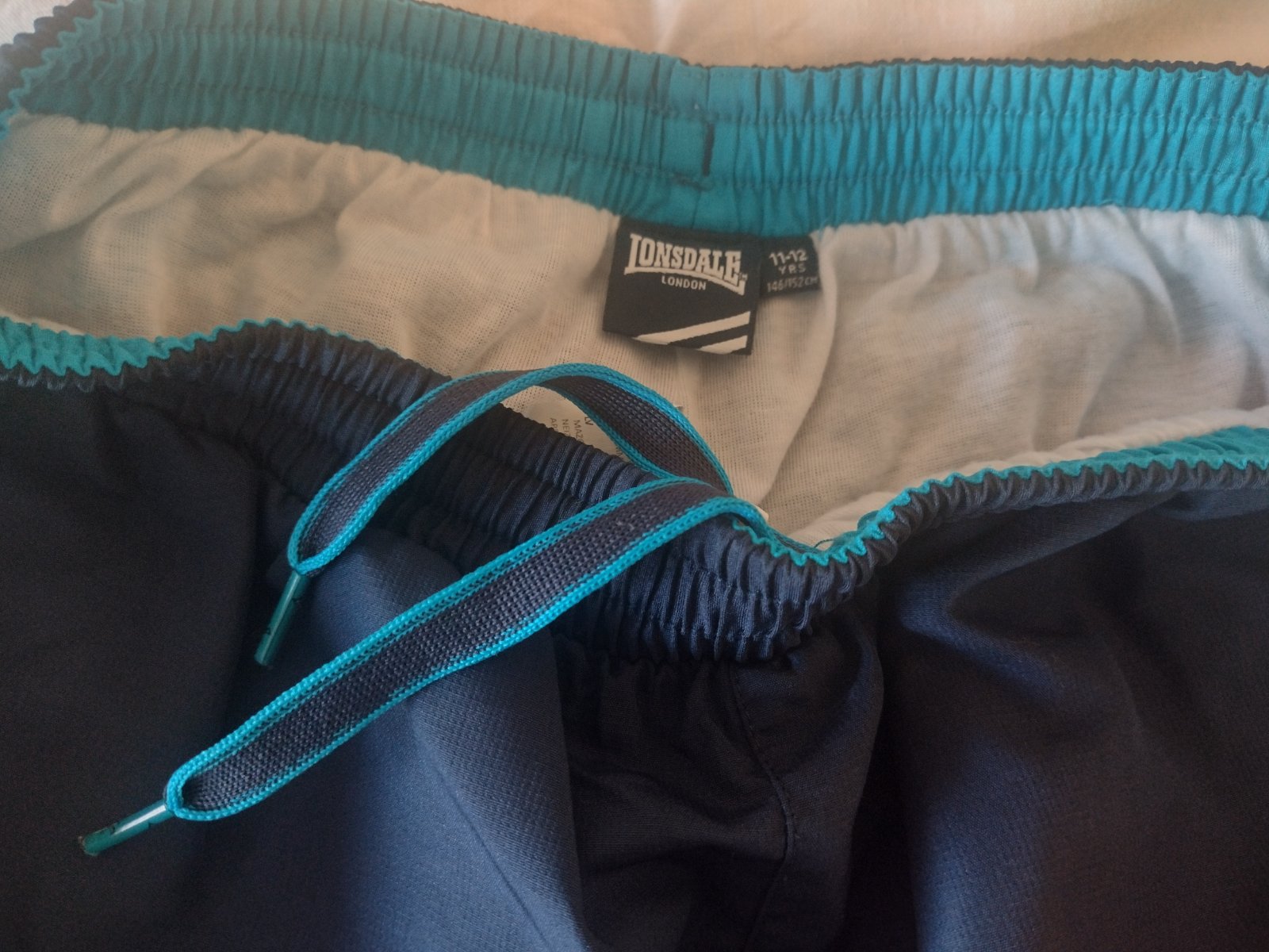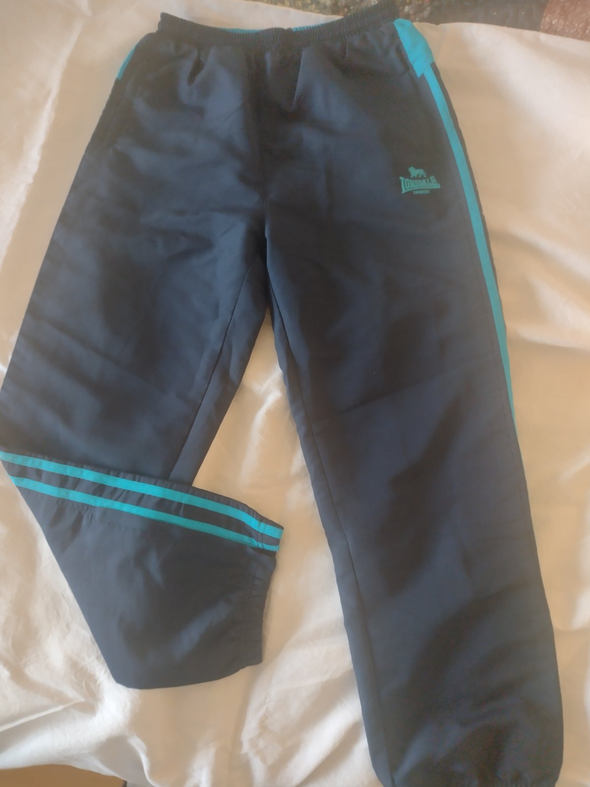 Predám málo nosené športové nohavice, šušťáky. Podšité, cca po kolená tričkovinou, od kolien dole šmykľavý polyester. Výborný stav, ako nové. V páse na gumu, dajú sa sťahovať, dole pri členkoch sa dajú rozopnúť zipsom. Značka Londsdale, číslo 146/152. V prípade záujmu premeriam.