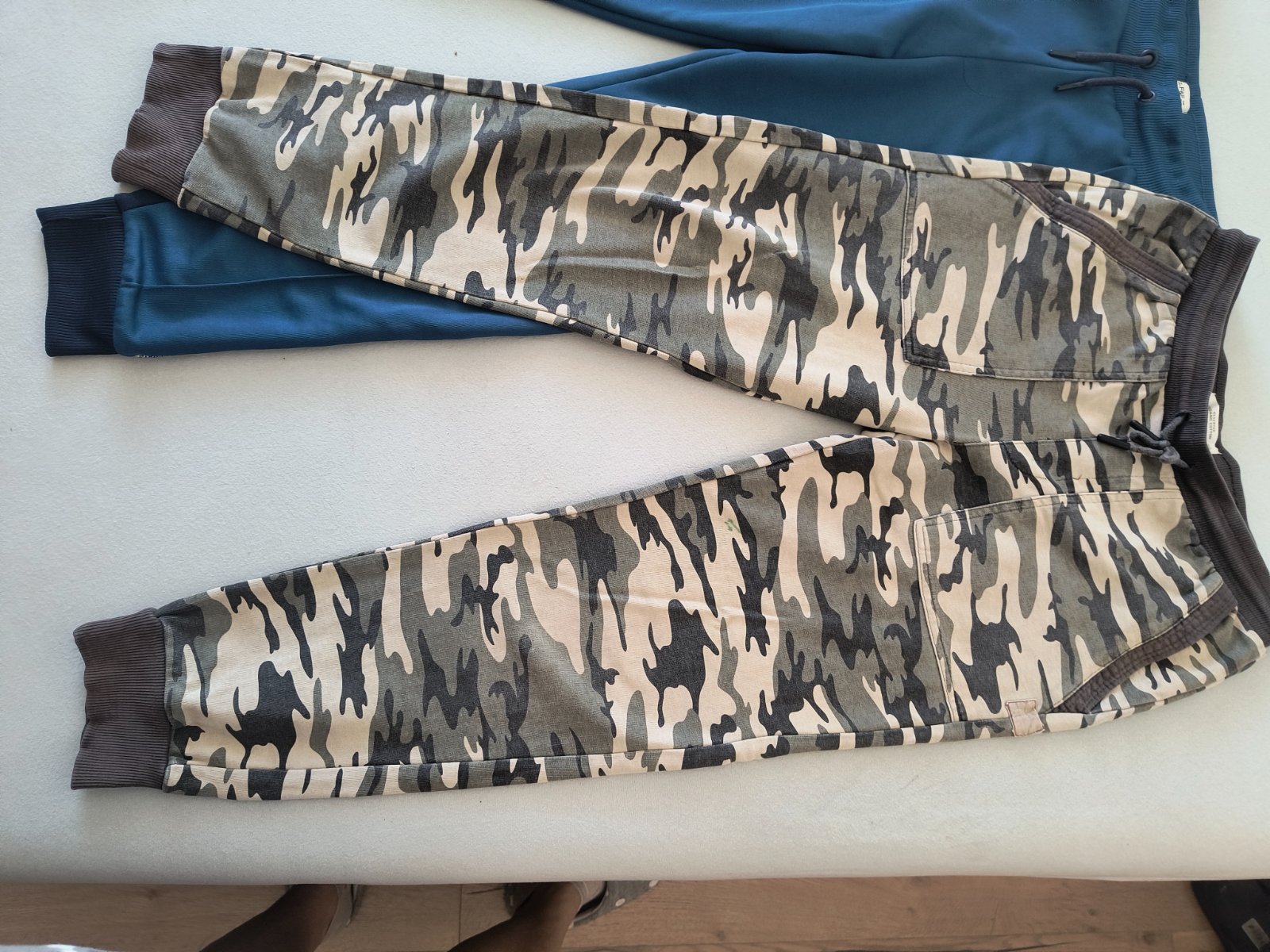 veľmi zachovalé bez poškodenia a žmolkov... chlapčenské frajerské tepláky veľkosť 164 na 14 rokov farba tmavozelené olivová materiál bavlna na gumičku + šnúrku v páse bočné dve vracká + zadné vr...