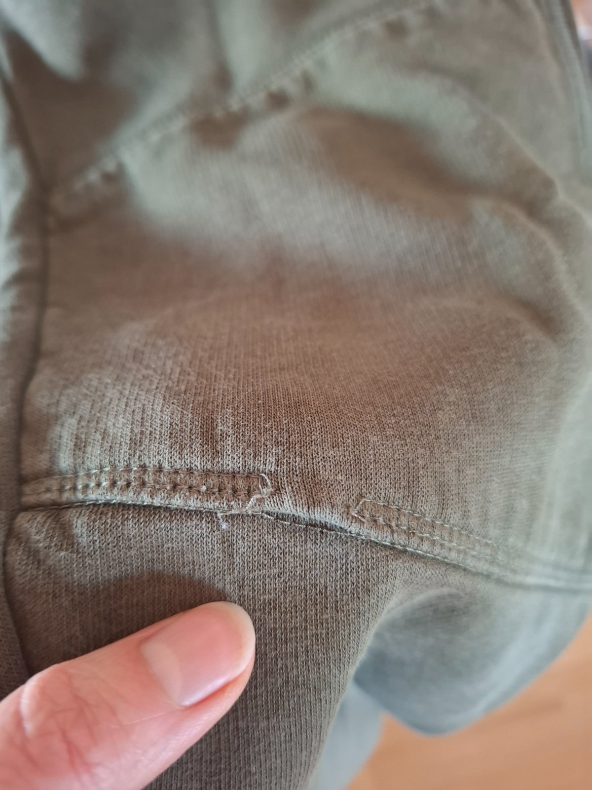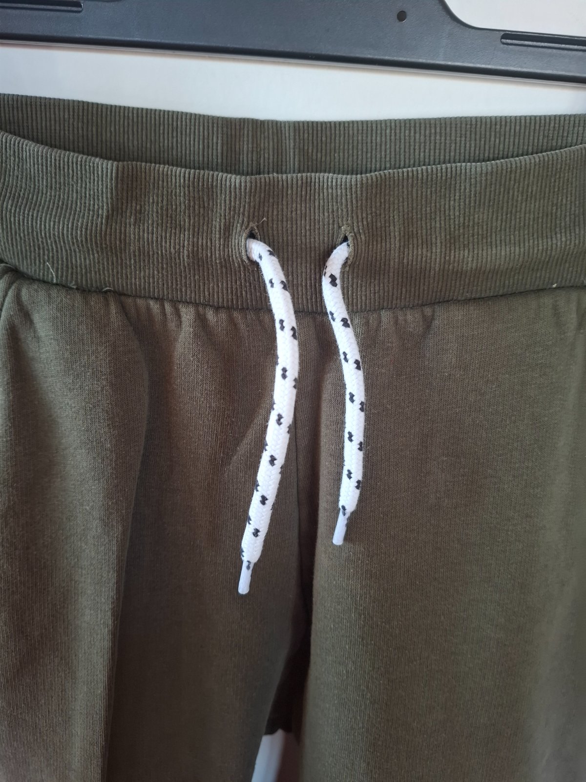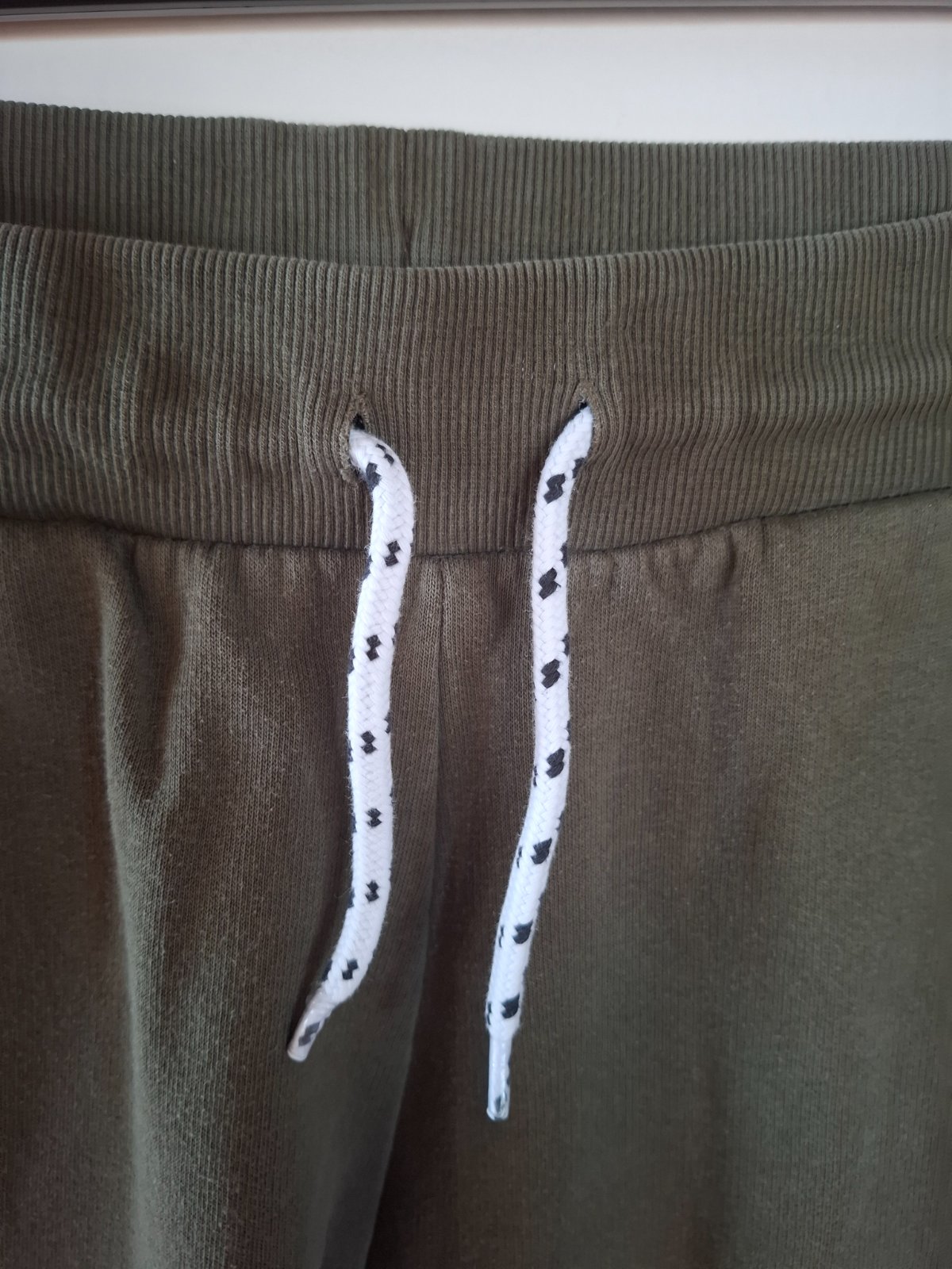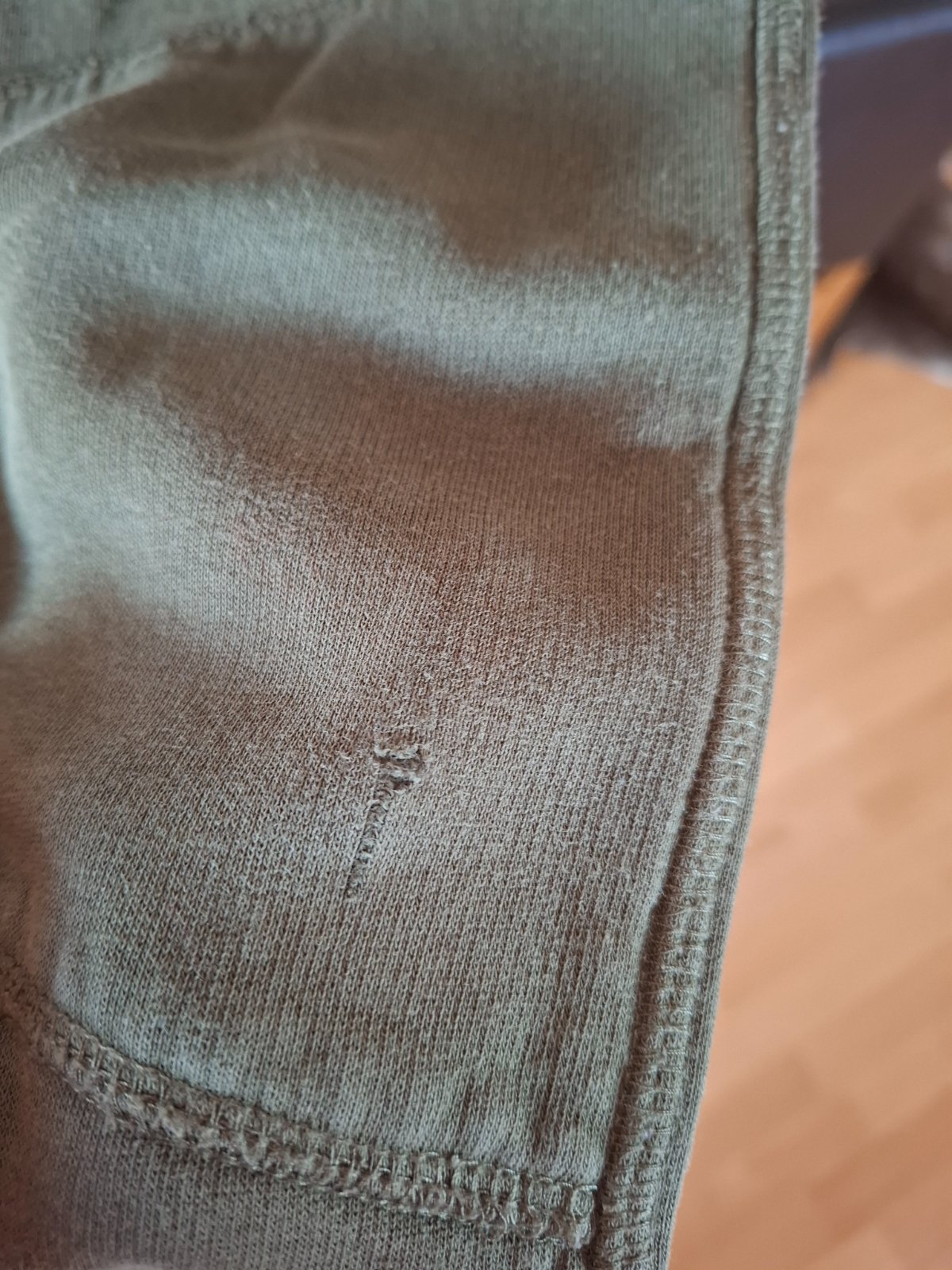 - sú rovnaká veľkosť aj farba a oba kusy majú chybu na ľavom kolene - na jedných teplákoch je vypáraná nitka (viď foto) a na druhých je dierka cca 1,5 cm (viď foto)