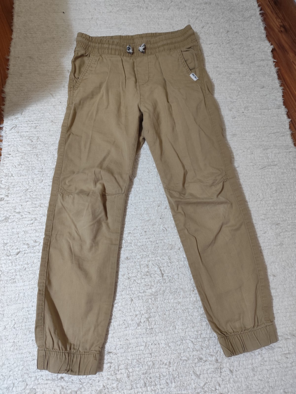 Nohavice po synovi. Vnútri je nastaviteľný pás. Nosenie vidieť na kolenách, sú trošku bledšie, iné vady nemajú.