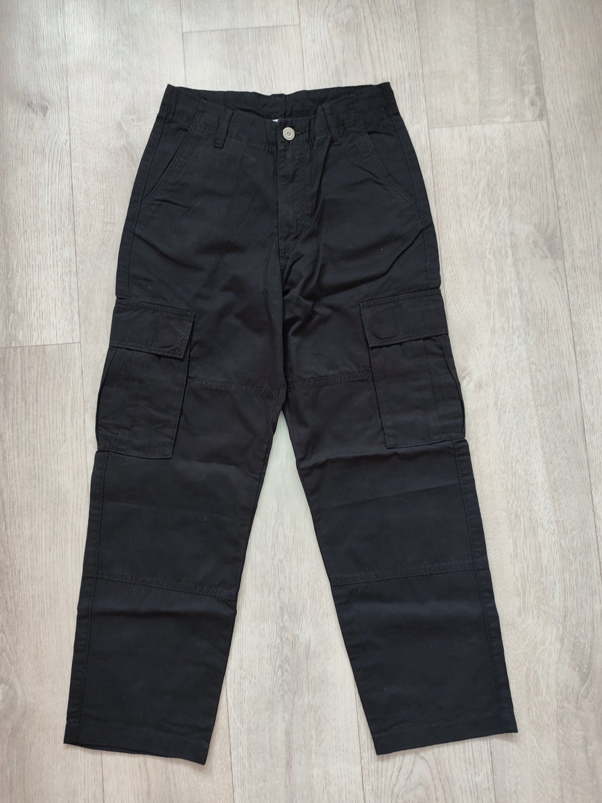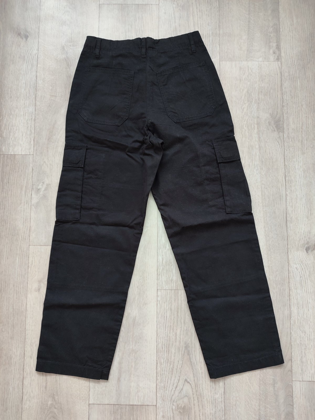 Iba opraté, ležérny rovný strih s nastaviteľnou gumou v páse, zapínaním na zips a gombík, šikmými bočnými vreckami, zadnými vreckami a našitými vreckami s chlopňou na stehnách.