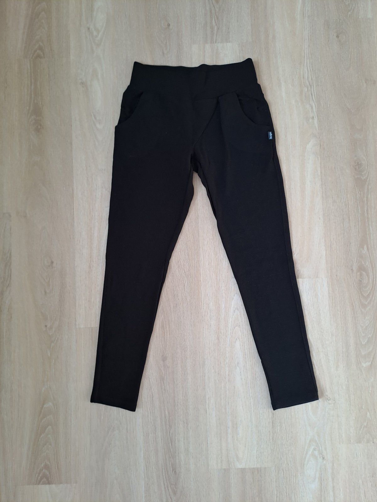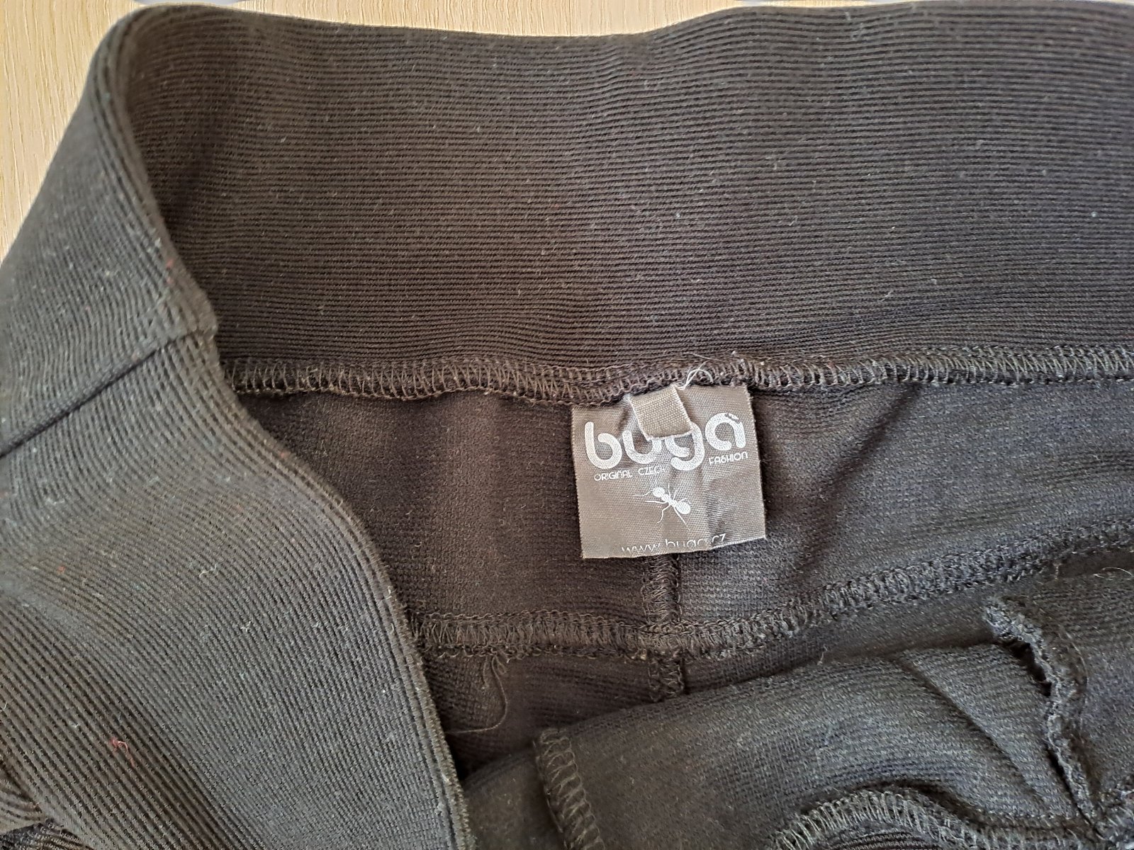 Štýlové nohavice značky Buga, veľkosť M, strih je so šikmým predným sedom. Materiál je pružný, skôr hrubší, nohavice dobre sedia na postave.