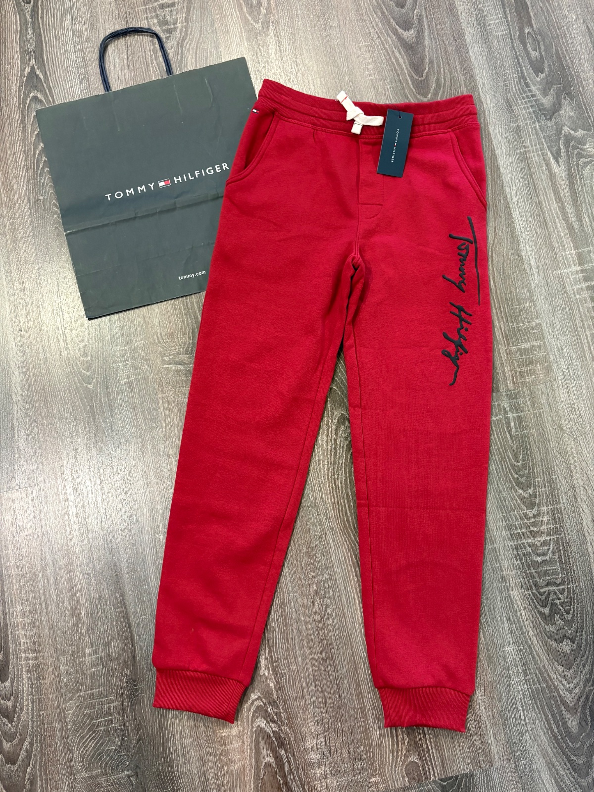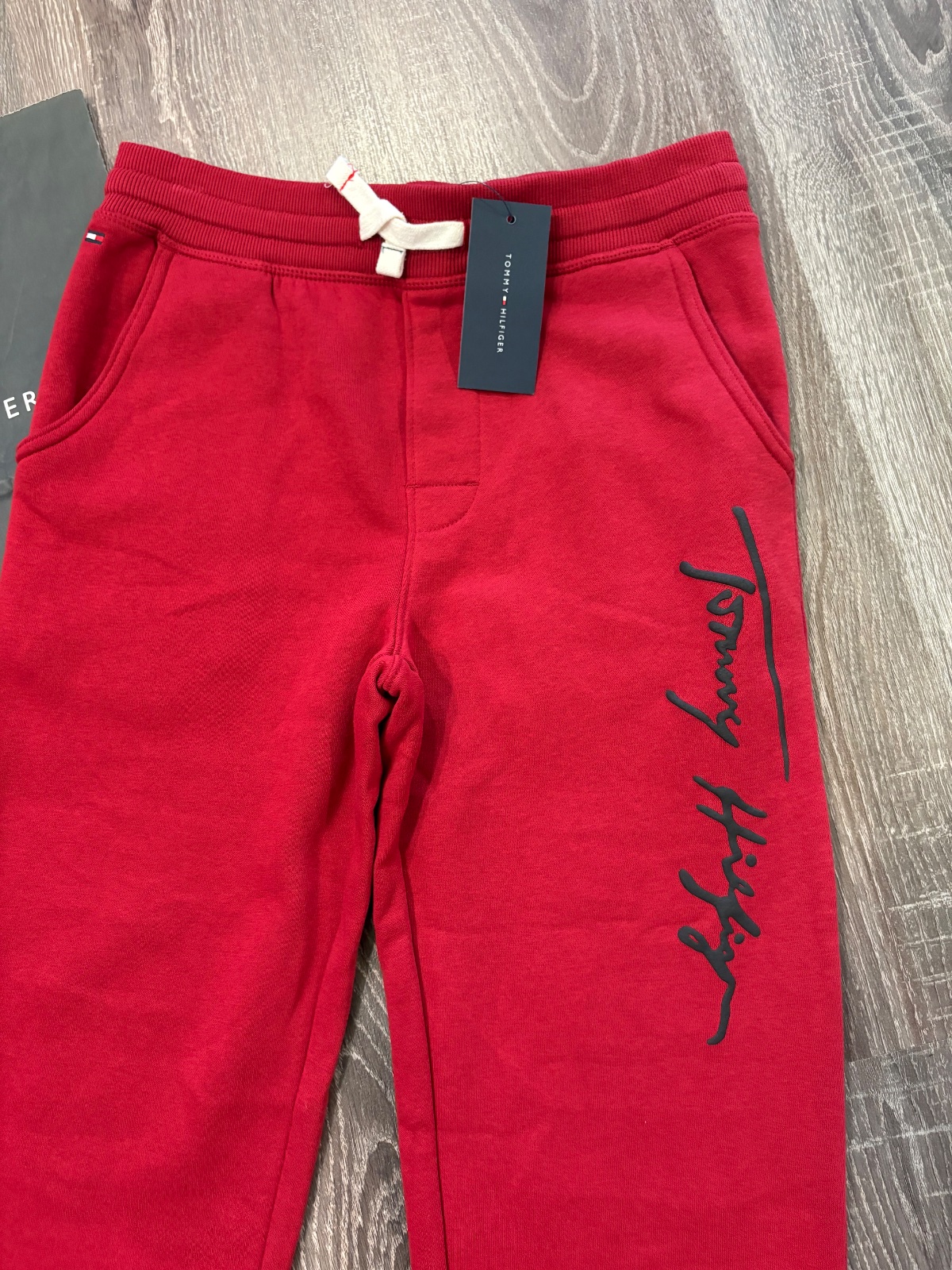 111.Tommy Hilfiger nove detske teplaky vo velkosti 10-12 rokov,v pase na gumku no daju sa stiahnut aj snurkou.Dlzka je 91cm,sirka v pase je od 35x2cm do 41x2cm