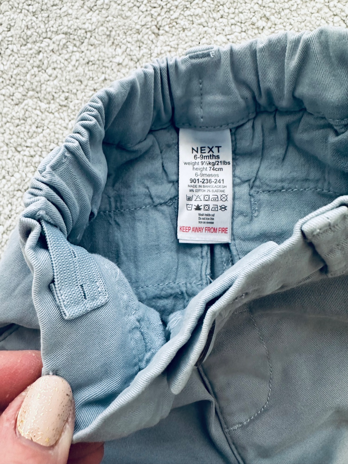 Chlapčenské nohavice, značky Next. Veľkosť 6-9 mesiacov (68-74). V peknom stave, oblečené dva krát na oslave