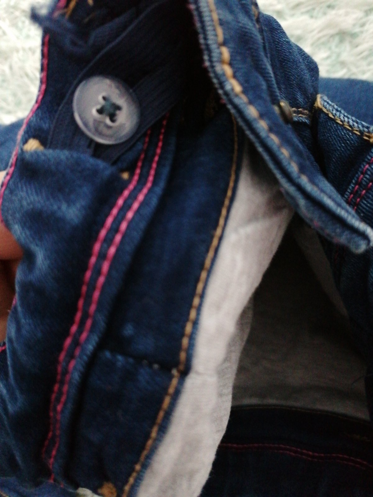 Predám bavlnou podšité rifle. Zachovalý stav, iba jemne šuchnuté kolená. Dĺžka cca 60 cm, šírka v páse cca 23 cm. V páse je guma na sťahovanie.