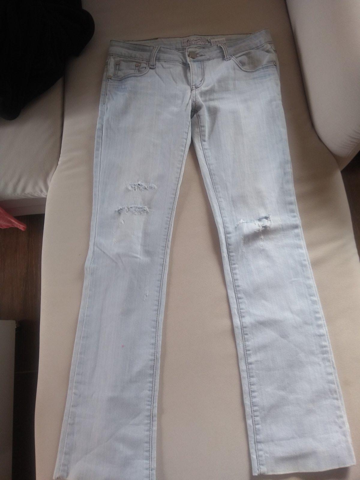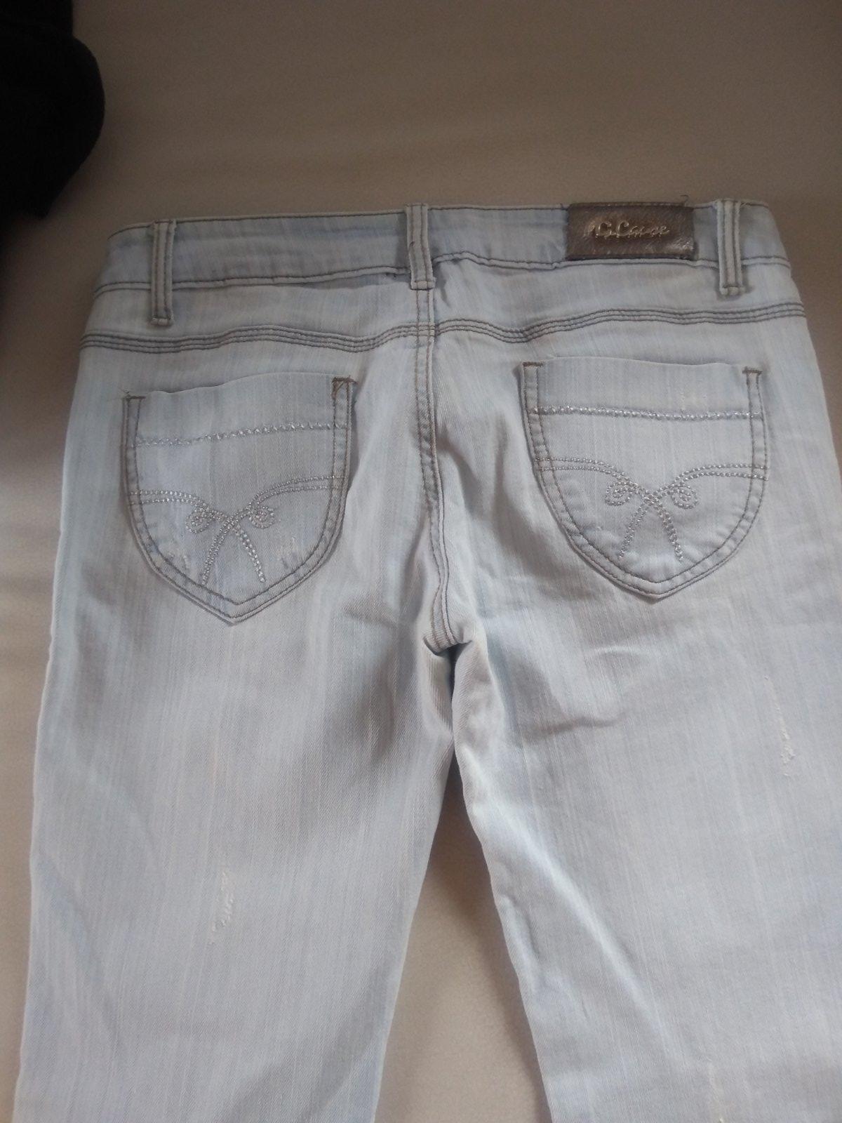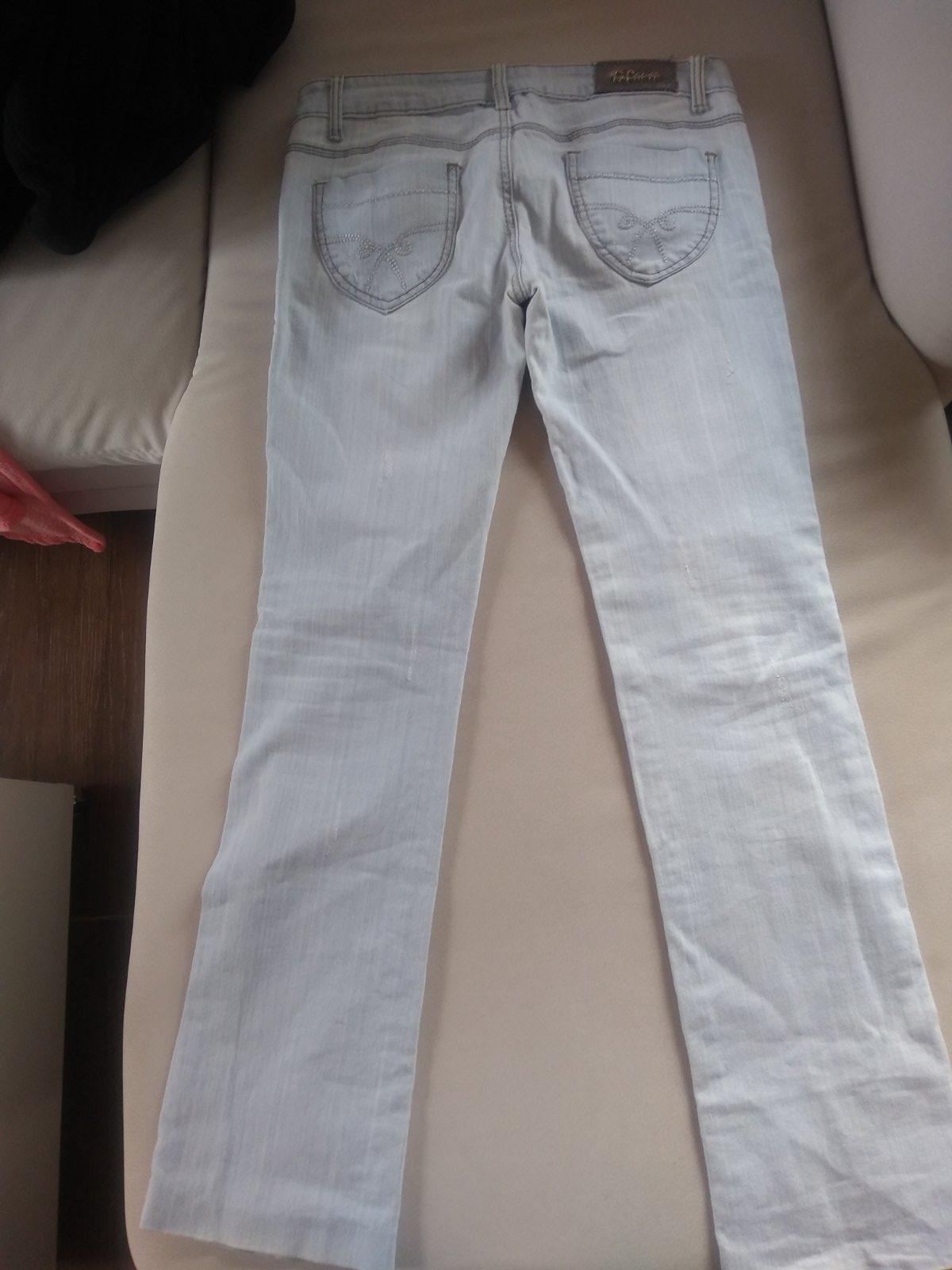 Naživo odost krajšia farba, skôr svetlomodrá Super stav, elasticke po celej dĺžke aj v pase , príjemná riflovina Dĺžka 96cm, šírka pasu 38cm, šírka bokov 46cm