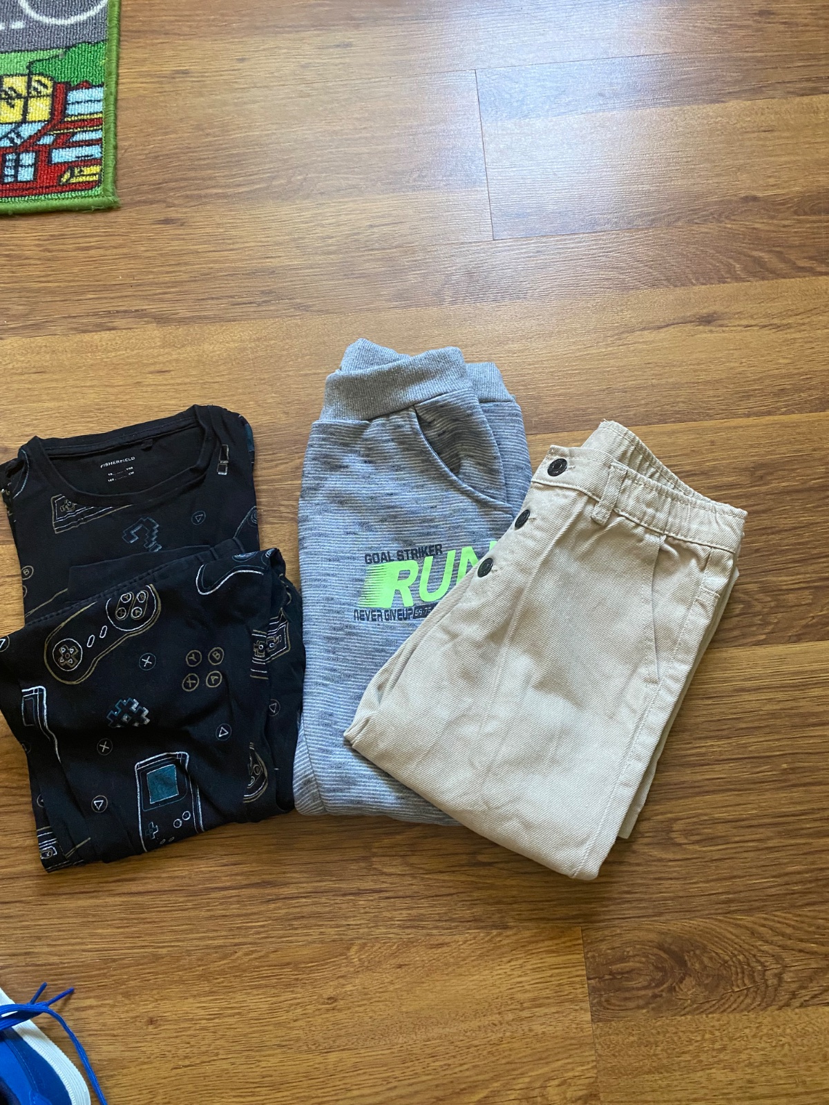 Predám nohavice kapsáče F&F, veľkosť 11-12 rokov, cca 134-140. Dĺžka nohavice 84 cm, obvod stehna 42 cm.Opotrebenie podľa fotografií.Oblečené len párkrát.