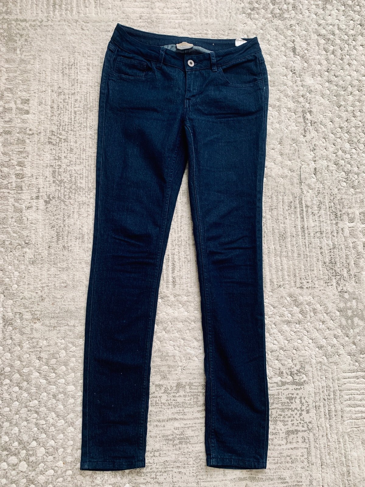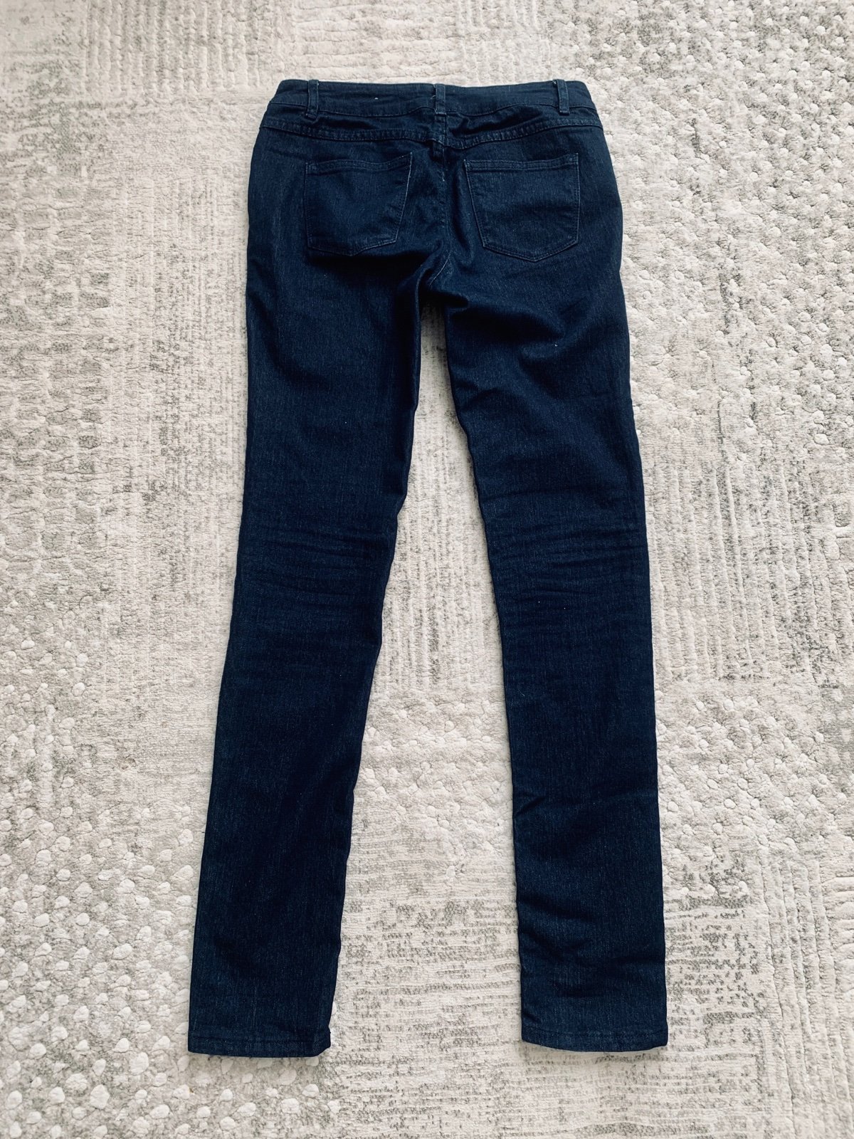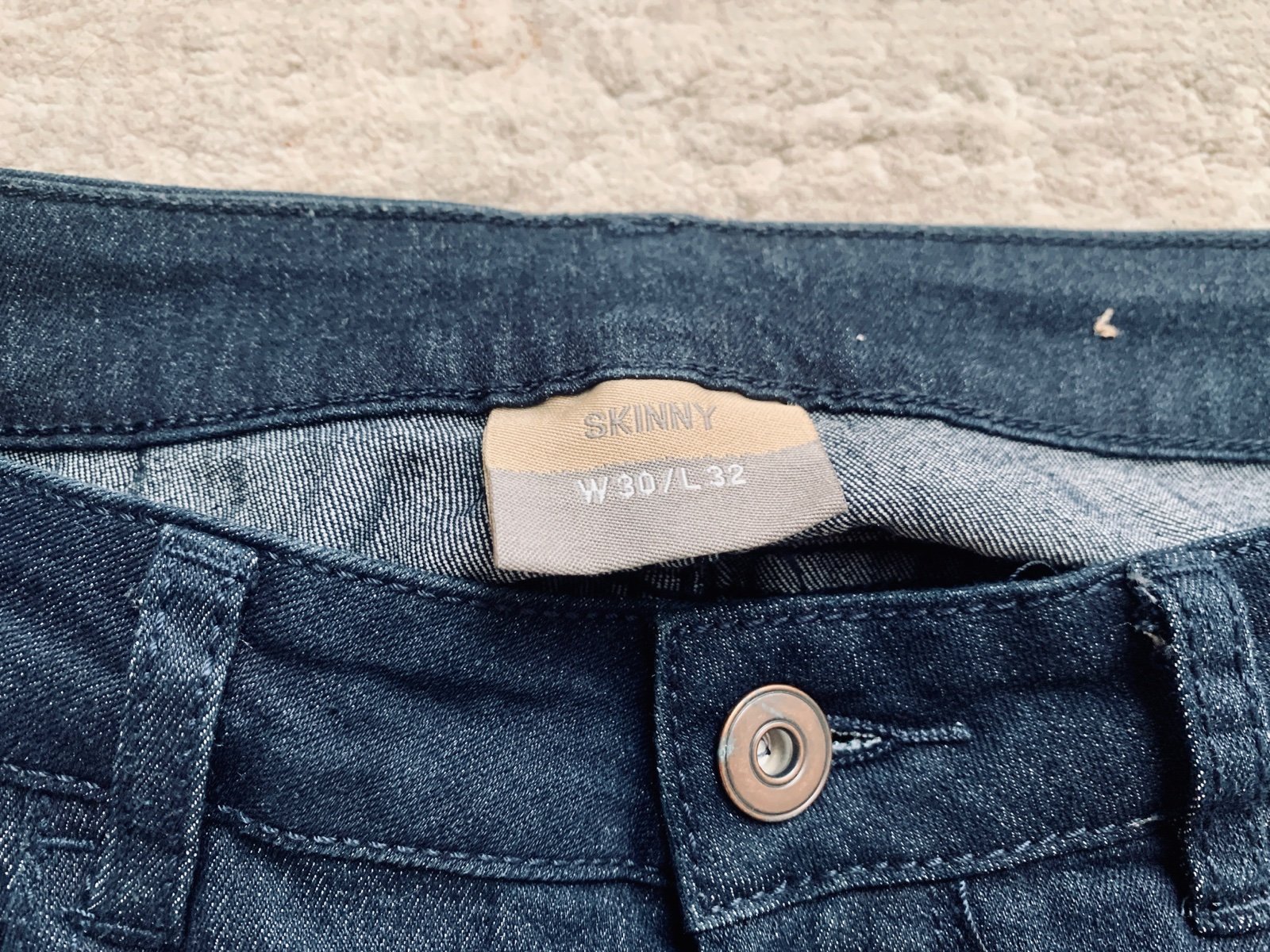 Skinny tmavomodré rifle bez vyšúchania, veľkosť 30 (odhadujem cca 40), pevnejšia riflovina, skladované