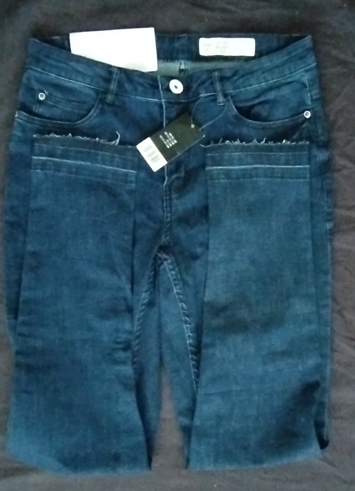 Predám nové originál s visačkou Džínsy (rifle) klasický štýl s 5 vreckami. Značka Esmara Lidl, veľkosť 42, tmavomodrá farba. Materiál 86% bavlna, 12% polyester, 2% elastan. Výroba Bangladéš.