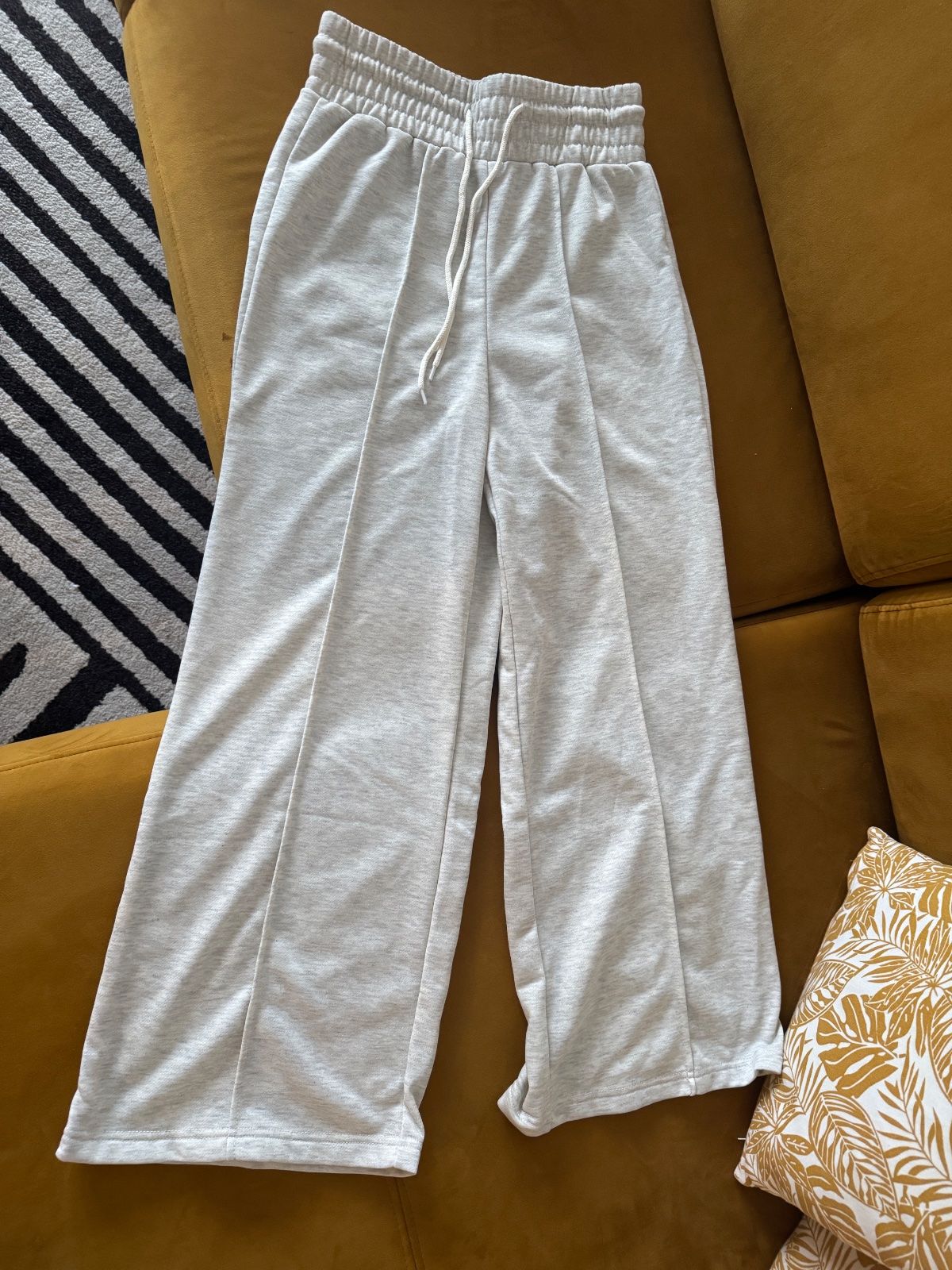 Dámske sivé široké tepláky, nenosené. Sú úplne nové, sú mi žiaľ krátke. Kupované na shein. Majú elastický pás, vid na foto. Pridávam presné rozmery