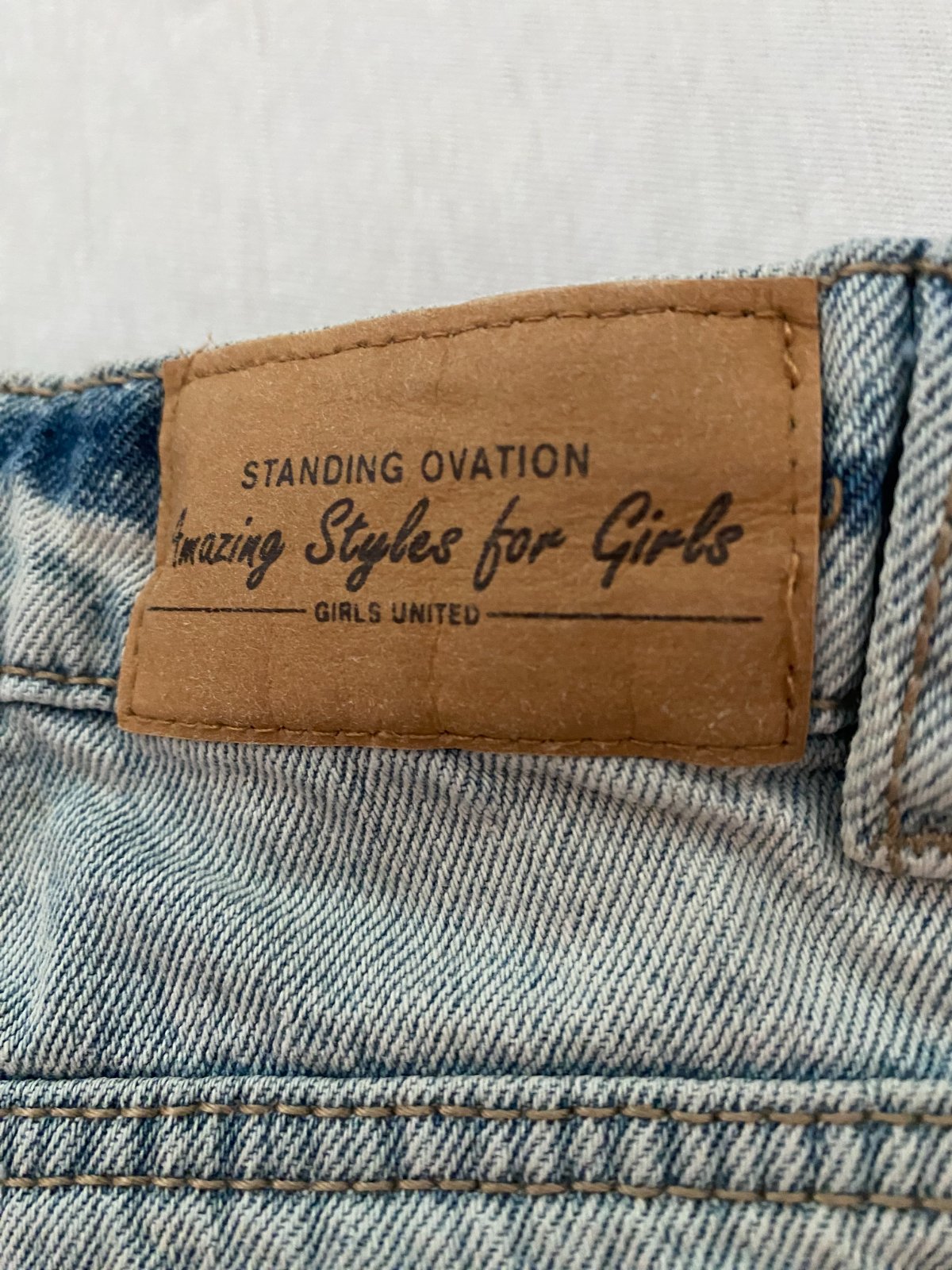 Dievčenské rifle mrkvového strihu s vysokým pásom, pekný zachovalý stav. Dĺžka od rozkroku je 53cm, bočná dĺžka od pása je 77cm.