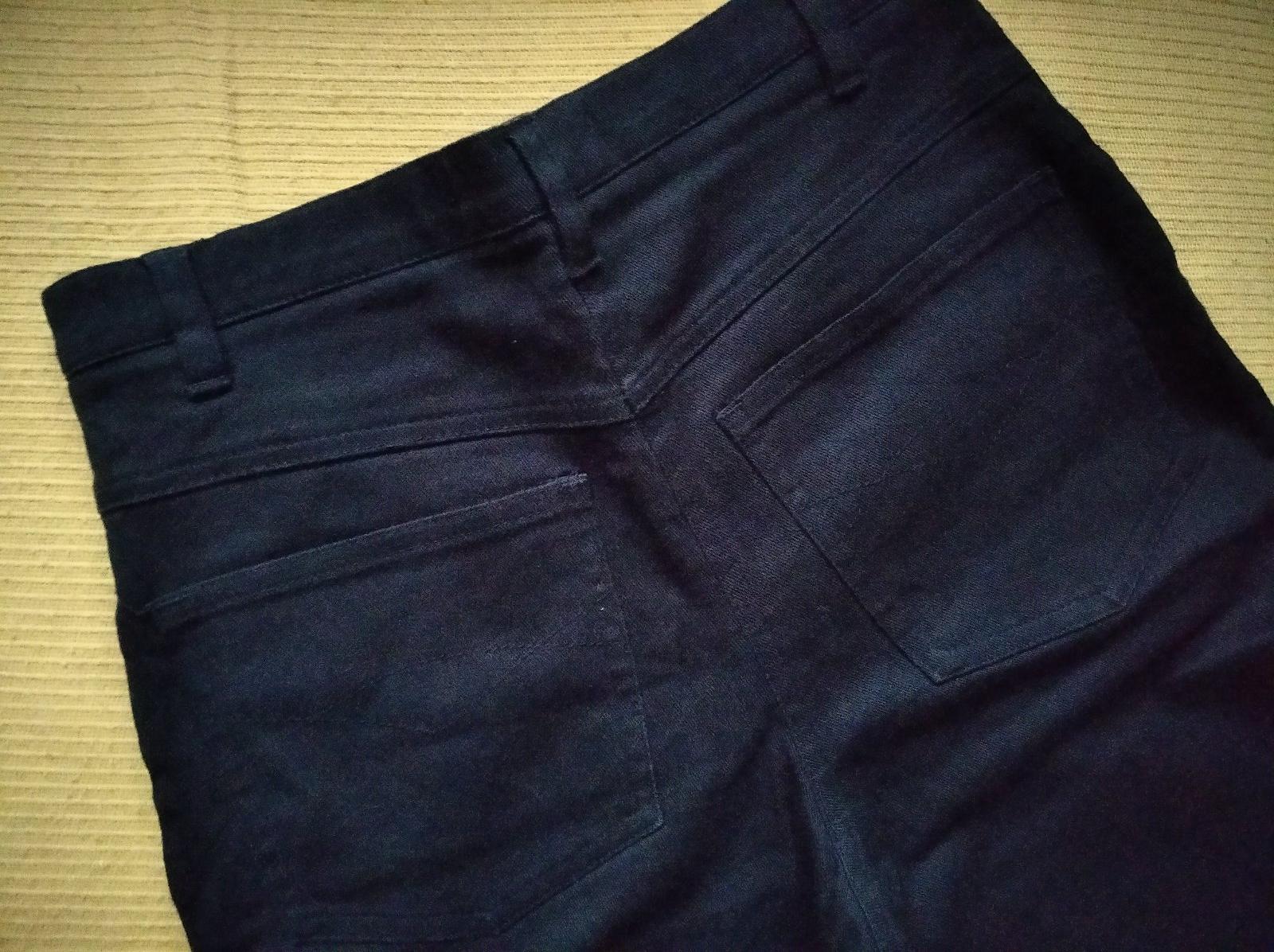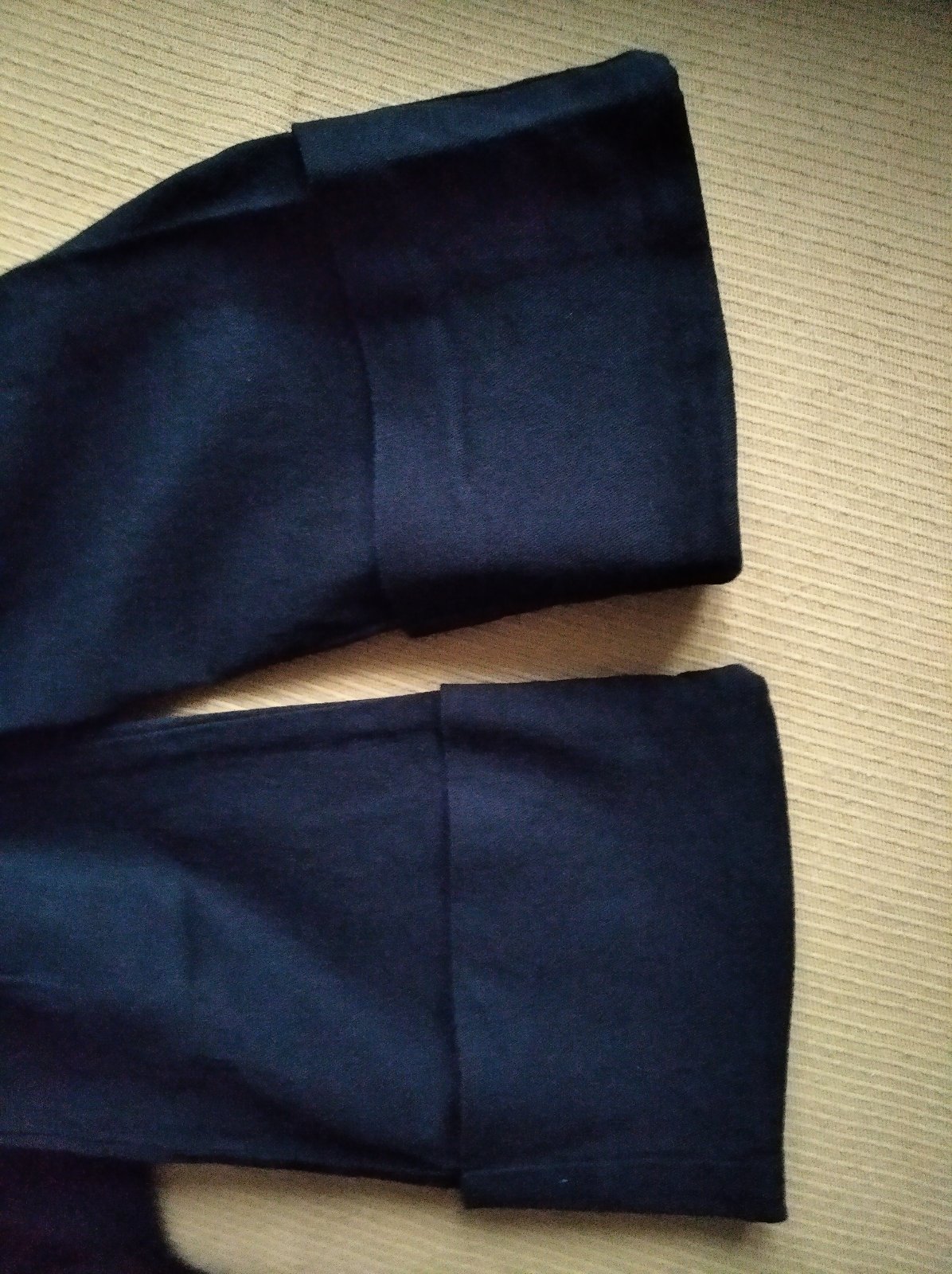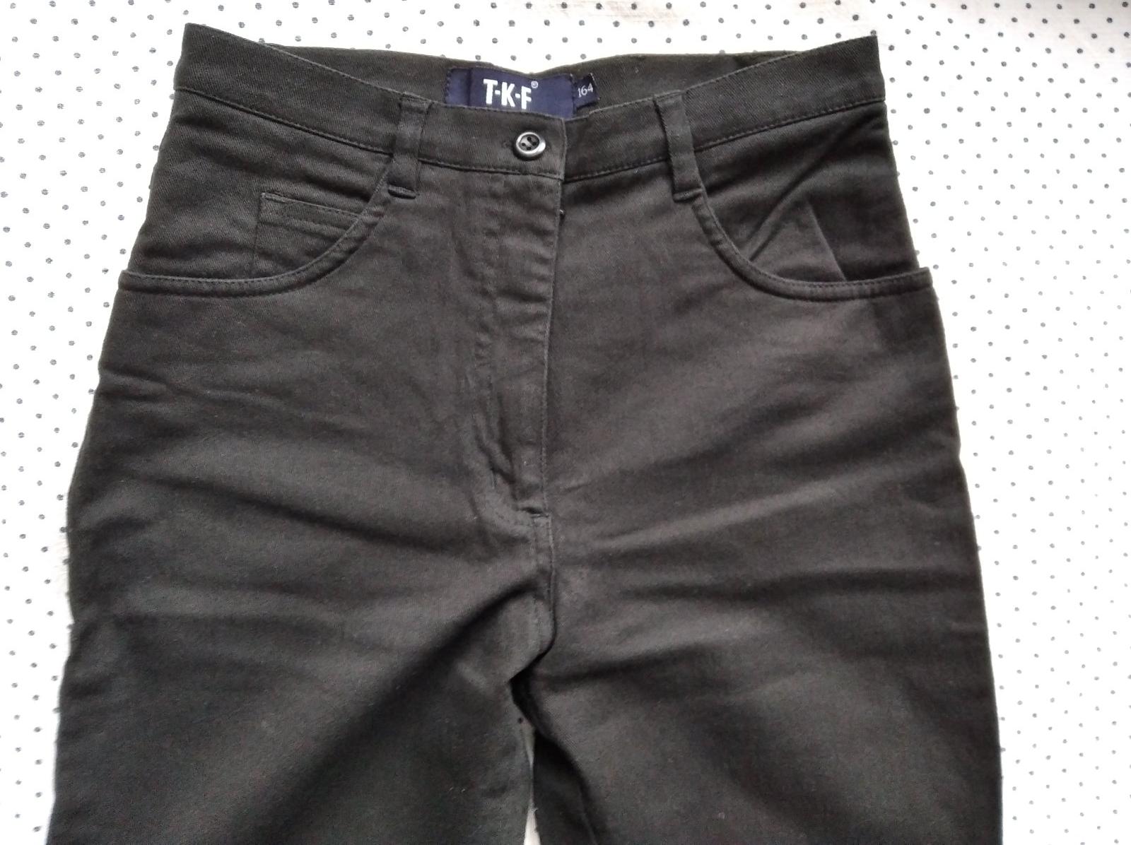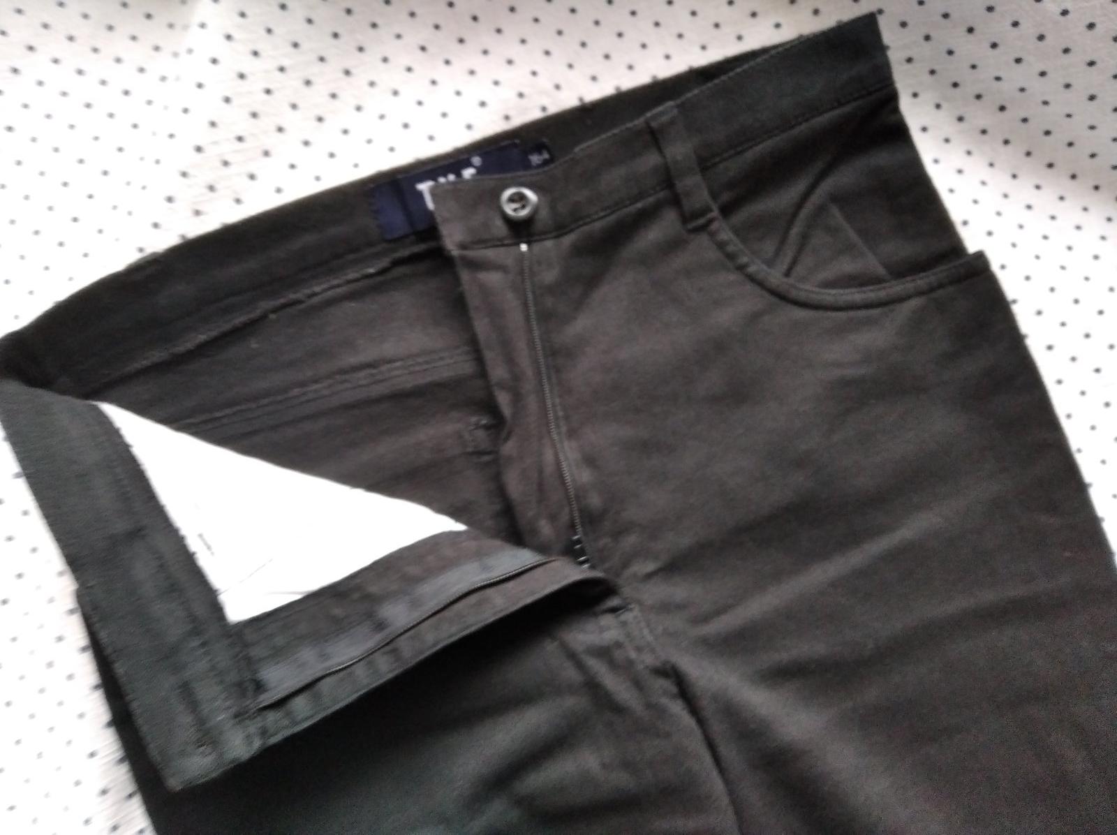 Kvalitné čierne nohavice s vyvýšeným pásom, skrátený strih, efektne vyhrnuté, bezchybné, nevyšedivené.