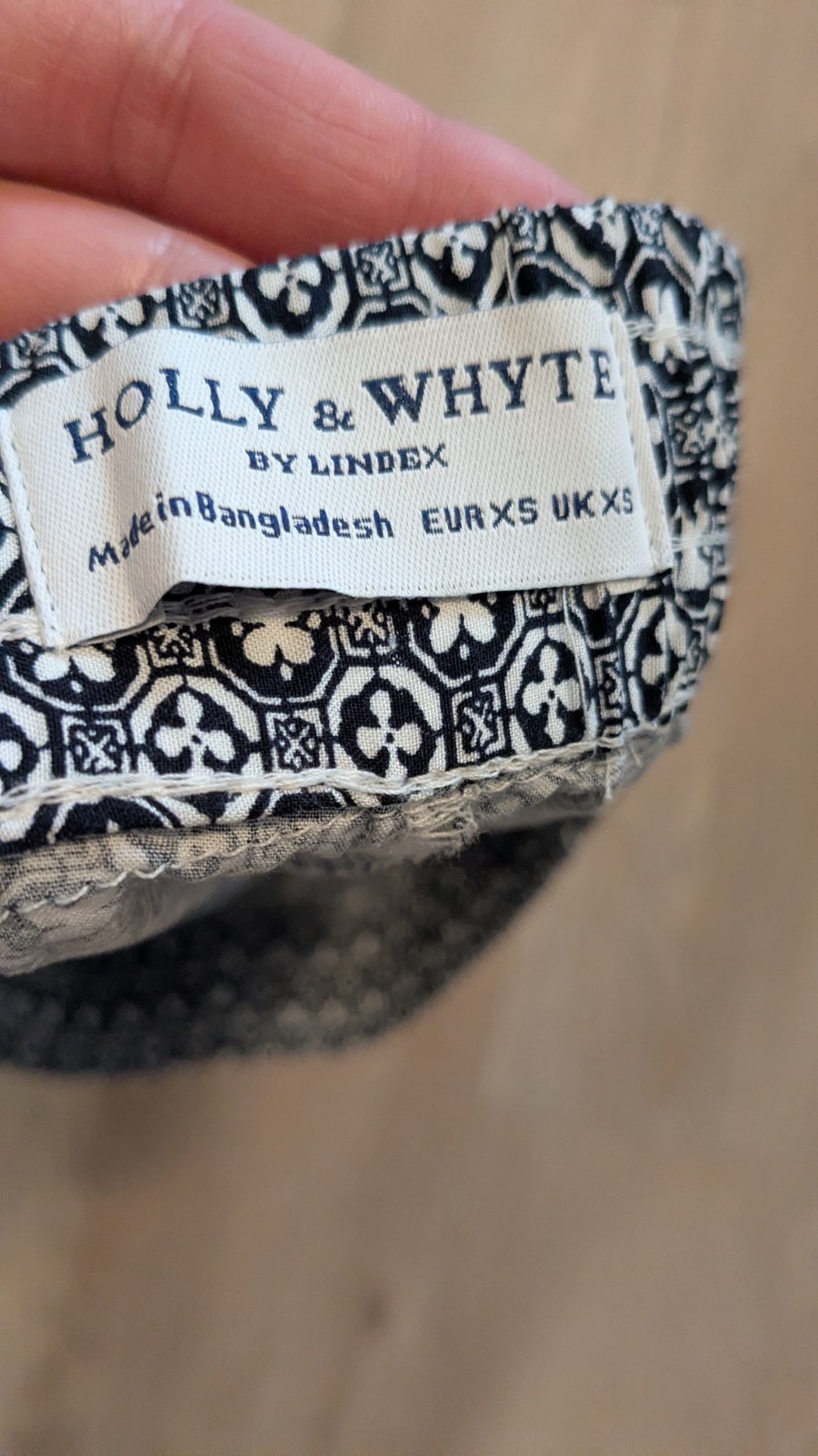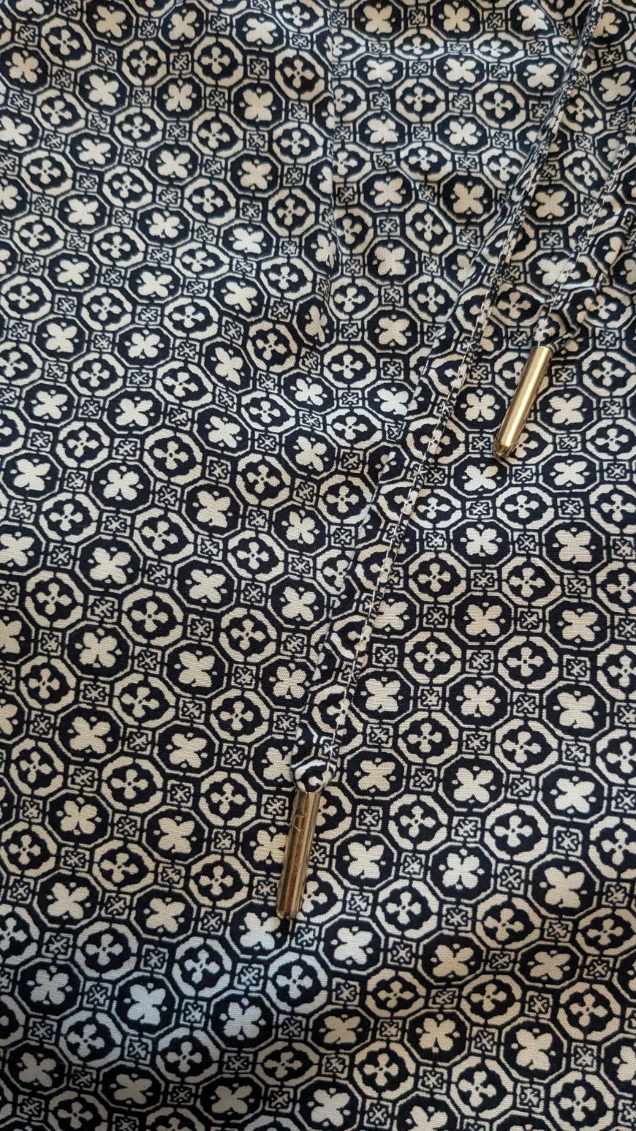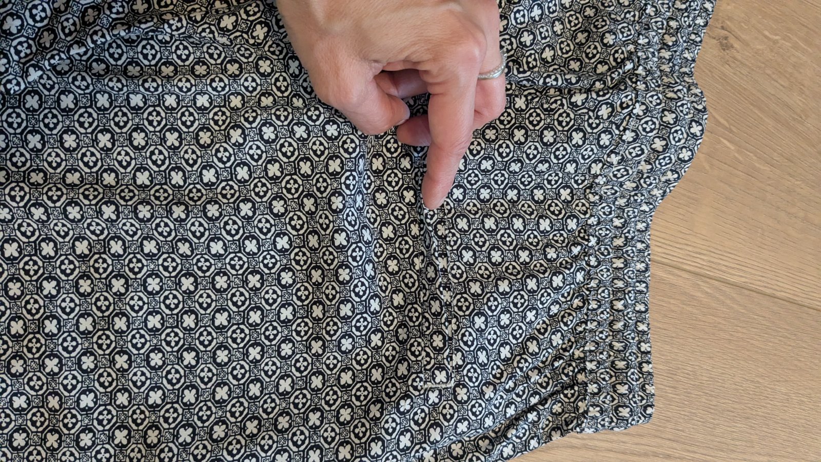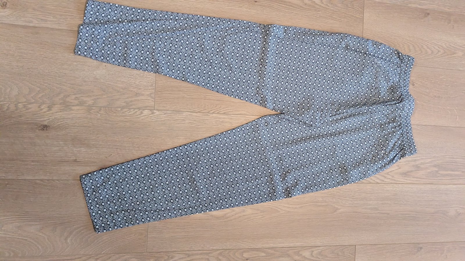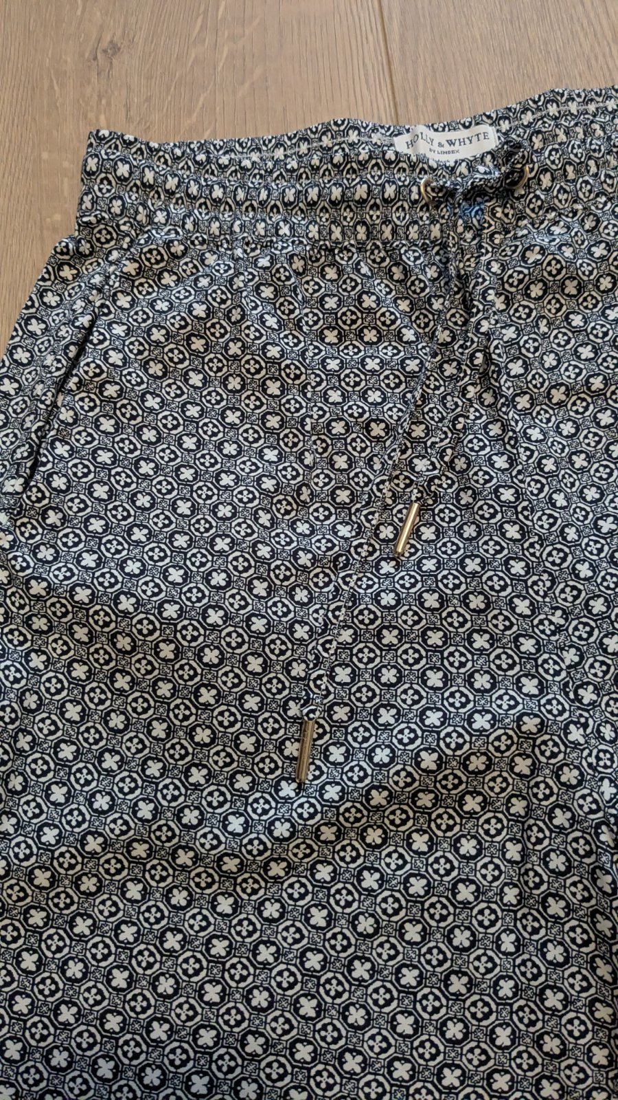 Zachovalé, bez poškodenia, vzadu ozdobné vrecko, na gumicku v páse, 2 bocné vrecká.
