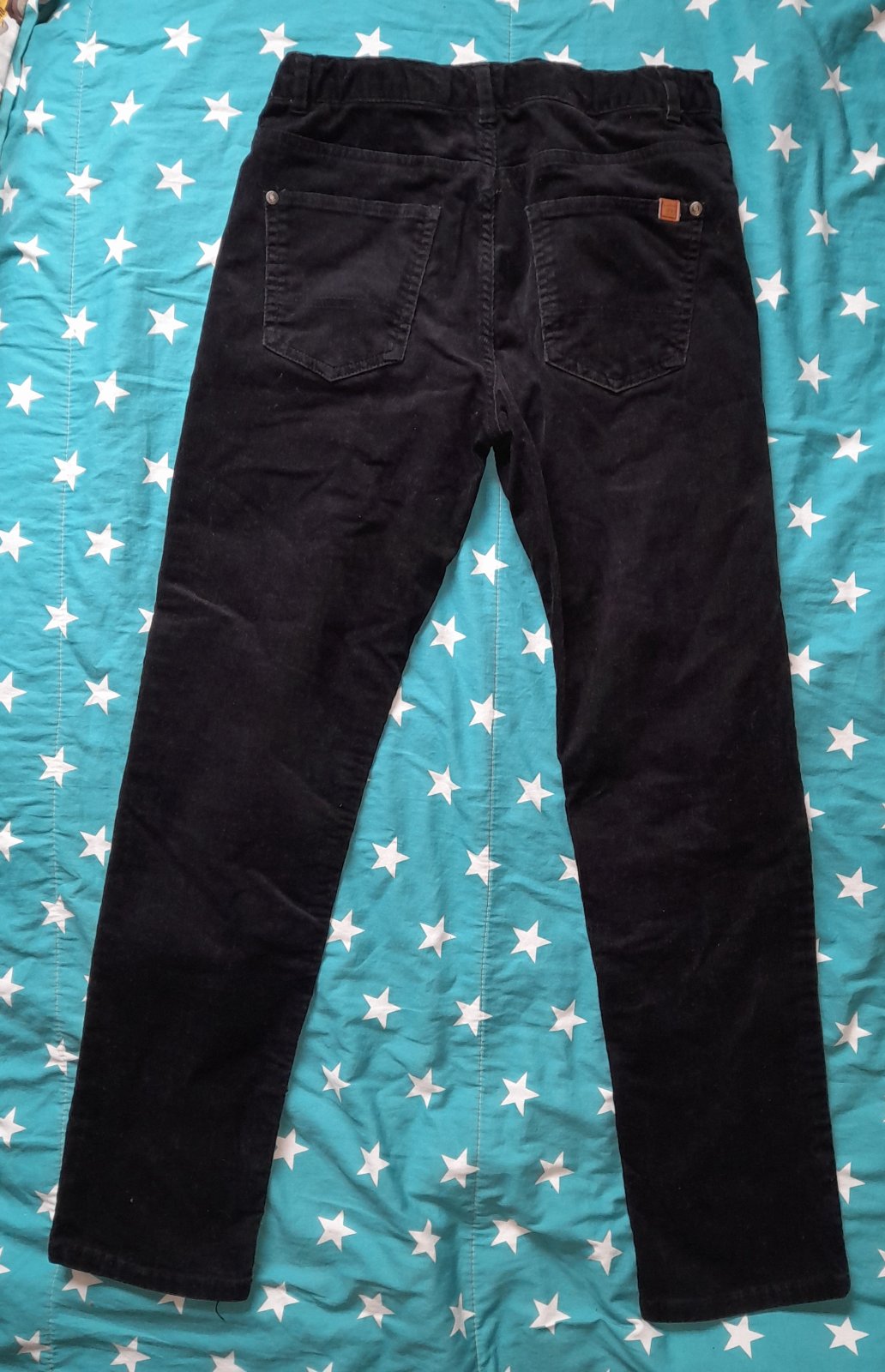 Nosené menčestráky. Jemne šuchnuté kolená, v skutočnosti to vidno menej ako na foto.
