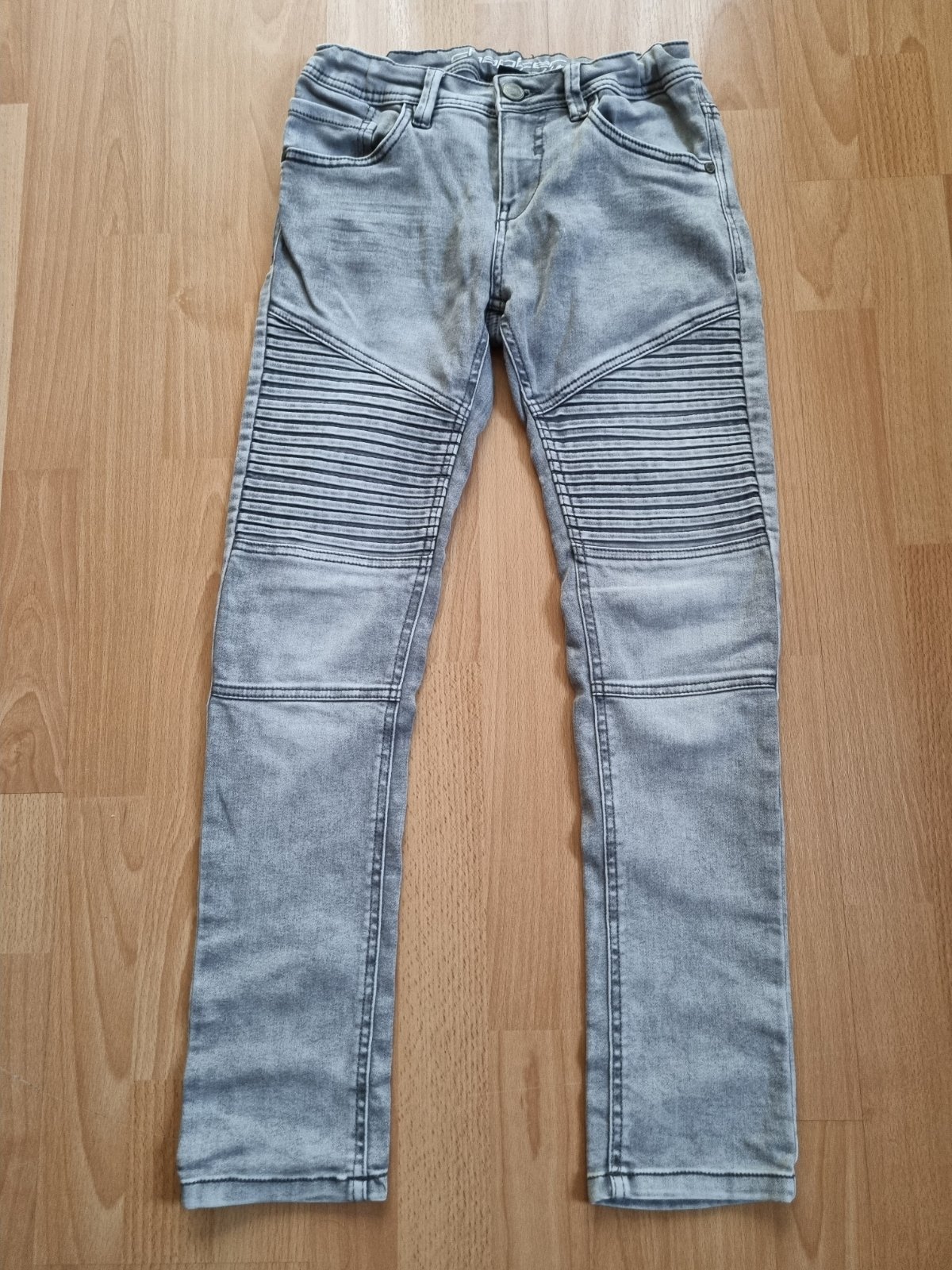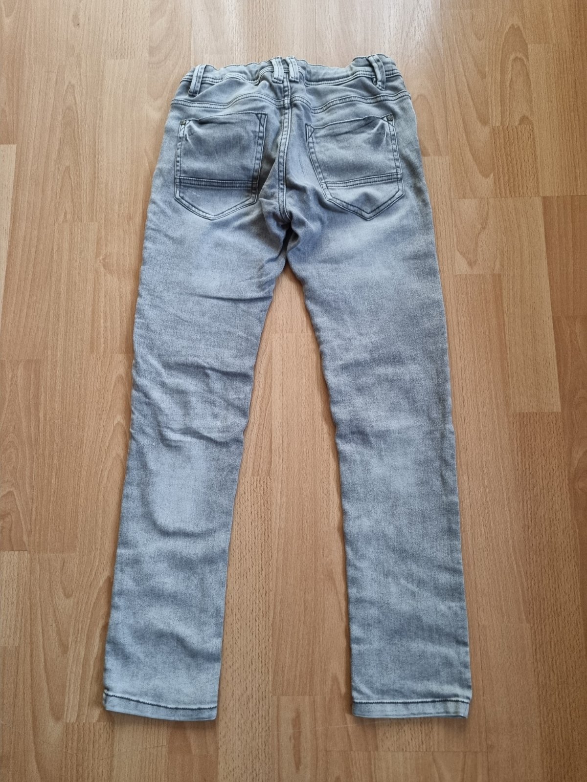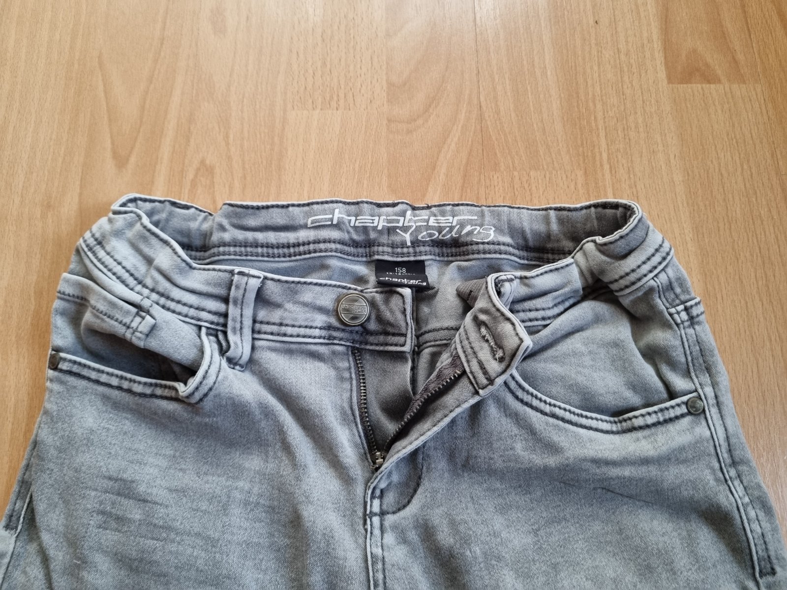 Chlapčenské rifle zn. Chapter Young, veľkosť 158 /12-13 rokov/, sivej farby so zapínaním na zips. Dĺžka 90 cm, obvod pása 66-78 cm /v páse je guma, dá sa prispôsobiť/.