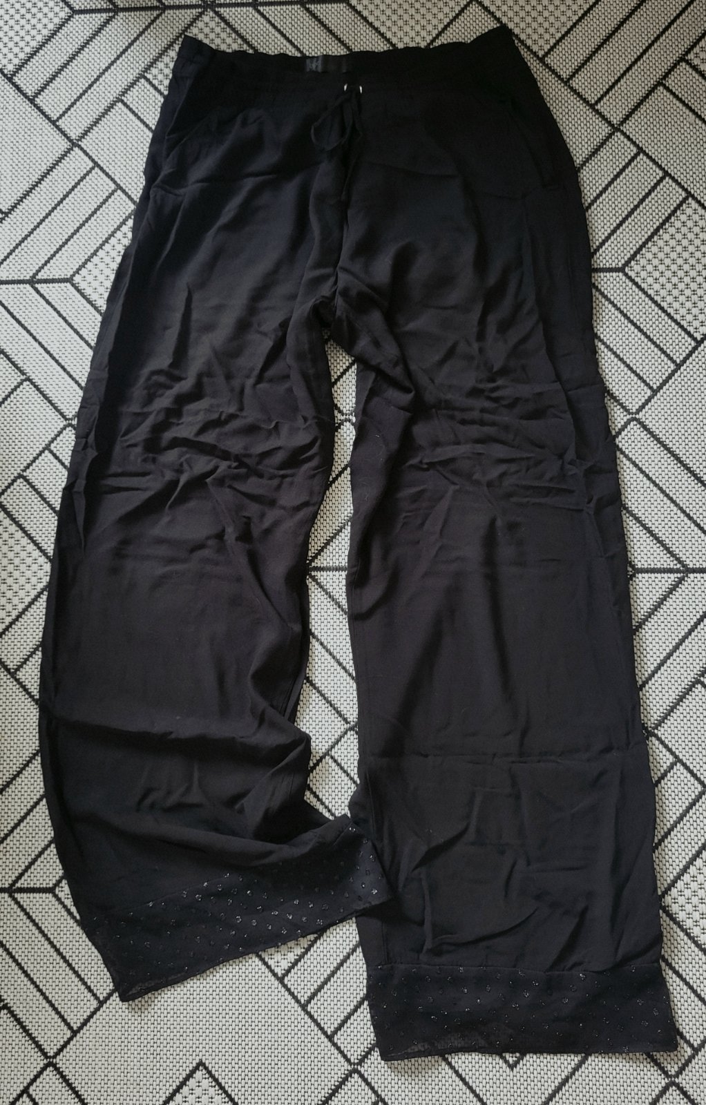 super stav, u krajčírky našívaná spodná tylová časť, sú na výšku 170, velkostne sedia na XL/XXL, sú padavé, veľmi pohodlné, bočné vačky, v páse šnúrka na stiahnutie, celková dĺžka 104cm, dĺžka od rozkroku 78cm, pás max 51x2 a menej, boky 59x2, poštovné doporučene 3€
