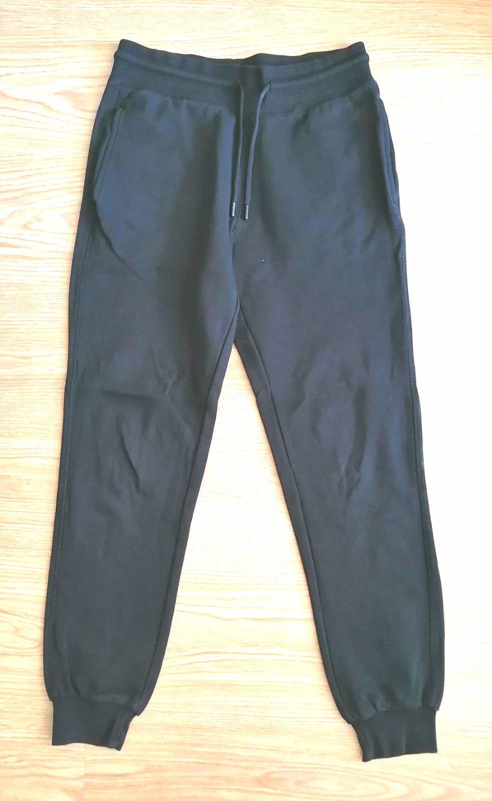 Kvalitné bavlnené pánske tepláky v čiernej farbe, v páse širšia guma a funkčná šnúrka, dve funkčné bočné vrecká a 1 funkčné zadné vrecko, dolu patenty.