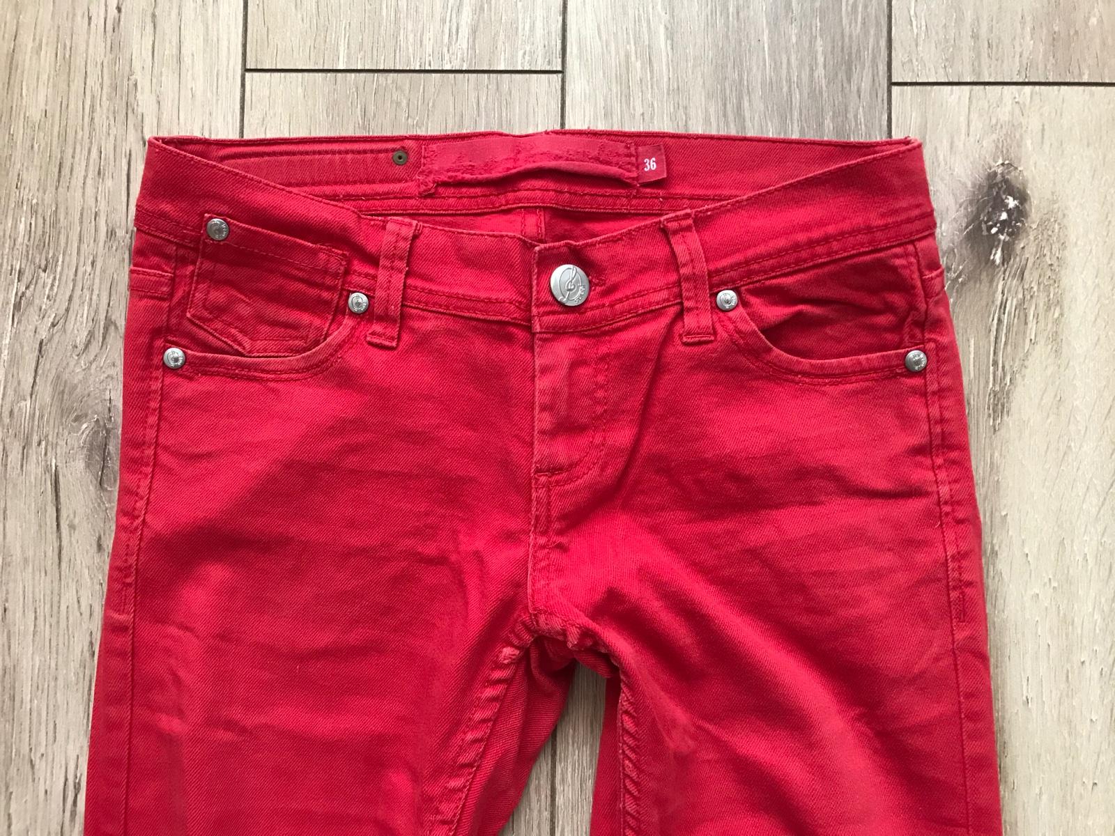 Predam asi 3x oblecene cervene rifle (nie su jasnocervene, skor bledsia cervena) znacky Mohito, velkost 36 (dlzka 87cm, vn.dlzka 63cm, sirka 35cm), dlzka nad clenky. Cena 6€. Osobne v BA alebo postou.