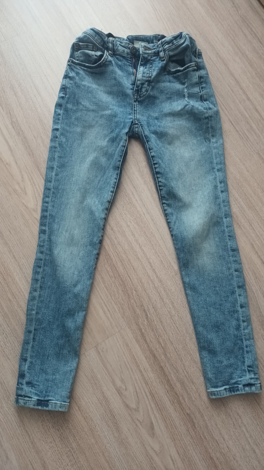 Rifle , veľkosť 140 , nosene na striedačku , zo zadu pás puknuty , alebo natrhnutý /zohladnene v cene/ inak veľmi malo nosene
