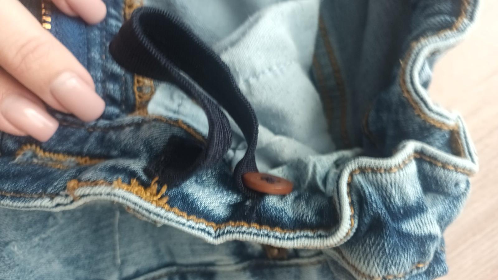 Pekný nosený stav, v páse sťahovacia gumička. Na jednom koleni fliačik od fixky / foto.