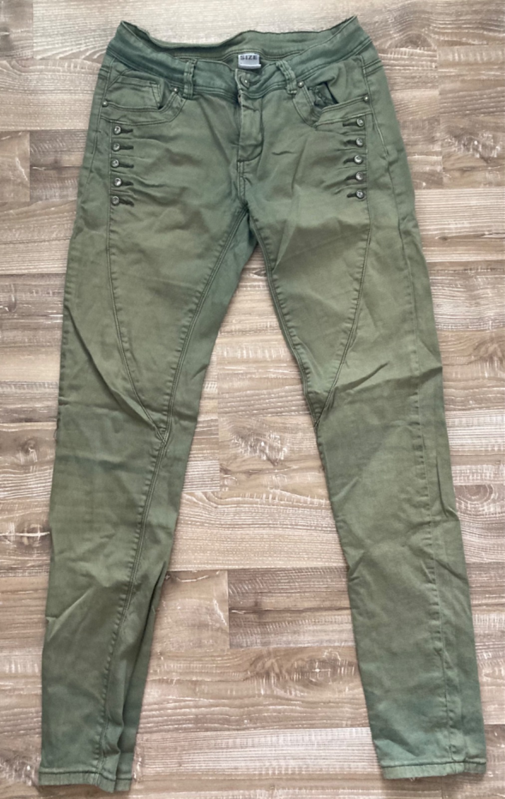 Nosené..vypratie vidieť,farba trochu vyblednutá..a párajú sa(vidieť na foto)šikovná mamina si to urobí,zašije..na donosenie ešte určite poslúžia.