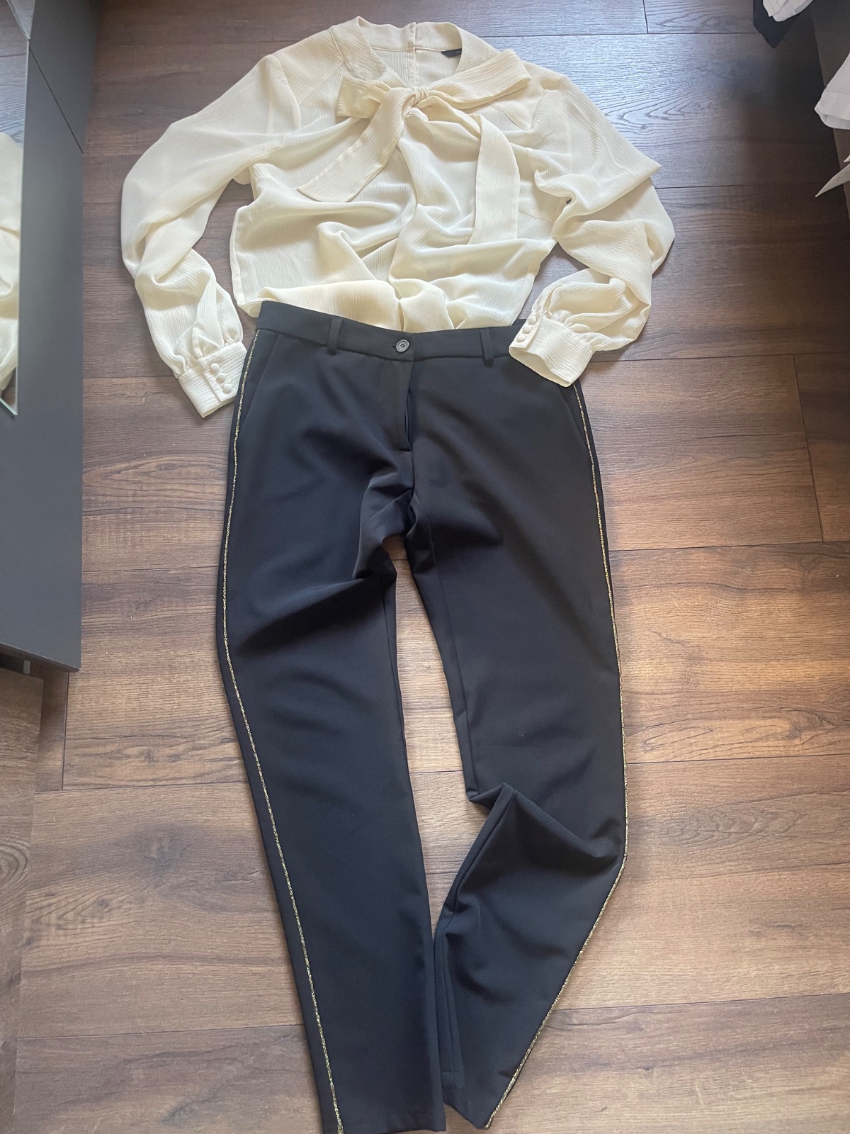 Zaujímavé slim nohavice značky Please so zlatými okrajmi