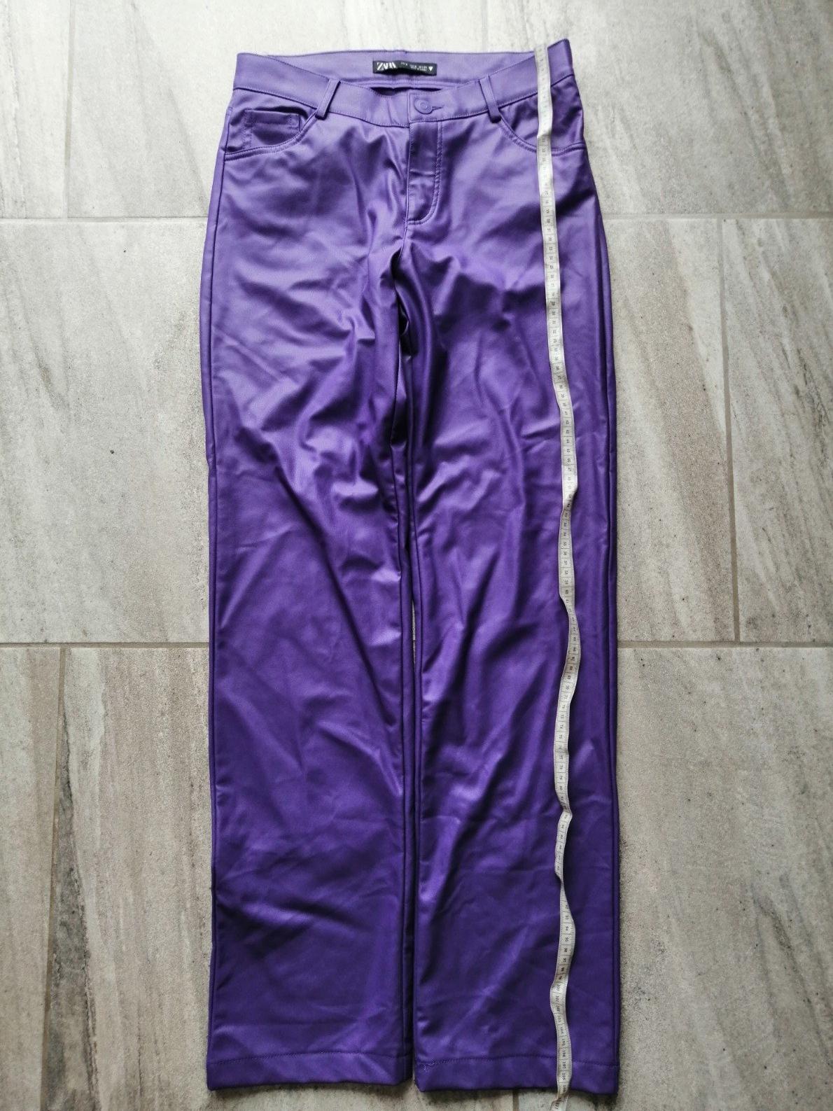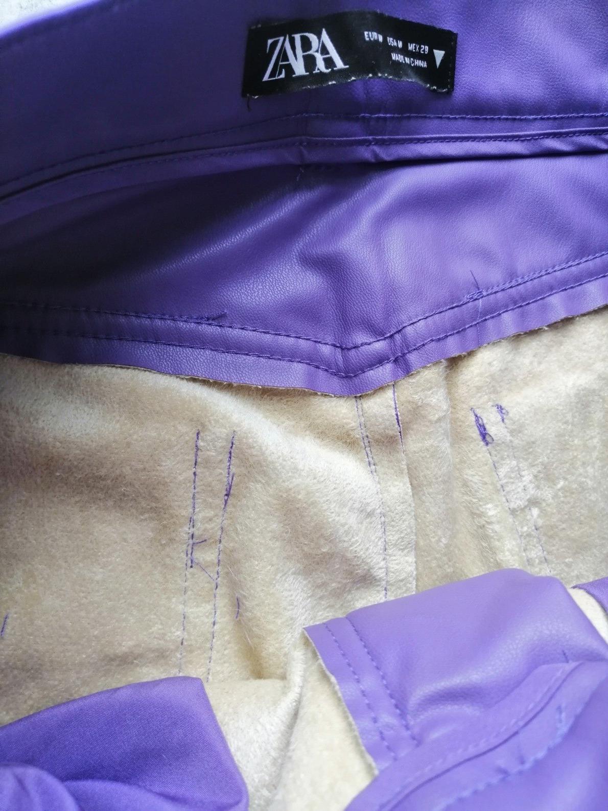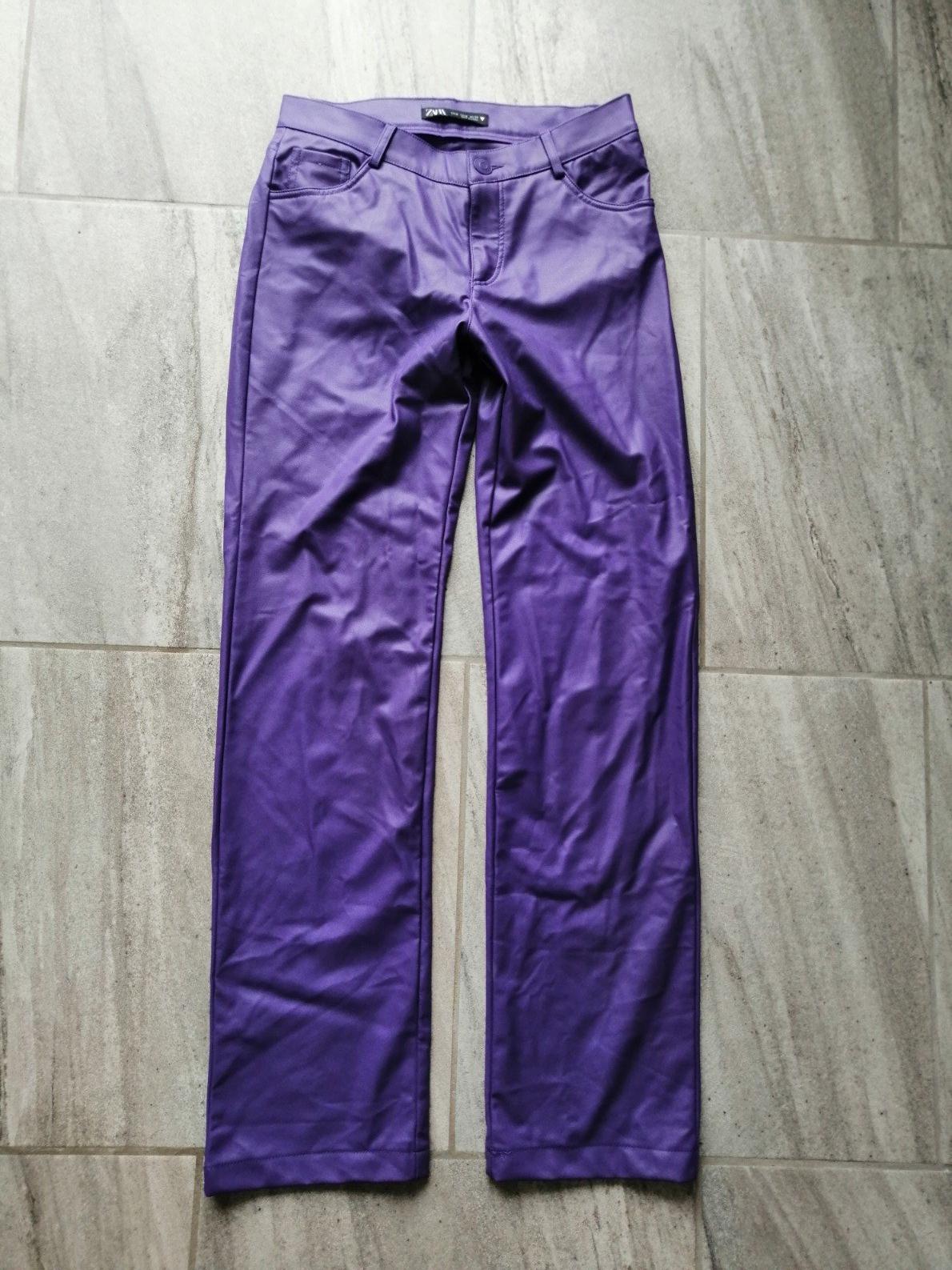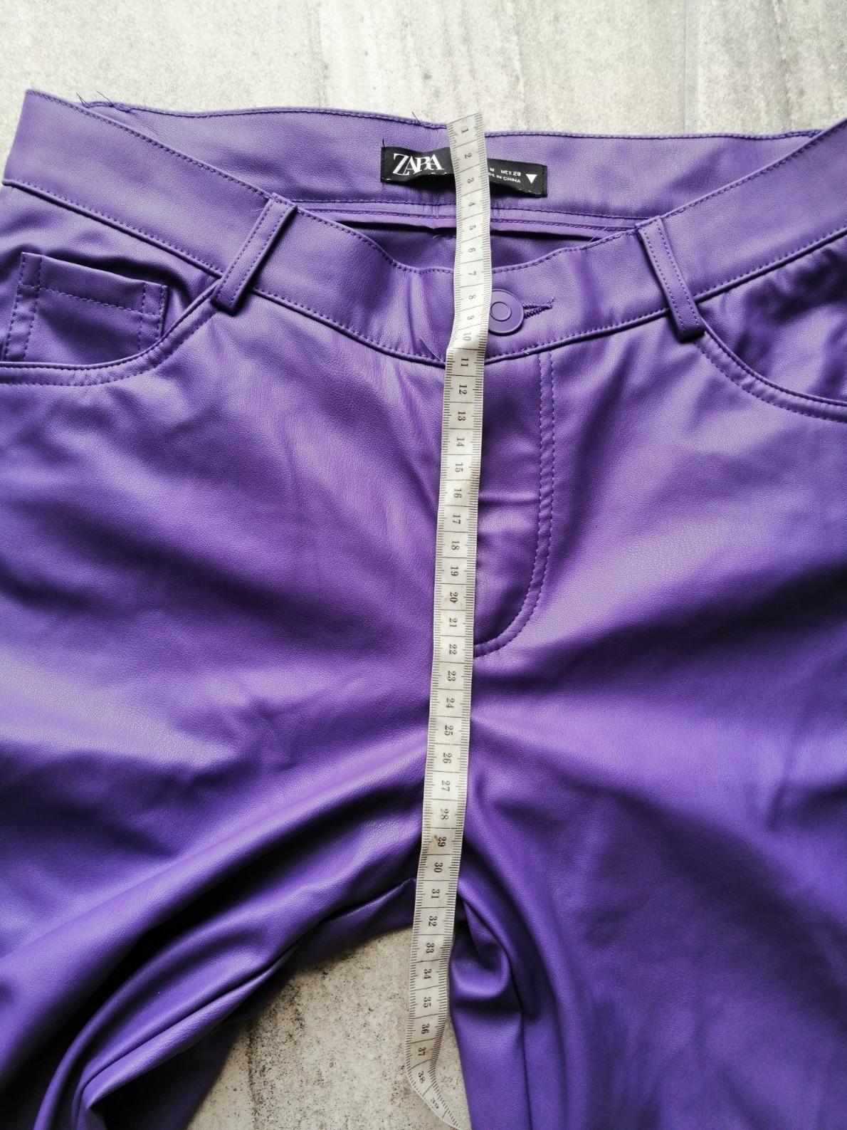 Fialové zateplené kožené nohavice ZARA,vM,38,pružn