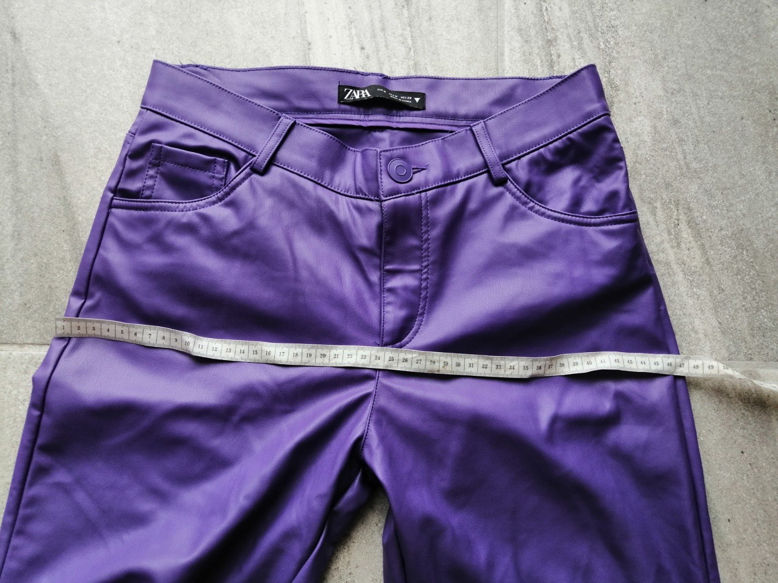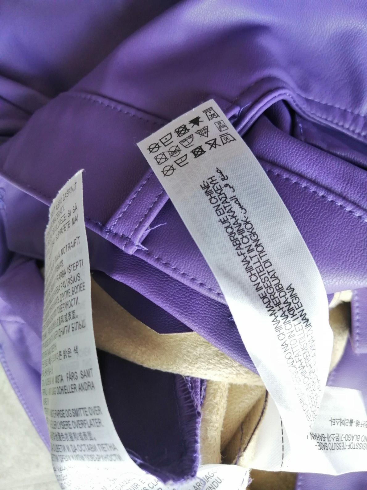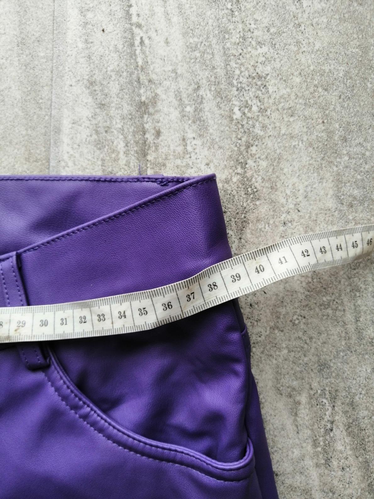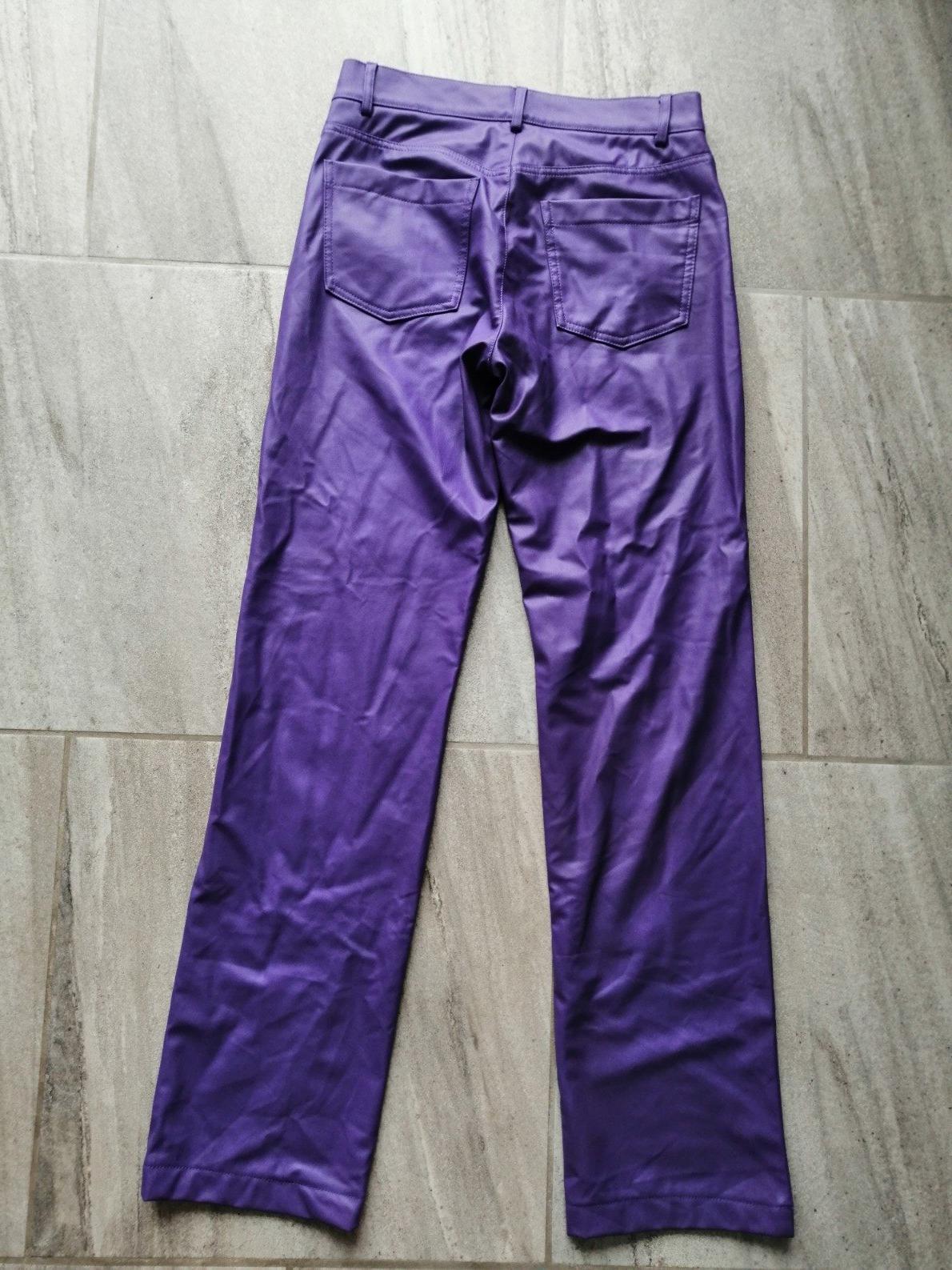 Fialové zateplené kožené nohavice ZARA,vM,38,pružn