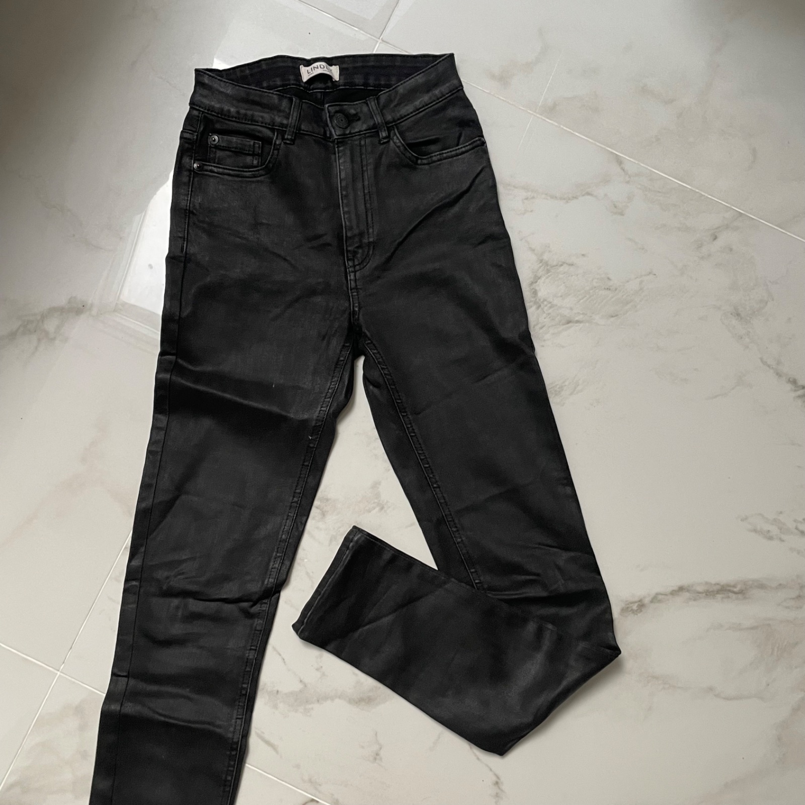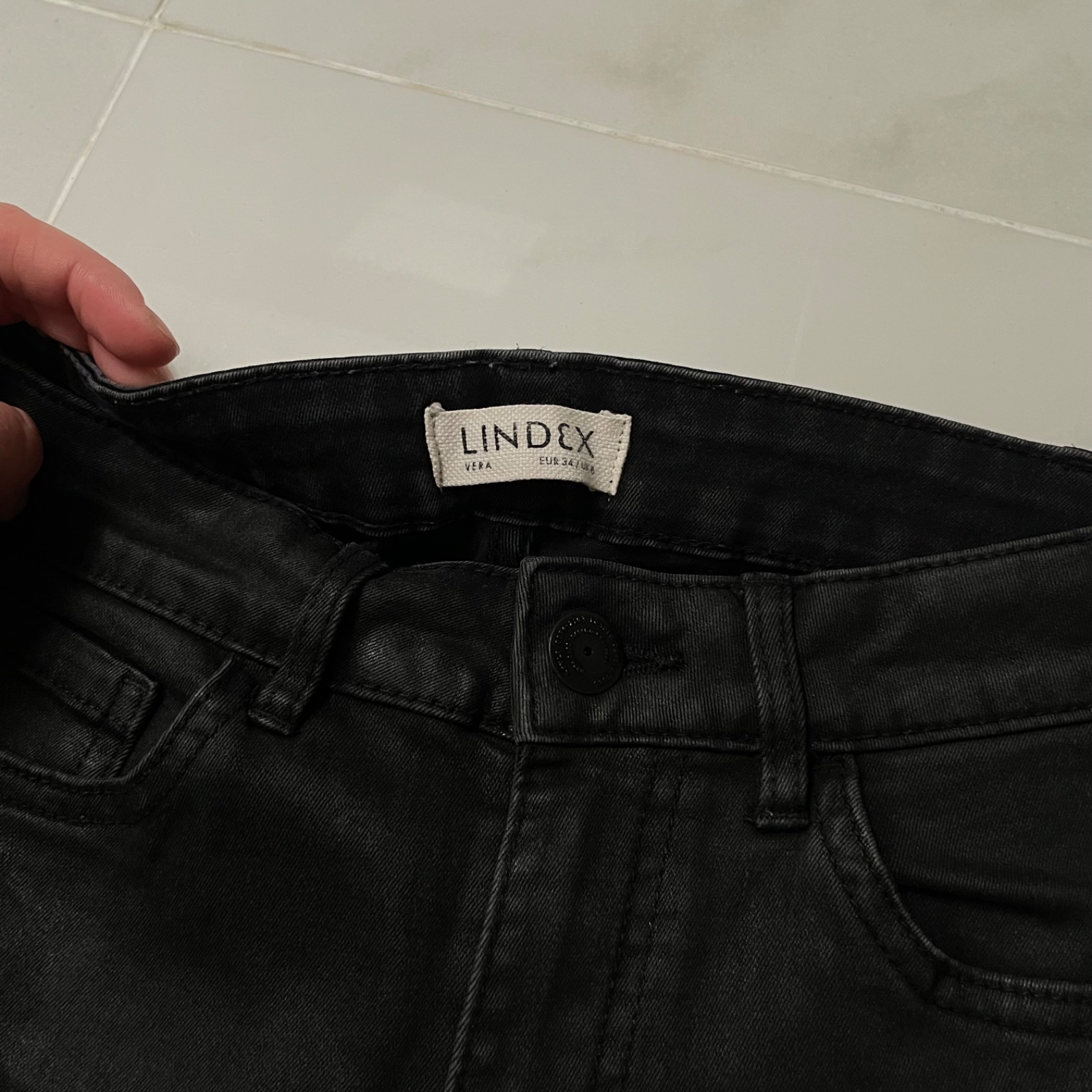 Elegantné čierne nohavice Lindex Vera s moderným koženým (coated) efektom. Vďaka elastickému materiálu sa krásne prispôsobia postave a sú veľmi pohodlné aj pri celodennom nosení.